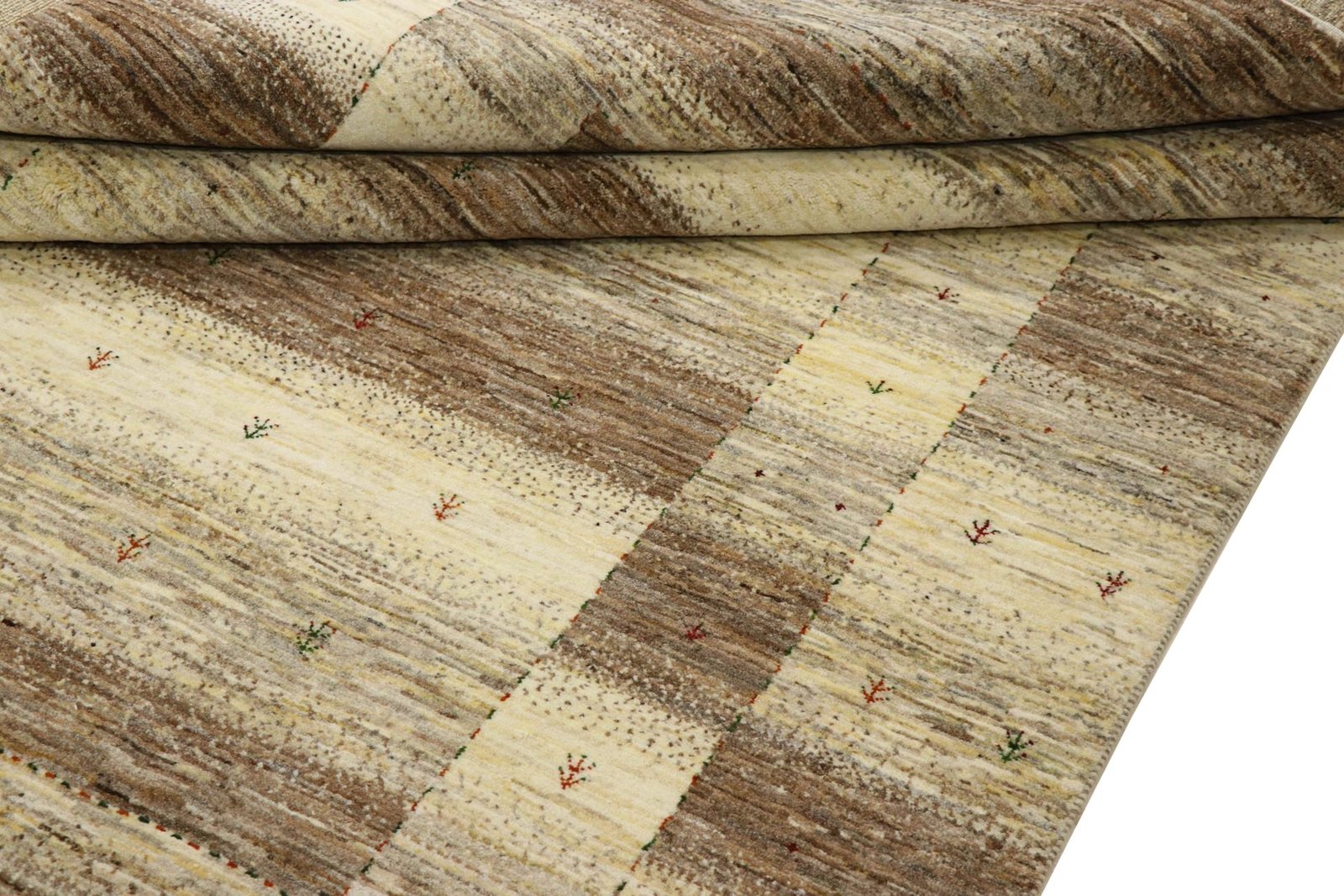This exquisite rug is a Persian Lori Baff and is one of the finest Gabbeh rugs. It is woven by nomads or semi-nomads in Iran using traditional craftsmanship. The simple motifs, inspired by the nomads’ surroundings, often feature camels, trees or bushes. Lori Baff carpets are made of fine wool sourced from locally raised sheep and are usually spun by hand. Each carpet embodies the unique character of centuries-old culture and craftsmanship. Thanks to its authentic production and use of natural materials, this oriental carpet brings a piece of traditional history and cultural richness into your home. A Lori Baff carpet is therefore not only an elegant floor covering, but also a significant work of art that brings both warmth and historical depth to your rooms.
