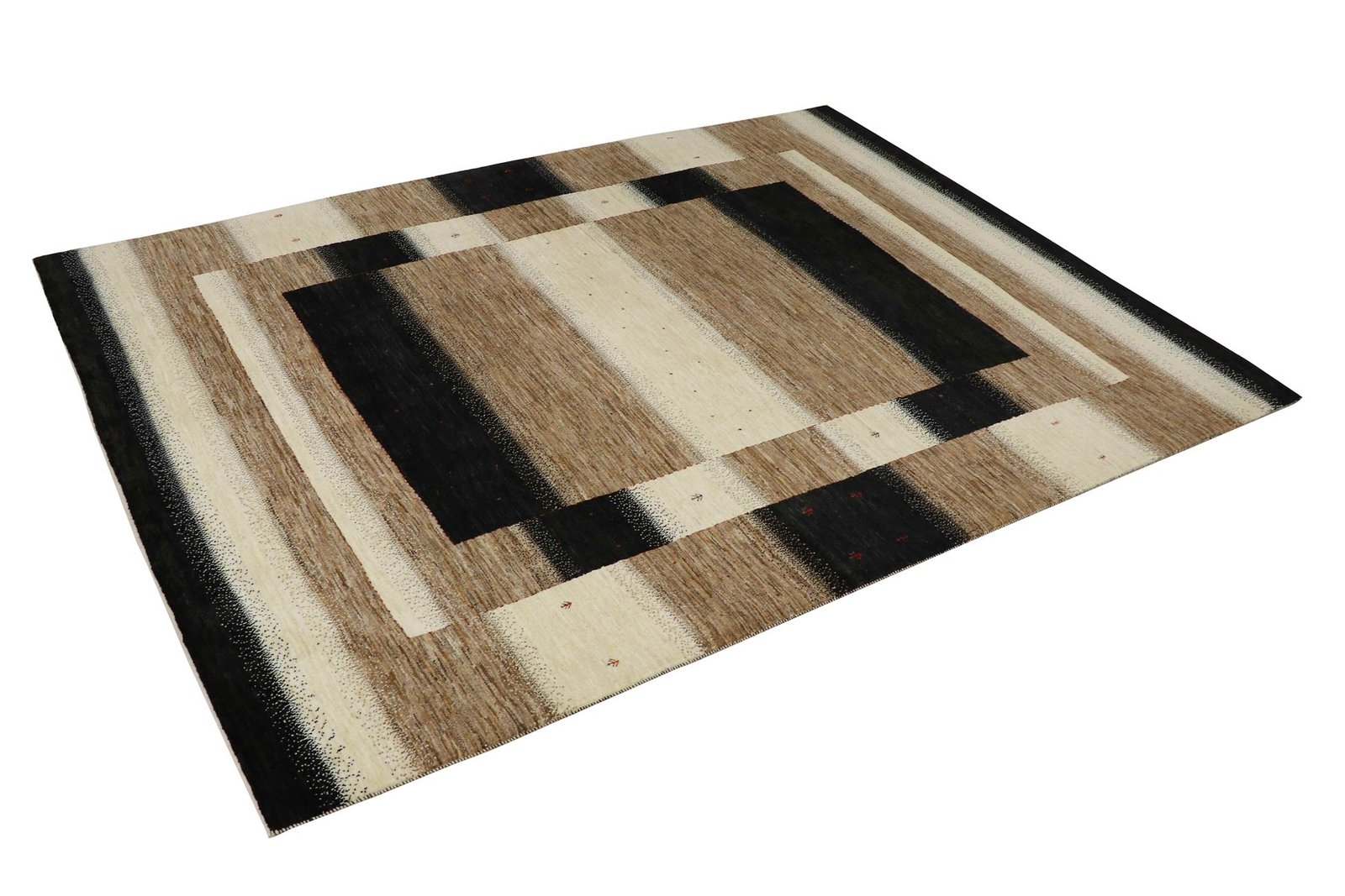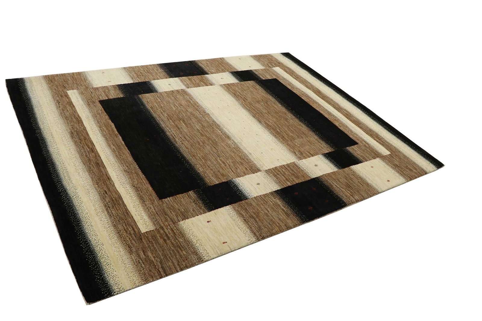 This exquisite carpet is a Persian Lori Baff and is one of the highest quality Gabbeh carpets. It is woven by nomads or semi-nomads in Iran using traditional craftsmanship. The simple motifs and patterns, inspired by the nomads’ surroundings, often feature camels, trees or bushes. Lori Baff carpets are made of fine wool from locally kept sheep, which is often spun by hand. Each rug thus embodies the unique character of centuries-old culture and craftsmanship. With its authentic production and natural materials, this oriental rug brings a piece of traditional history into your home. The warm, earthy colours and robust yet soft texture make it a durable and aesthetically pleasing piece that conveys both timeless elegance and a feeling of security.