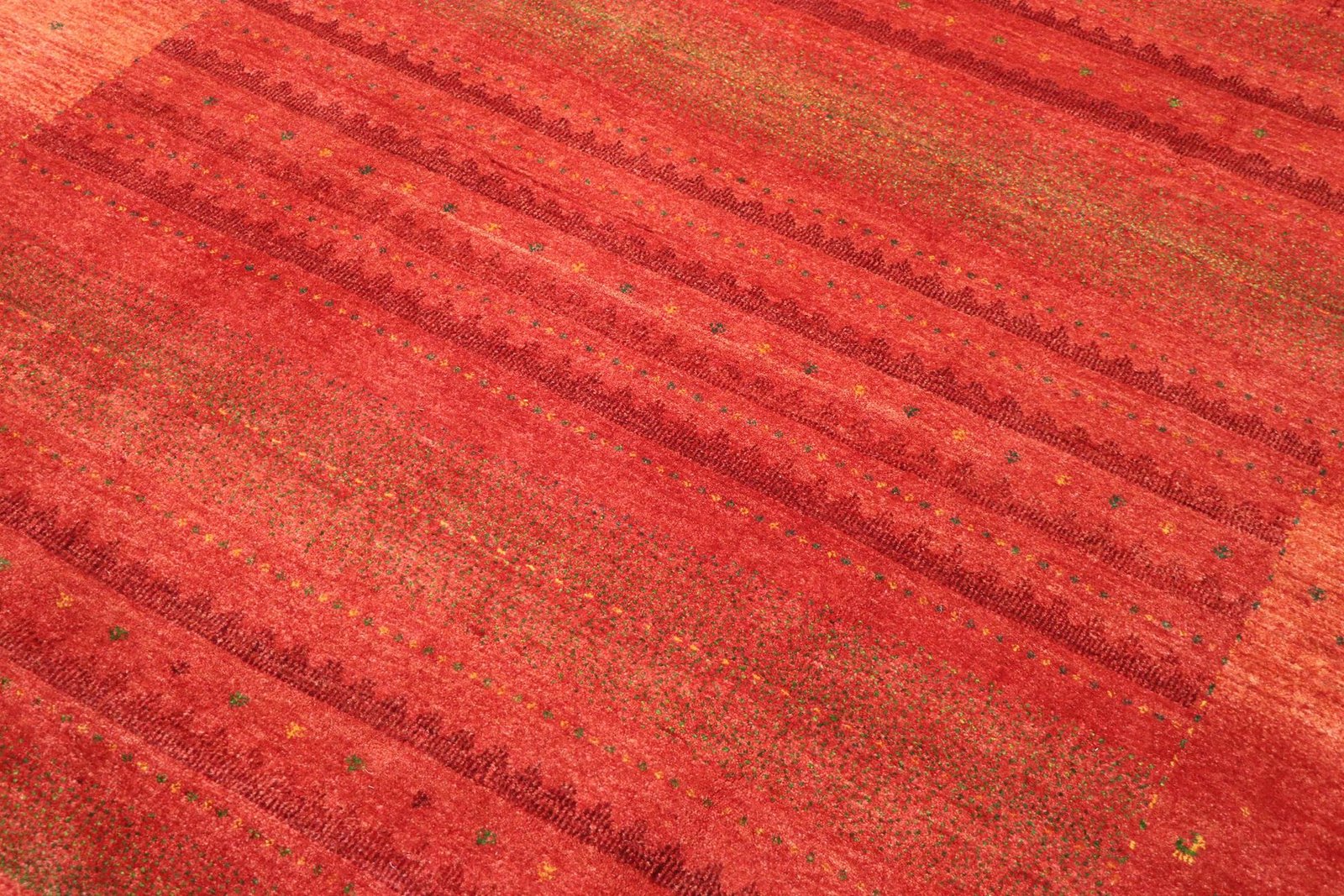 This exquisite rug is a Persian Lori Baff and is one of the finest Gabbeh rugs. It is woven by nomads or semi-nomads in Iran using traditional craftsmanship. The simple but expressive motifs, inspired by the nomads’ surroundings, often feature camels, trees or bushes. Lori Baff carpets are made of fine wool from locally kept sheep flocks and are often spun by hand. Each carpet thus represents the unique character of centuries-old culture and craftsmanship. Thanks to its authentic production and the use of natural materials, this oriental carpet brings a piece of traditional history and incomparable warmth into your home. The precision of the craftsmanship and the quality of the wool make this carpet a timeless work of art that adds a touch of style to any room.