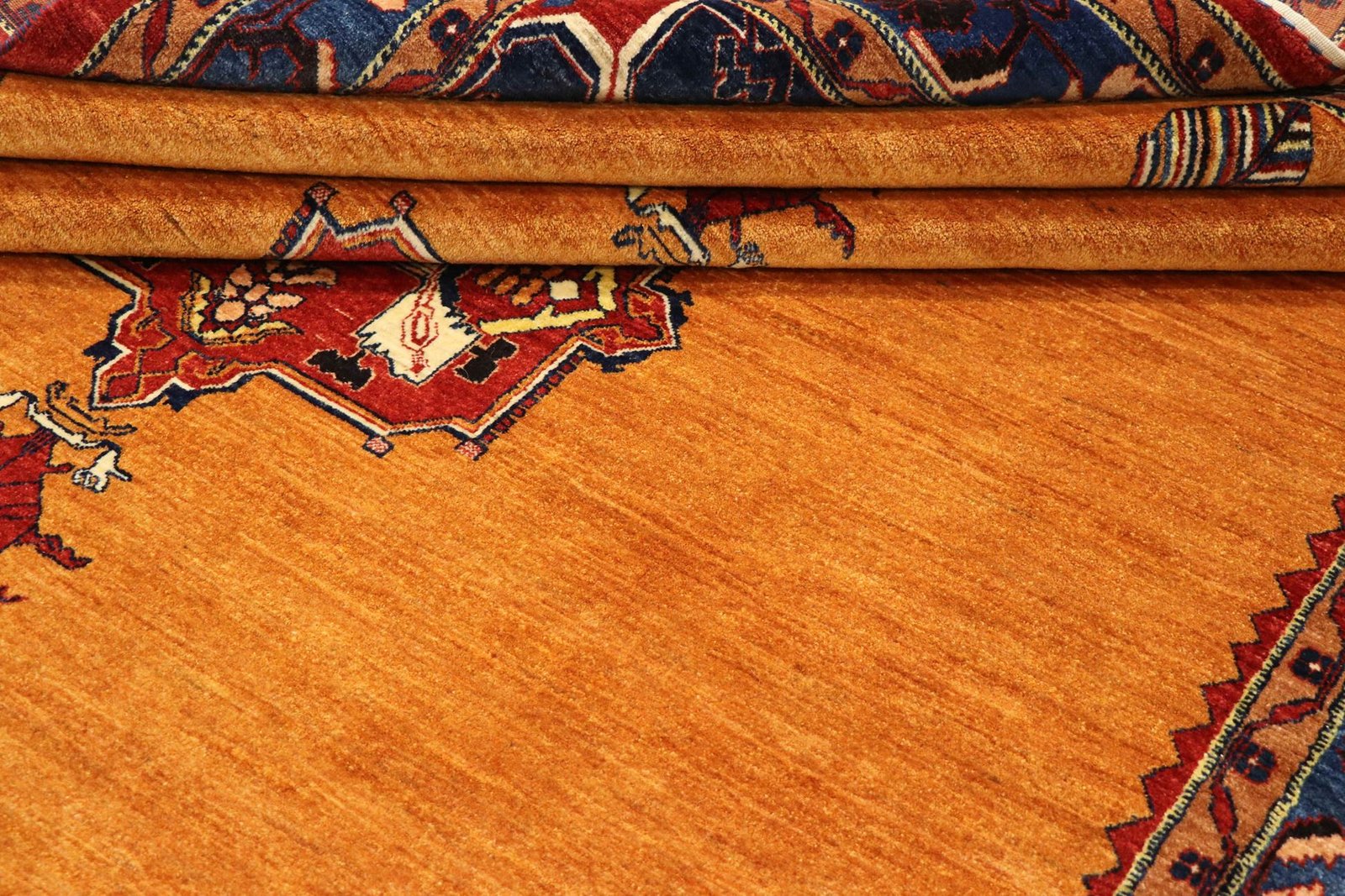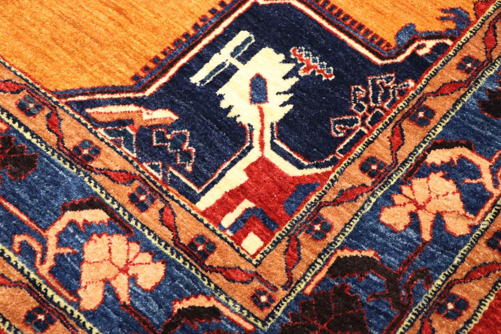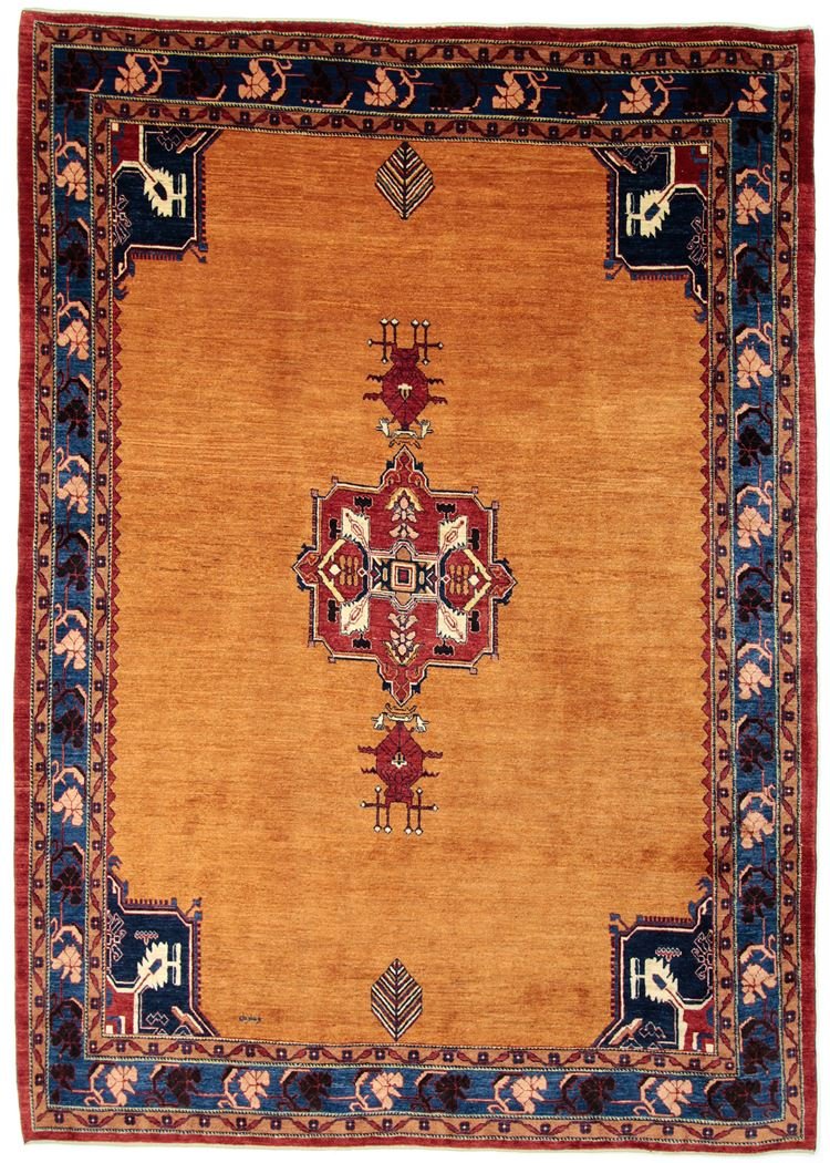 This exquisite rug is a Persian Lori Baff, one of the highest quality Gabbeh rugs. It is hand-knotted by nomads or semi-nomads in Iran using traditional craftsmanship. The rug’s simple yet expressive motifs and patterns, inspired by the nomads’ surroundings, often feature camels, trees or bushes. Lori Baff carpets are made of fine wool sourced from locally raised sheep and often spun by hand. These carpets embody the unique character of centuries-old culture and craftsmanship. Their authentic production and use of natural materials bring a piece of traditional history and warm aesthetics into your home. Each rug is therefore not only a decorative element, but also a valuable piece of Persian tradition.
