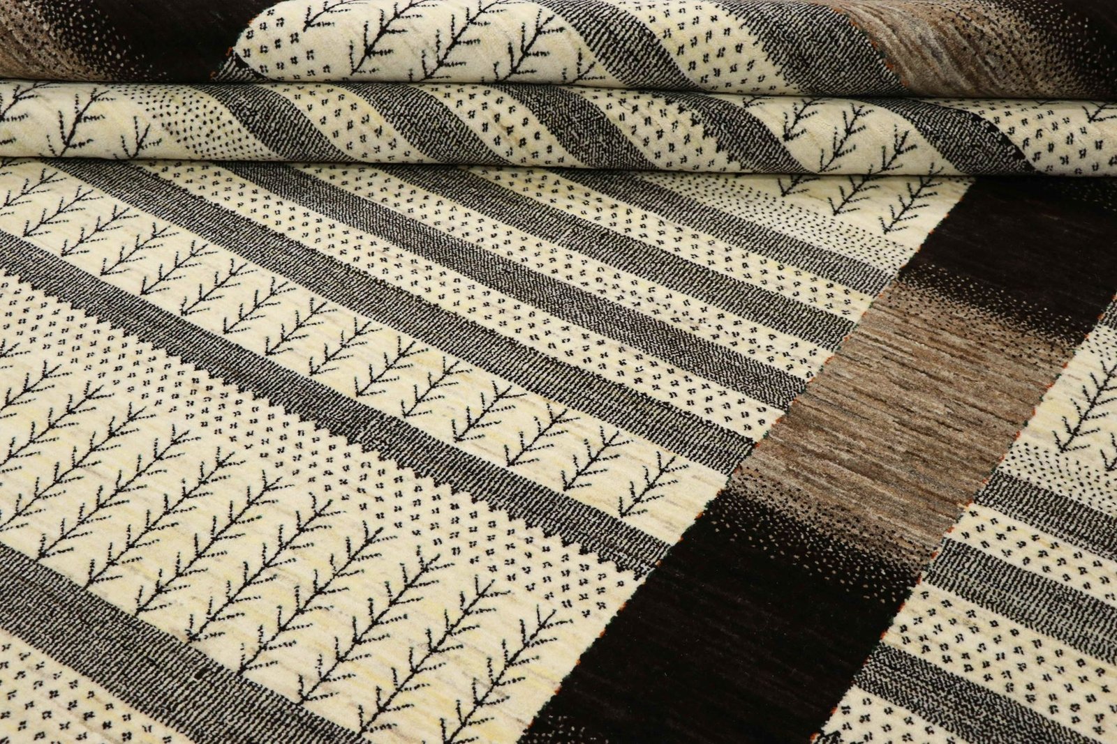 This exquisite rug is a Persian Lori Baff, one of the finest Gabbeh rugs. It is hand-knotted by nomads or semi-nomads in Iran using traditional craftsmanship. The simple but impressive motifs and patterns, inspired by the nomads’ natural environment, often feature camels, trees or bushes. Lori Baff carpets are made of fine wool from locally kept sheep flocks and are often spun by hand. Each rug embodies the unique character of centuries-old culture and craftsmanship. Thanks to its authentic production and the use of natural materials, this oriental rug not only brings warmth to your home, but also a piece of valuable history, transforming it into a place of traditional elegance and timeless beauty.