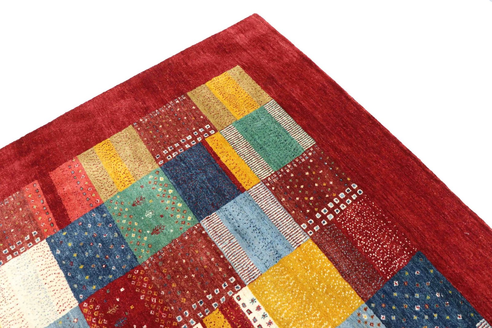 Lori baff carpets are knotted in the Orient and India. The term “Gabbeh” means “raw” in Farsi and refers to a simple, rustic carpet. They have become increasingly popular since the early 1990s as they offer a more relaxed, folk-inspired alternative to the Persian carpets typically associated with traditional interior design. Gabbeh carpets are characterised by a thick, luxurious pile, a wide variety of colours and bold, geometric patterns. The patterns can be either abstract or representational, often depicting animals or people. Gabbeh rugs are usually made from wool, but some are also made from cotton or other materials. They range in size from small mats to large rugs and can be used in any room of the house.