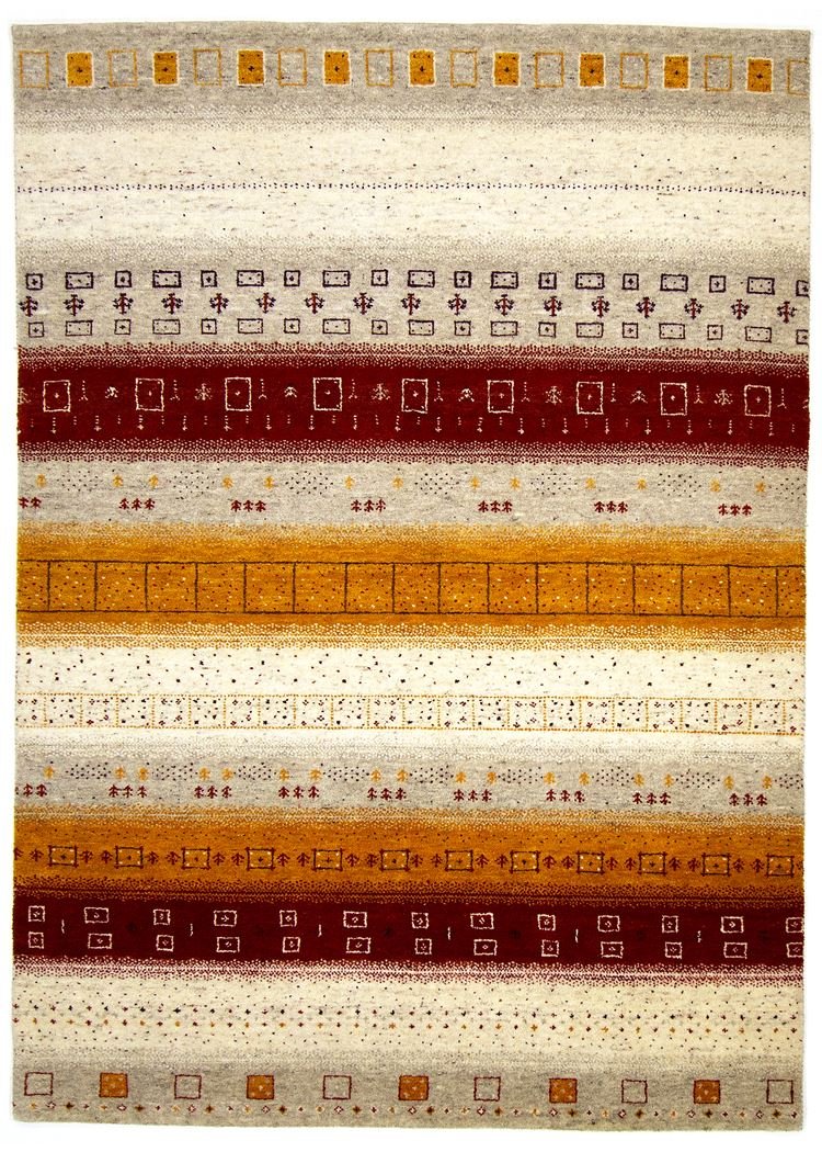 This exquisite rug is a Persian Lori Baff and is one of the highest quality Gabbeh rugs. It is woven by nomads or semi-nomads in Iran using traditional craftsmanship. The simple motifs and patterns, inspired by the nomads’ surroundings, often feature camels, trees or bushes. Lori Baff carpets are made of fine wool from locally kept sheep, which is often spun by hand. Each carpet embodies the unique character of centuries-old culture and craftsmanship. Thanks to its authentic production and use of natural materials, this oriental carpet brings a piece of traditional history and cultural richness into your home. A Lori Baff carpet is therefore not just a floor covering, but a significant work of art that brings warmth and history into your rooms.