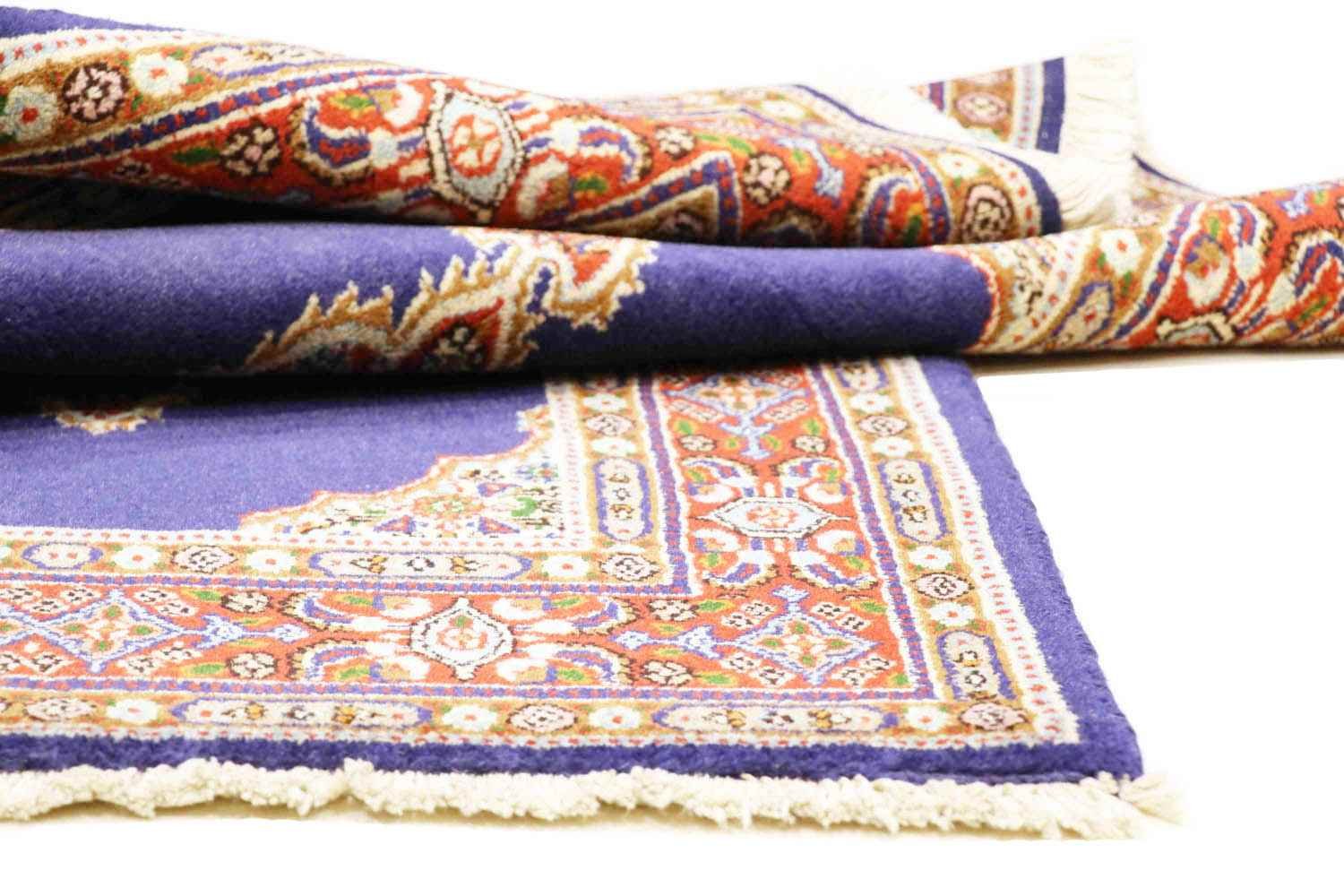 Moud carpets are renowned Oriental carpets known for their fine patterns and elegant colour compositions in white and blue. They are traditionally knotted with silk, which gives them a special delicacy and elegance. Classic Oriental carpets such as the Moud are hand-knotted unique pieces that have retained their characteristic patterns through generations. The origin of the carpet has a significant influence on the method of manufacture, the material and the motifs. Particularly high-quality Persian carpets, named after their city of origin, are characterised by first-class materials, knot density, unique colour harmonies and traditional designs. Whether made of precious silk or soft sheep’s wool, Moud carpets add a special touch to any room and showcase the highest level of craftsmanship.