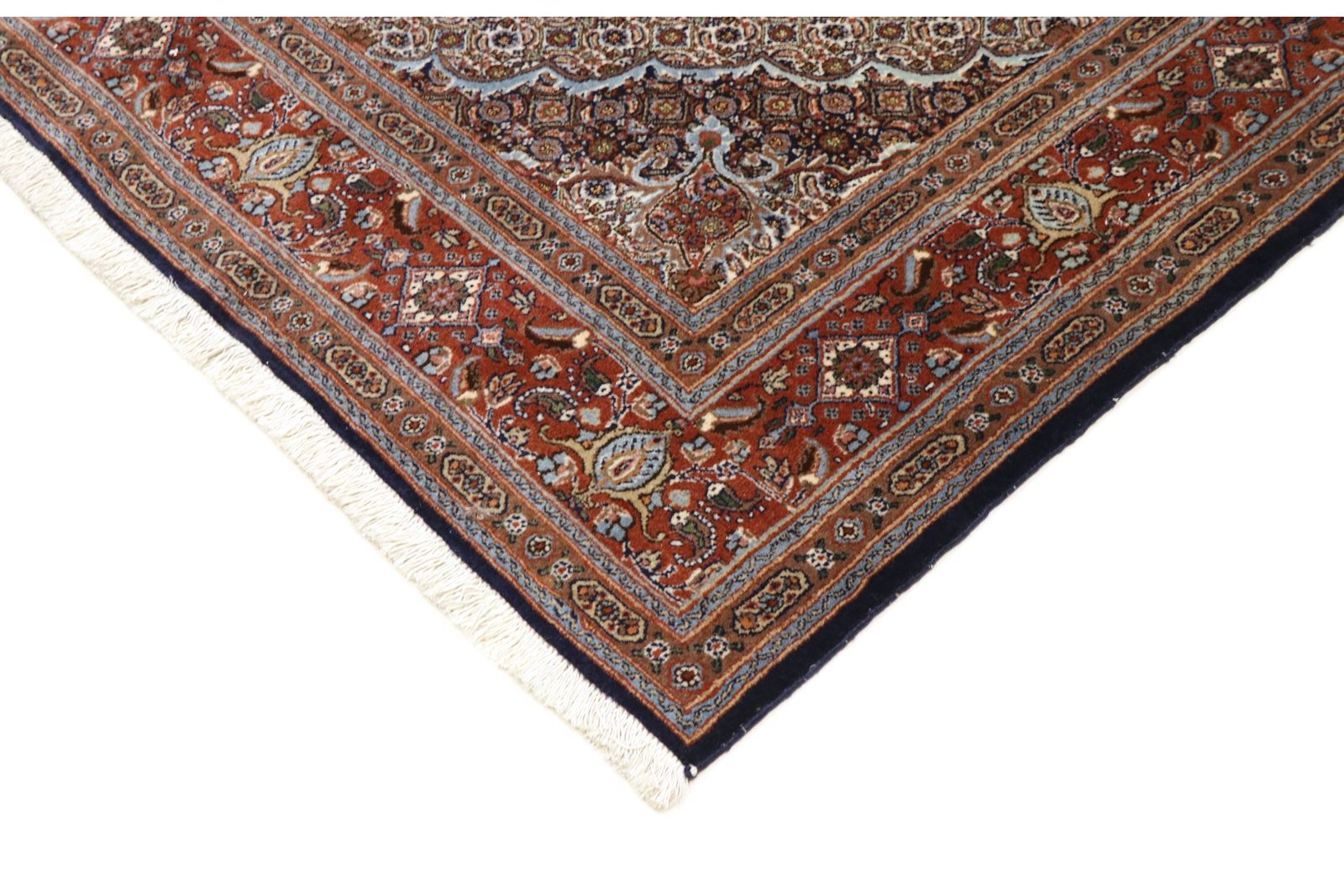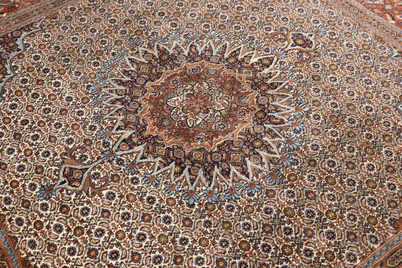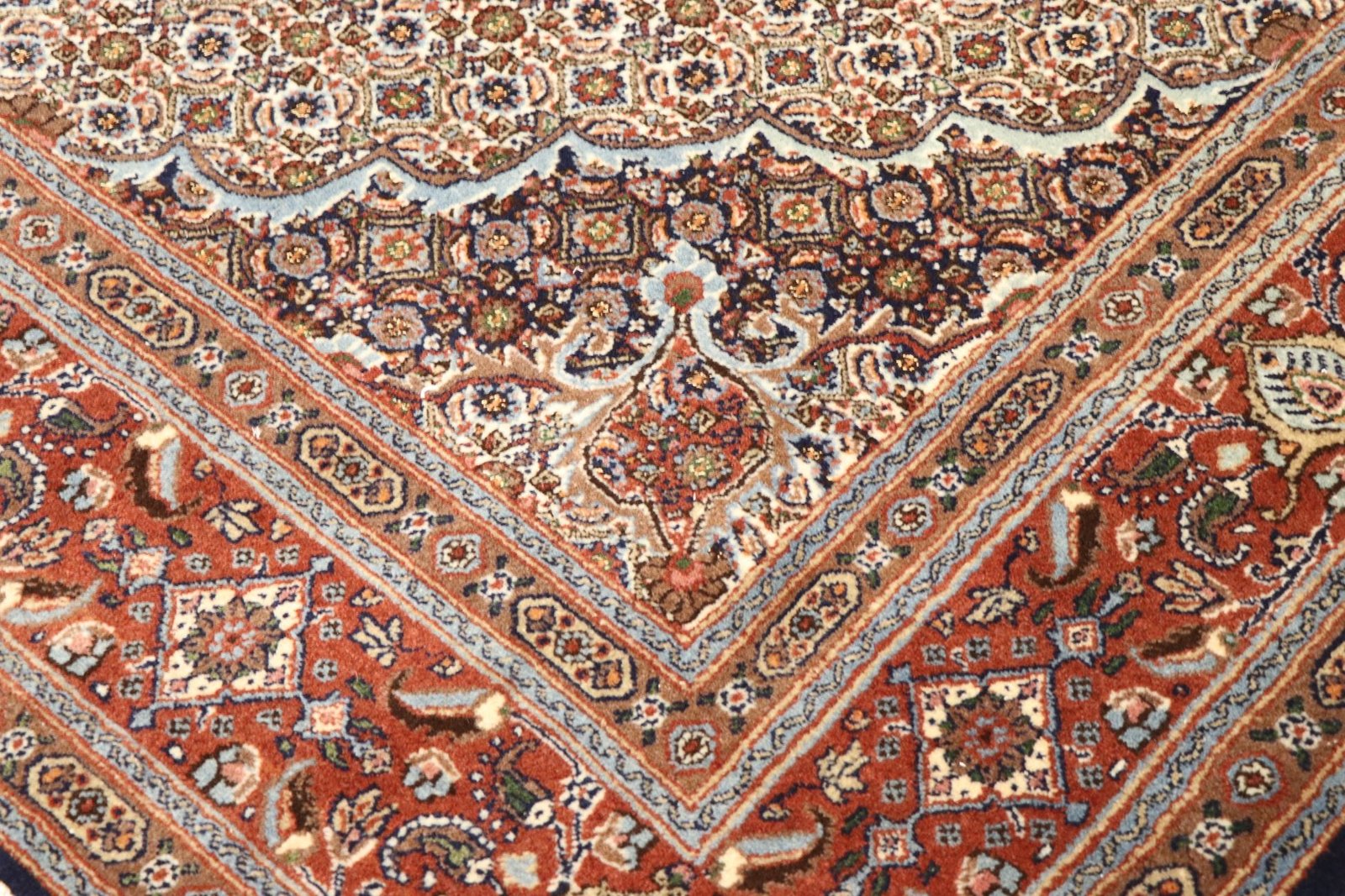 Moud is a well-known oriental carpet, famous for its small patterns and harmonious shades of white and blue. It is traditionally knotted with silk, which gives it a special elegance. Classic oriental carpets are hand-knotted unique pieces whose typical patterns are passed down from generation to generation. The region of origin influences the manufacturing method, the material and the motifs of the carpet. These traditions are particularly reflected in high-quality Persian carpets, which are named after their city of origin. These hand-knotted works of art are characterised by first-class materials, high knot density, unique colour harmonies and traditional designs. Whether made of precious silk or soft sheep’s wool, the Moud carpet adds a special touch to any room and sets stylish accents.