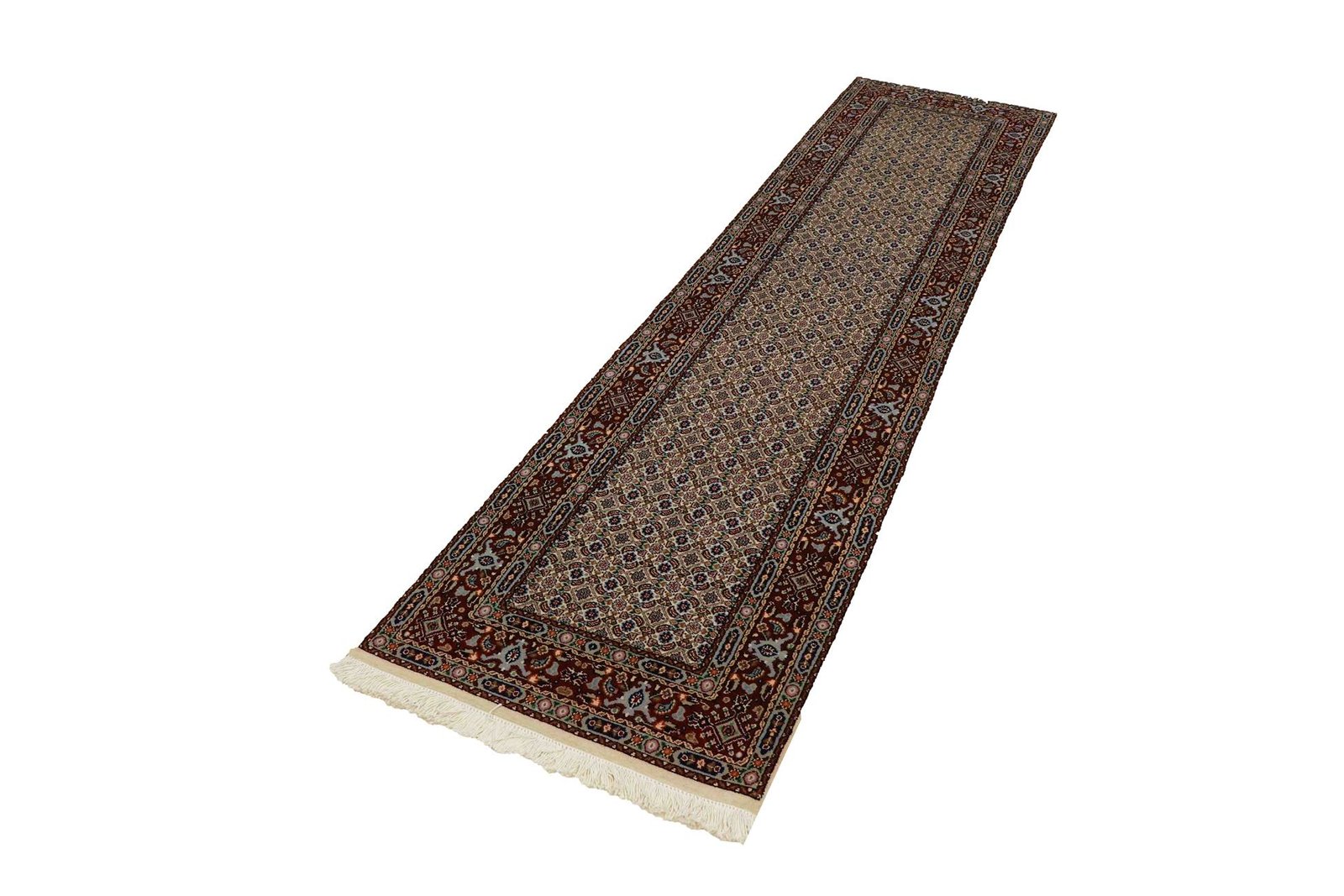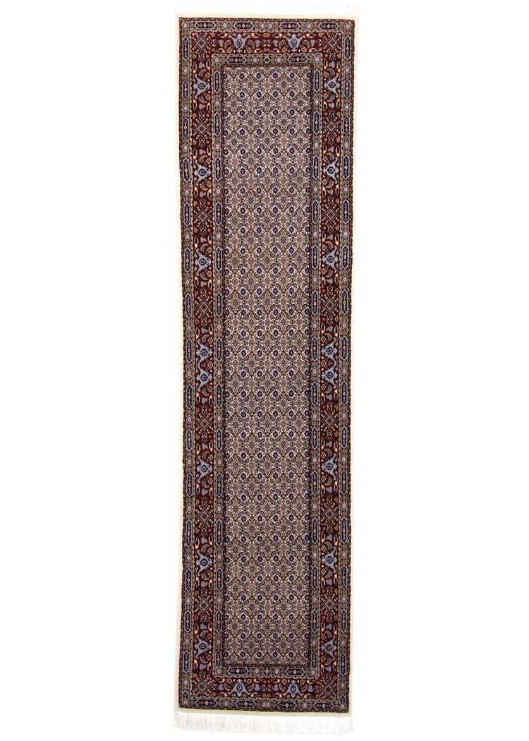 Moud is a renowned oriental carpet, known for its fine patterns and elegant white and blue tones, which is always woven from silk. Classic oriental carpets such as this one are hand-knotted unique pieces, whose typical designs are passed down from generation to generation. The region of origin influences the manufacturing method, the material and the motifs of the carpet. This is especially true for high-quality Persian carpets, which are named after their city of origin. Moud carpets are characterised by first-class materials, knot density, unique colour harmonies and traditional designs. Whether made from precious silk or soft sheep’s wool, this oriental carpet adds a special touch to any room and is an impressive example of the exquisite art of carpet weaving.