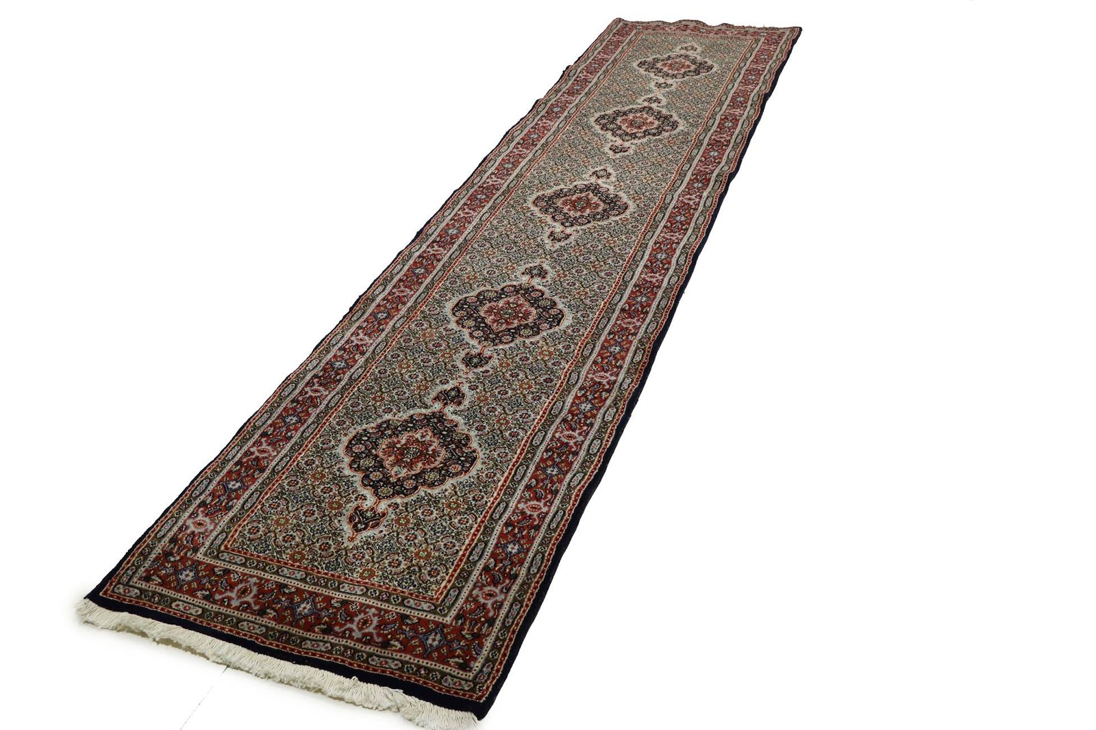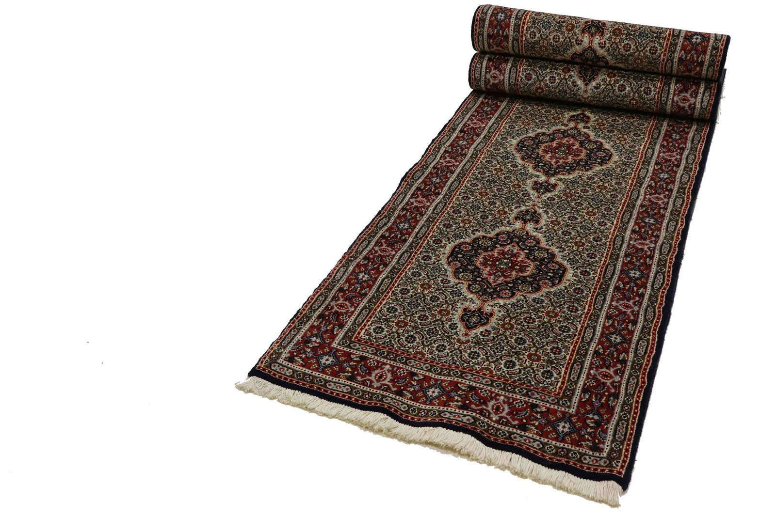 Moud carpets are well-known Oriental carpets characterised by their small patterns and elegant white and blue tones. They are always woven from fine silk. Classic Oriental carpets, such as those from Moud, are hand-woven unique pieces that have passed down their typical patterns from generation to generation. The origin influences the manufacturing method, the material and the motifs of these carpets. Particularly high-quality Persian carpets are named after their city of origin and are characterised by first-class materials, knot density, unique colour harmonies and traditional designs. Whether made of precious silk or soft sheep’s wool, Moud carpets add a special touch to any room and are an outstanding example of the craftsmanship and tradition of Oriental carpets.