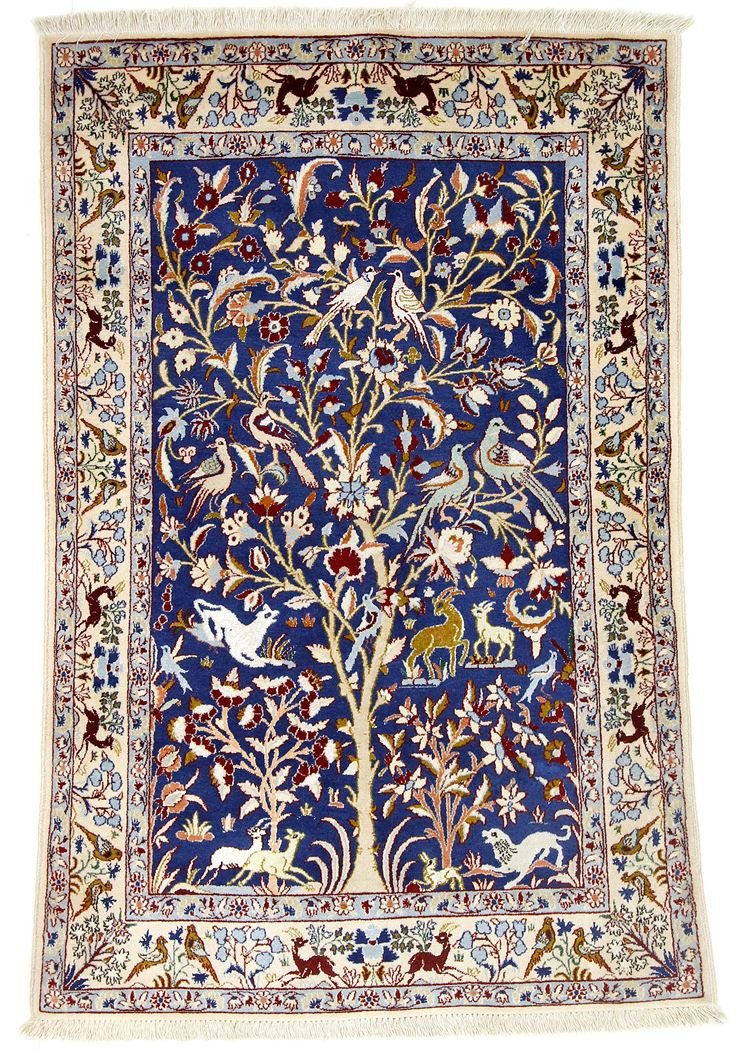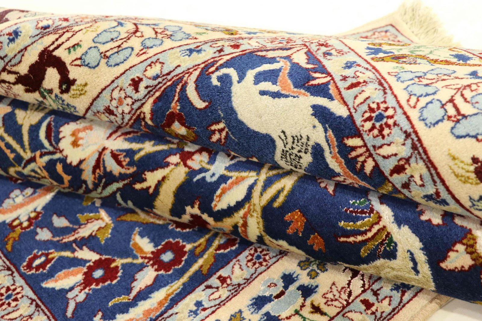Nain, a beautiful city in southern Persia, is known for its carpets, which captivate with their simple elegance and fine quality. Carpets from Nain are characterised by their light colours, especially white and light blue, and the use of silk. The city has a long tradition of renowned master weavers who are known for their fine and soothing oriental carpets. Classic oriental carpets from Nain are hand-knotted, unique pieces whose patterns have been passed down through generations. The origin influences the manufacturing method, the material and the motifs of the carpets. Particularly high-quality Persian carpets, named after their city, are characterised by first-class materials, knot density, unique colour harmonies and traditional designs.