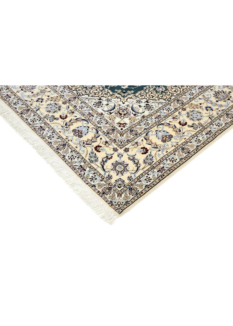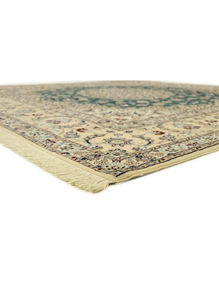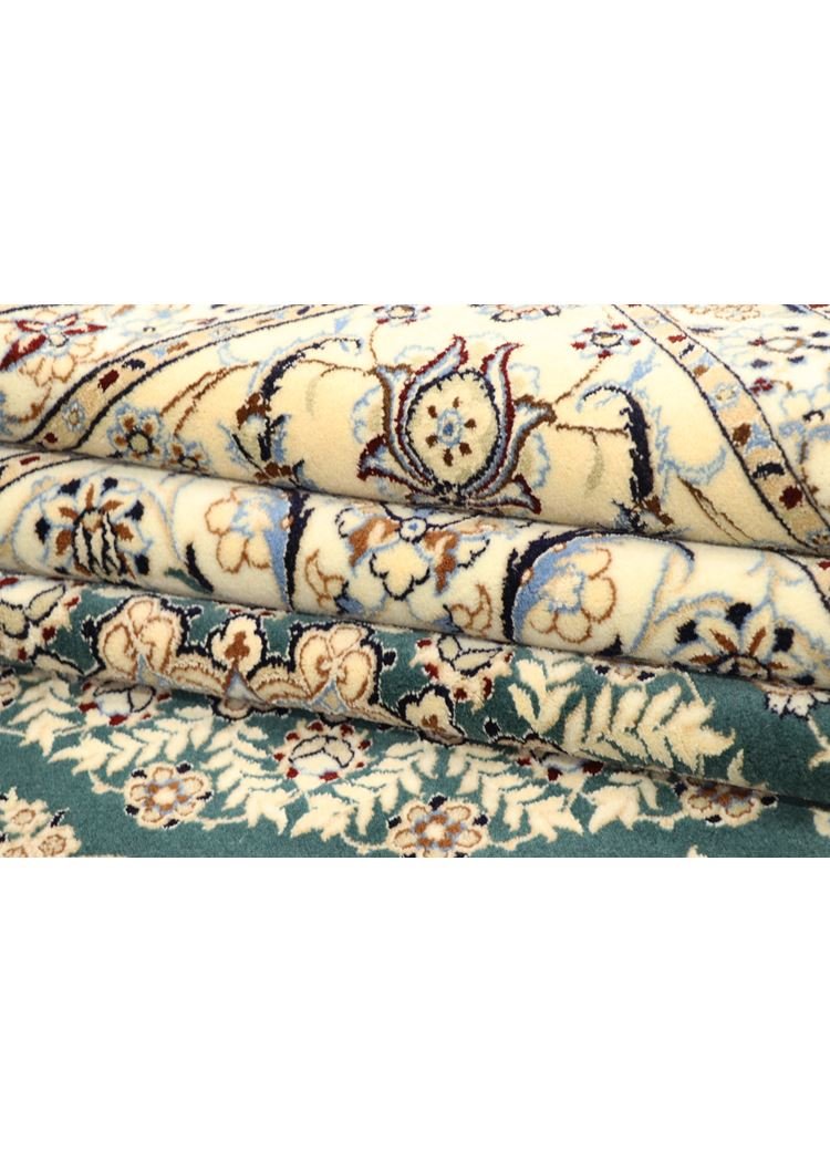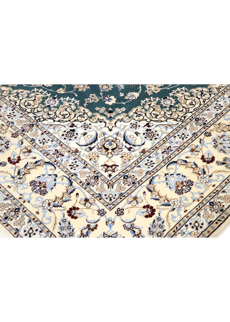 Nain, a picturesque town in southern Persia, is famous for its exquisite carpets, which range from simple to the finest quality. These carpets are characterised by a predominant colour palette of white and light blue and the use of silk. Nain is known for its masterful weavers and the production of particularly fine and soothing oriental carpets. Classic oriental carpets from this region are hand-knotted, unique pieces with patterns that have been passed down through generations. The region of origin influences the manufacturing method, materials and motifs, especially in high-quality Persian carpets. These works of art captivate with their first-class materials, high knot density, harmonious colours and traditional design, which lend every room a unique atmosphere.