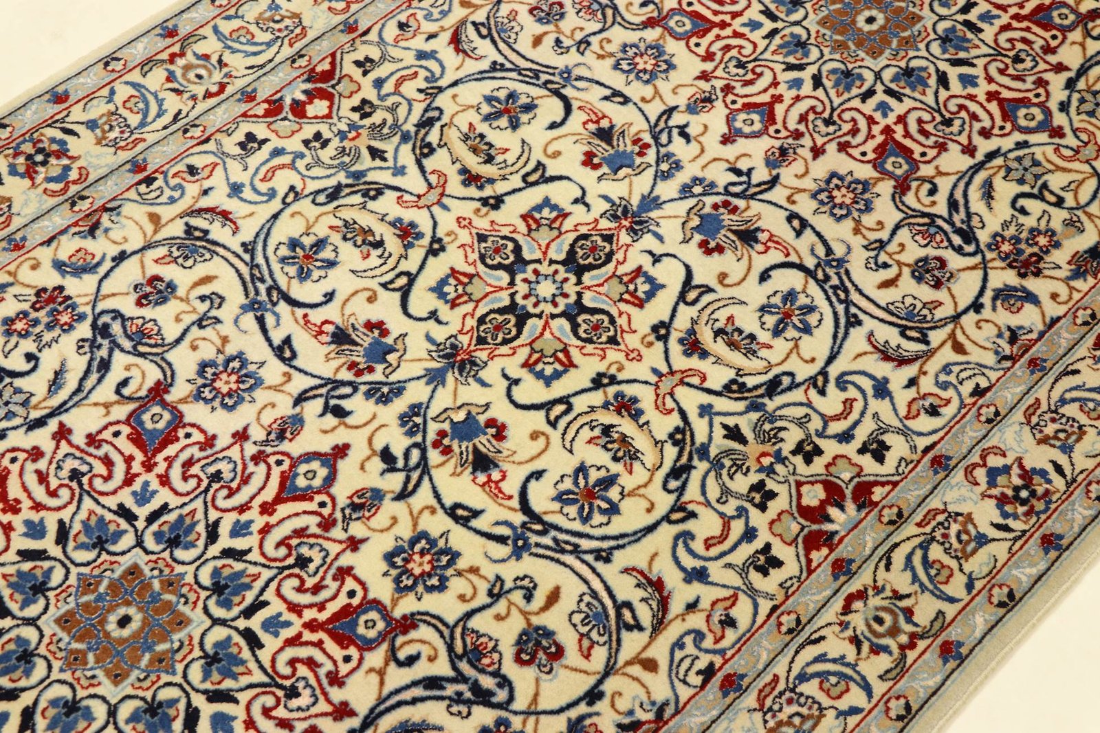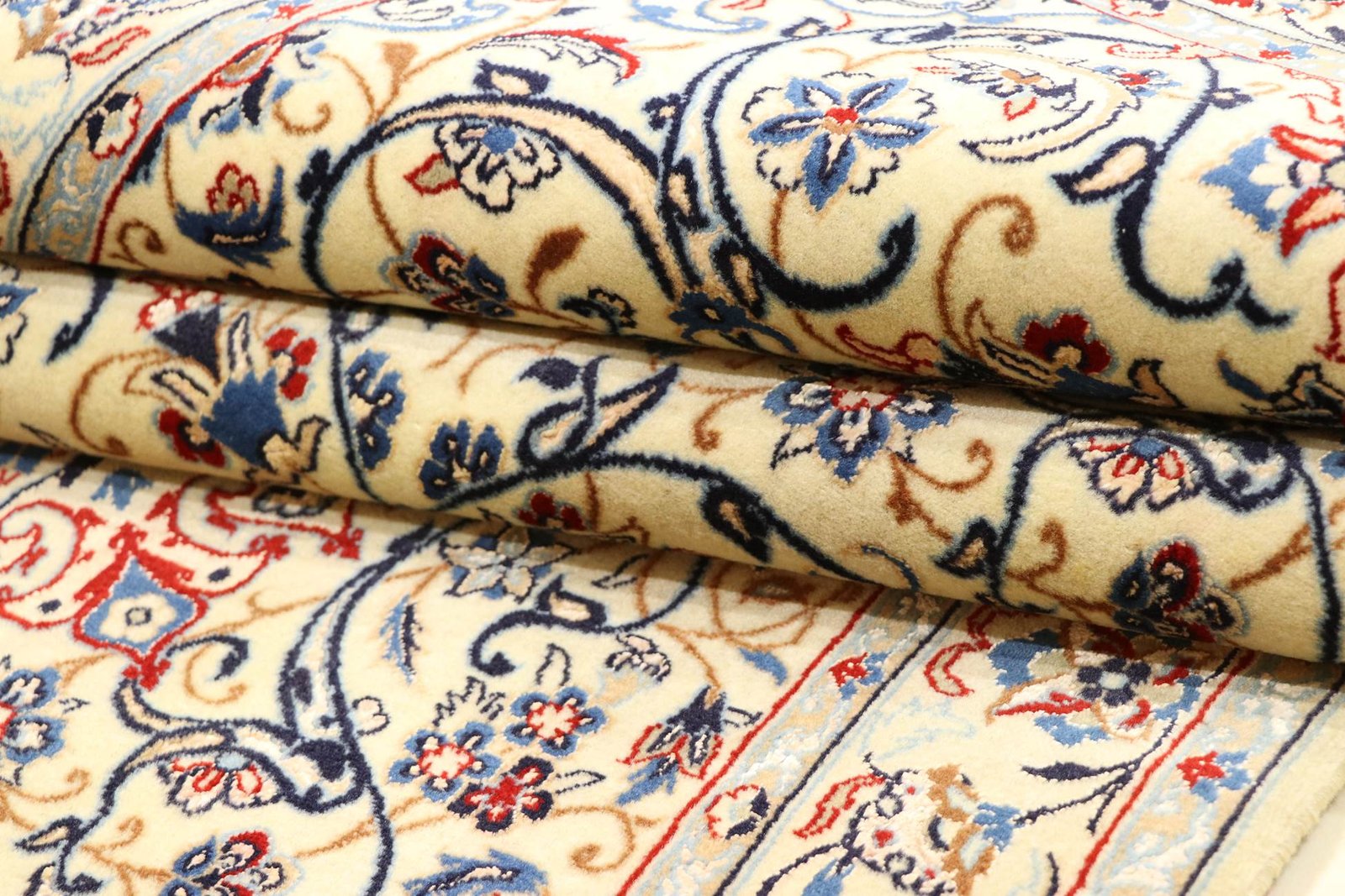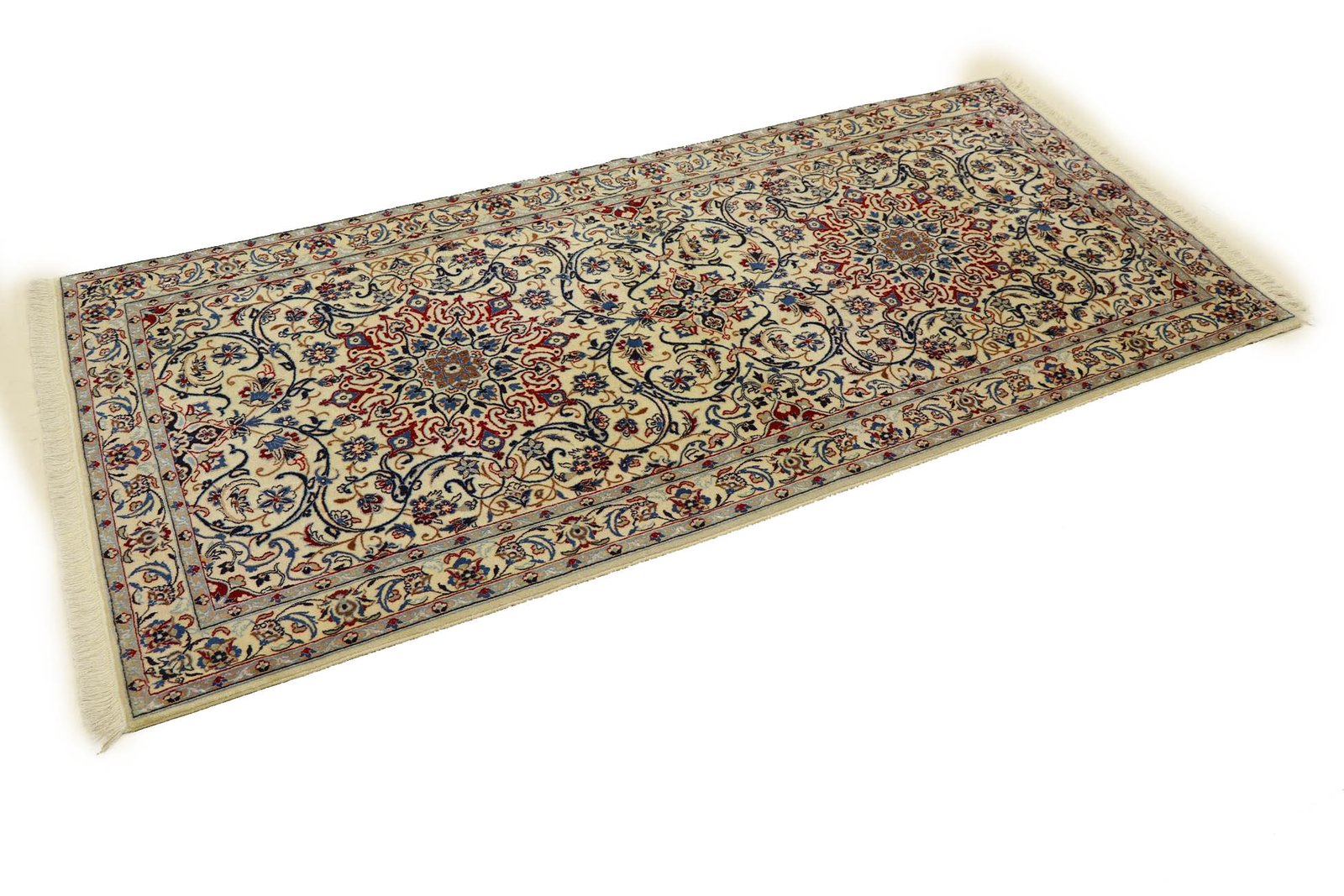 Nain is a picturesque town in southern Persia, known for its exquisite carpets. These carpets, often decorated with lots of white and light blue and silk, are famous for their fineness and beauty. Nain was home to many master weavers whose works are among the most beautiful and soothing Oriental carpets. Classic Oriental carpets are hand-knotted unique pieces whose typical patterns are passed down from generation to generation. High-quality Persian carpets, named after their cities of origin, are characterised by first-class materials, high knot density, unique colour harmonies and traditional designs. Whether made of precious silk or soft cork wool, Nain carpets add a special touch to any room and reflect the rich cultural tradition.