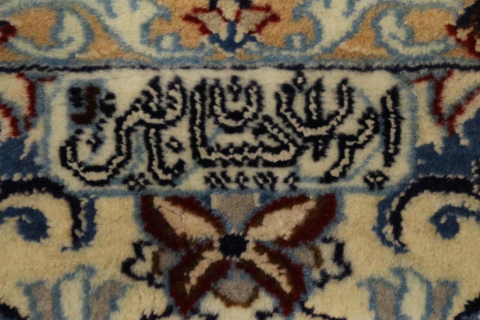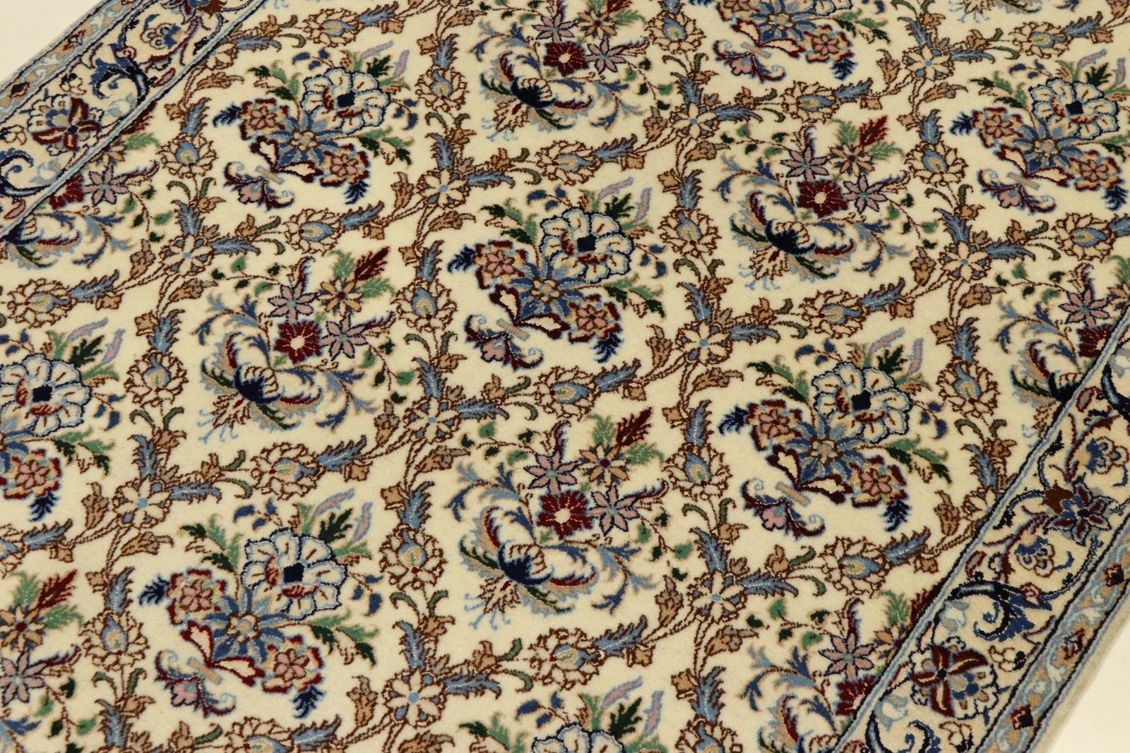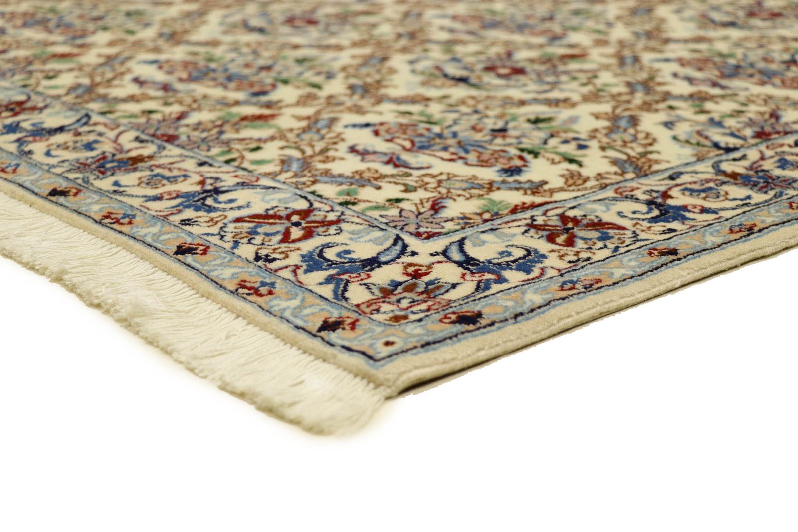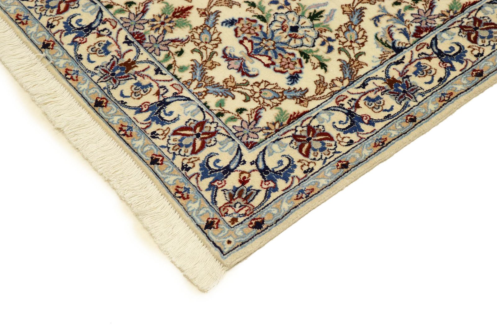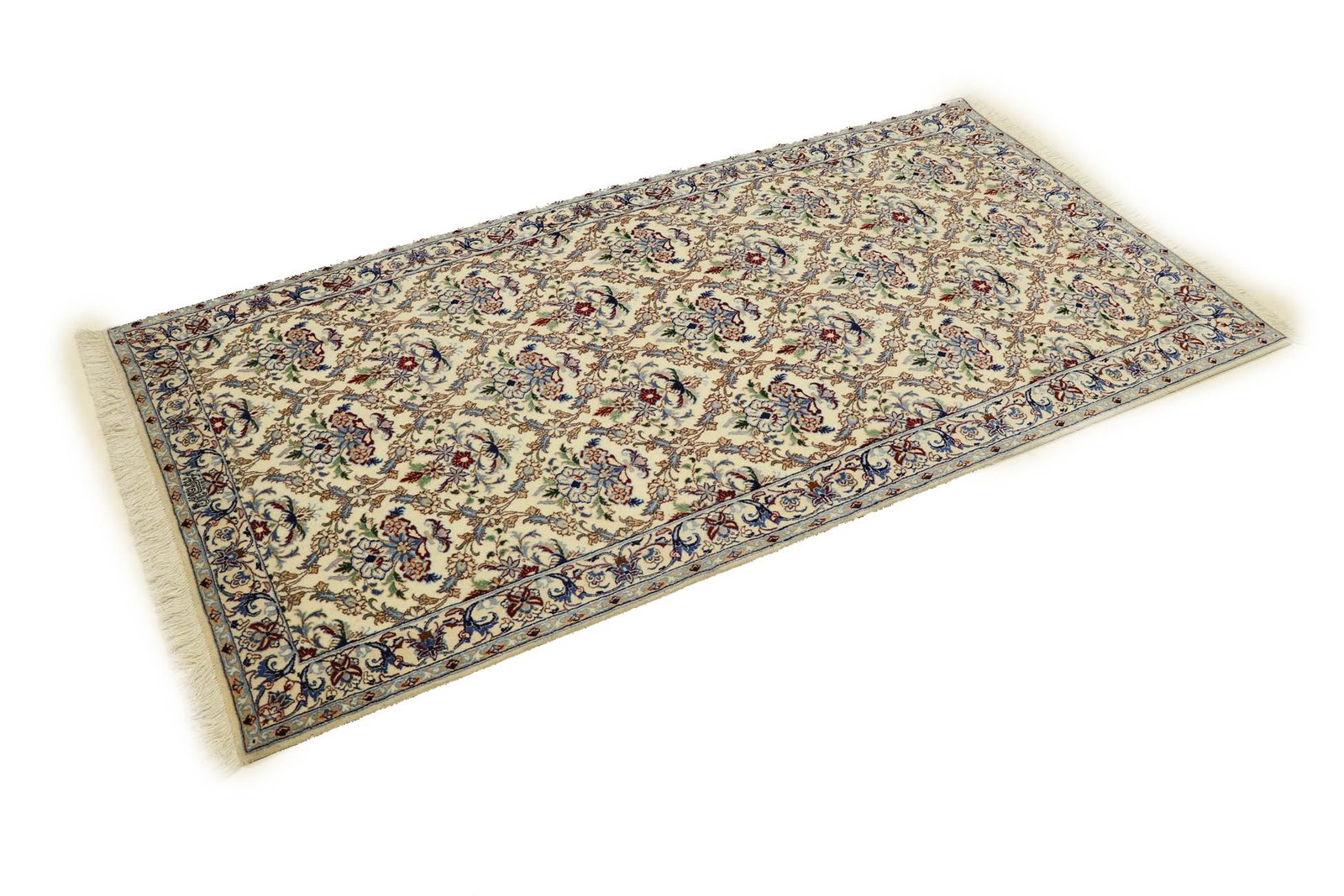 Nain, a picturesque town in southern Persia, is famous for its exquisite carpets, which range from simple to the finest quality. Nain carpets are characterised by the frequent use of white and light blue colours and the use of silk. The town has produced many famous master weavers whose work is renowned for its fineness and calming effect. Classic oriental carpets, hand-knotted unique pieces, owe their typical patterns to centuries-old tradition. Particularly high-quality Persian carpets, such as those from Nain, are characterised by first-class materials, high knot density and harmonious colour combinations. They are often named after their city of origin and lend every room a special touch, whether through precious silk or soft cork wool.