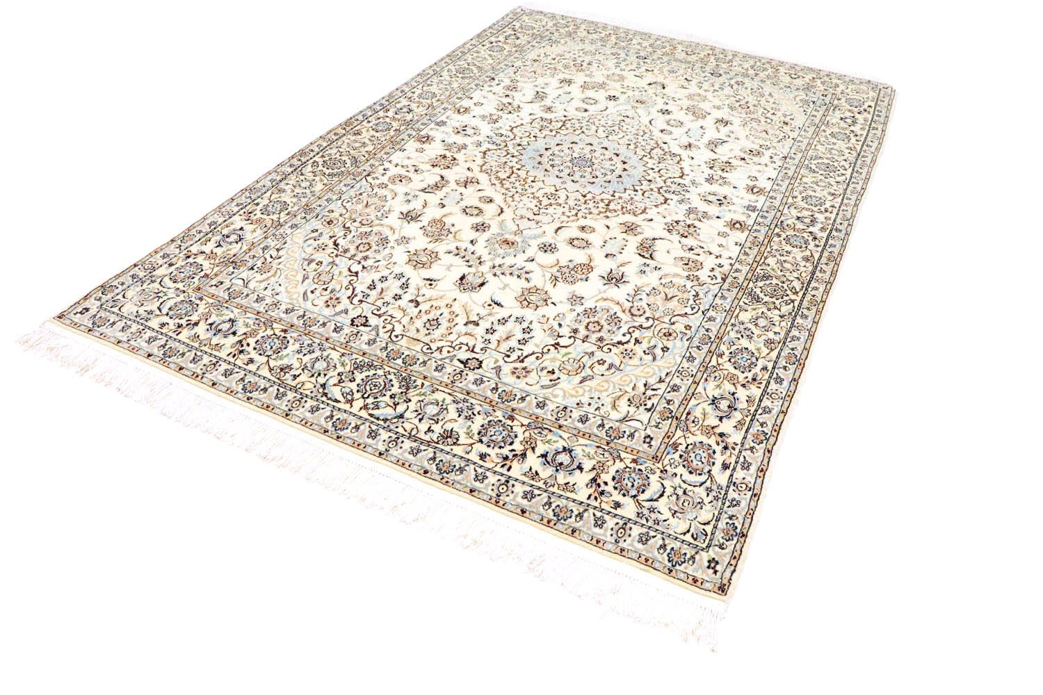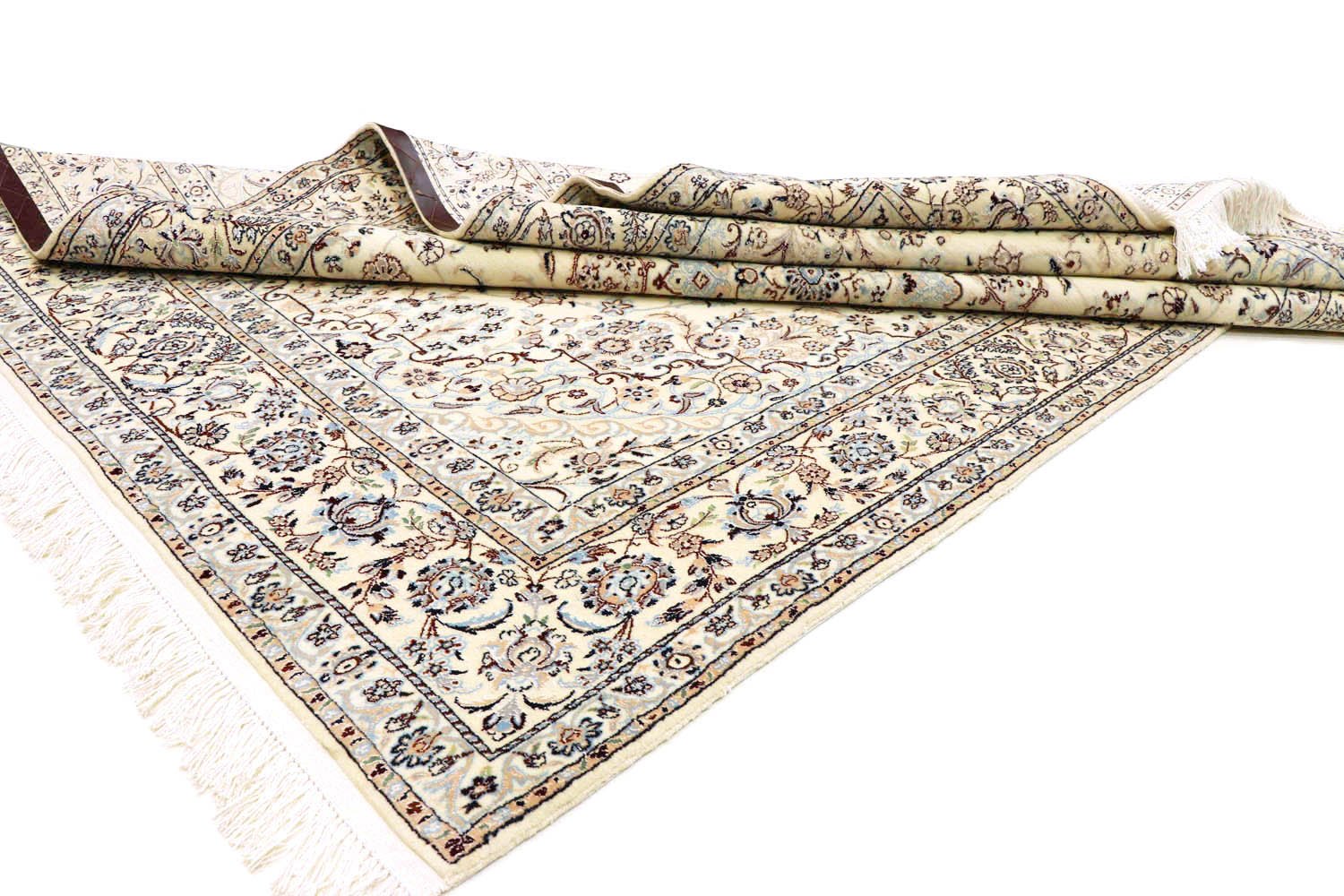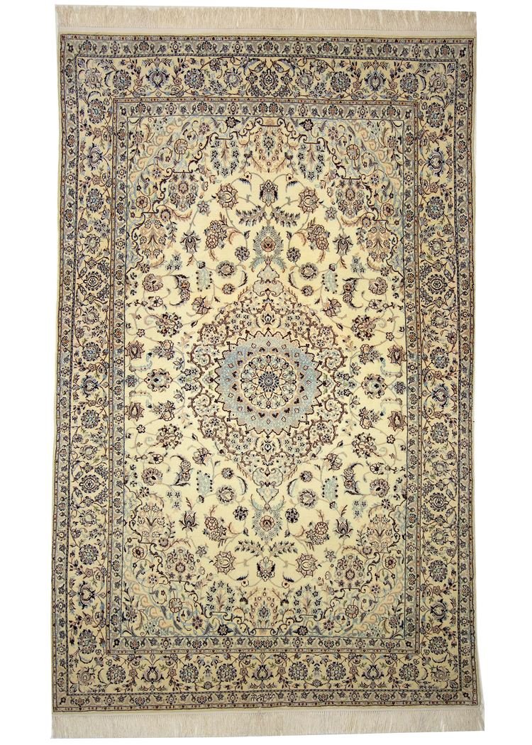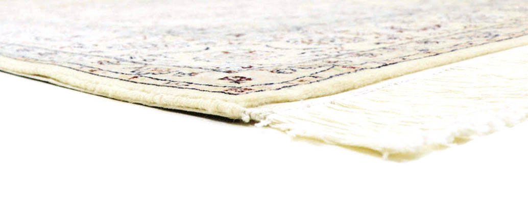 Nain, a picturesque town in southern Persia, is famous for its exquisite carpets. Carpets from Nain are characterised by their high quality and elegant interplay of white and light blue, often embellished with fine silk. This town has produced numerous master weavers who are renowned for their artistic and soothing oriental carpets. Classic oriental carpets made in Nain are unique, hand-knotted pieces whose typical patterns are passed down from generation to generation. They reflect the heritage of their origin, both in the method of manufacture and in the materials and motifs used. Particularly valuable Persian carpets from Nain impress with their first-class materials, high knot density, harmonious colours and traditional designs. These works of art lend every room a special touch, whether through fine silk or soft cork wool.