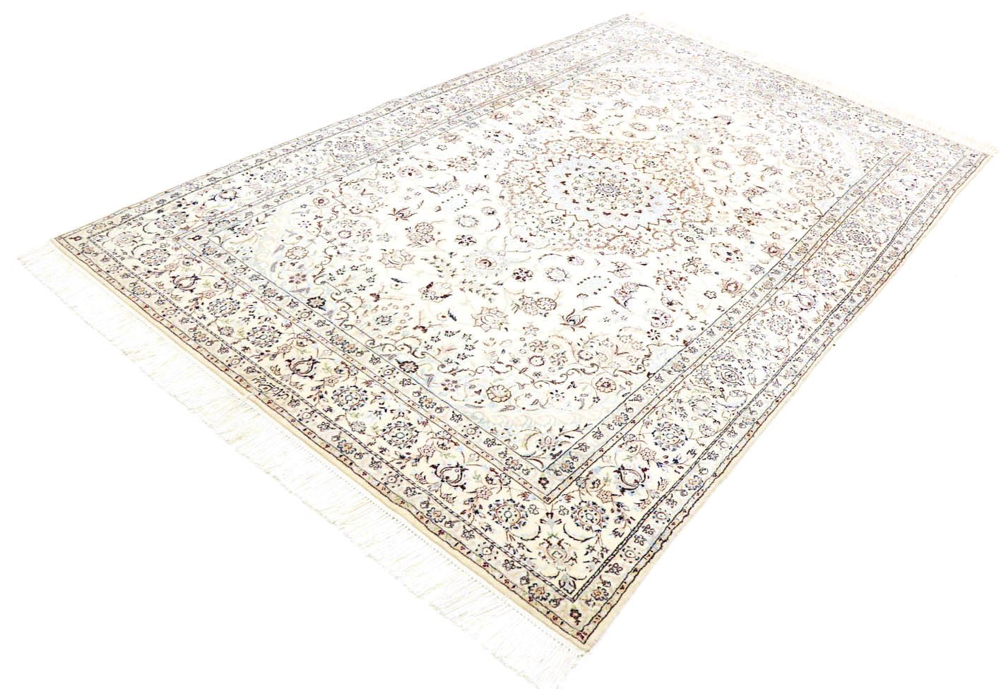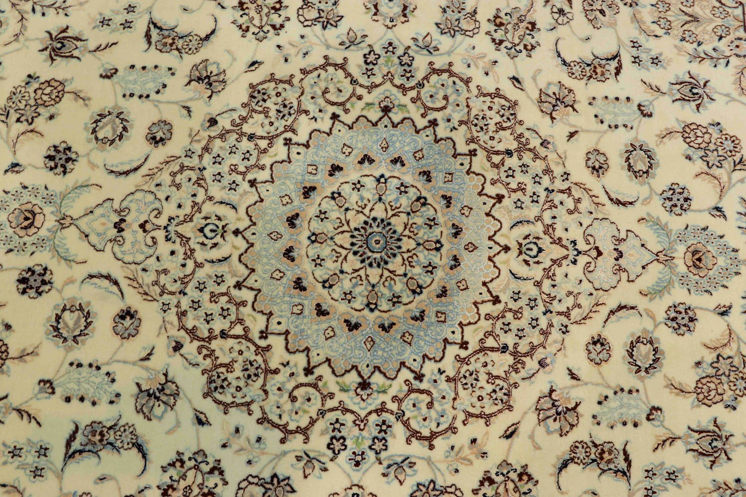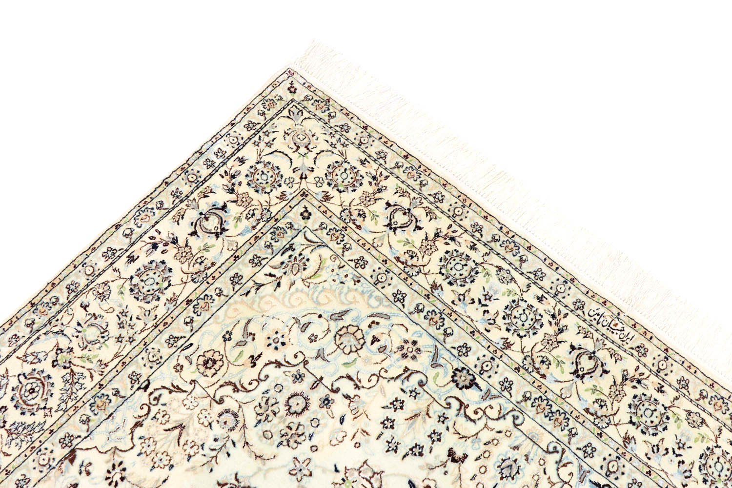 Nain, a picturesque town in southern Persia, is famous for its exquisite carpets. Carpets from Nain are characterised by their high quality and elegant interplay of white and light blue, often embellished with fine silk. This town has produced numerous master weavers who are renowned for their artistic and soothing oriental carpets. Classic oriental carpets made in Nain are unique, hand-knotted pieces whose typical patterns are passed down from generation to generation. They reflect the heritage of their origin, both in the method of manufacture and in the materials and motifs used. Particularly valuable Persian carpets from Nain impress with their first-class materials, high knot density, harmonious colours and traditional designs. These works of art lend every room a special touch, whether through fine silk or soft cork wool.