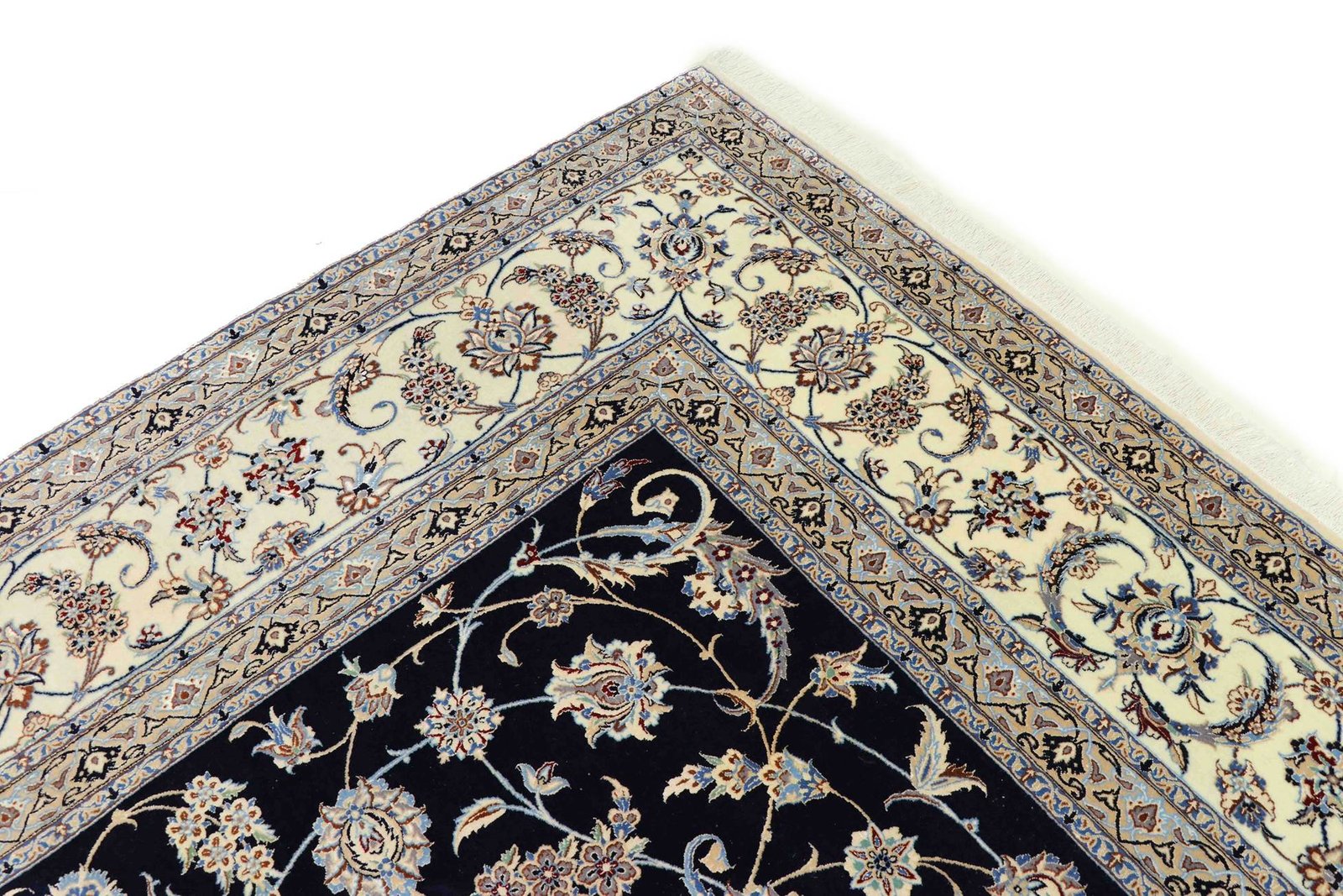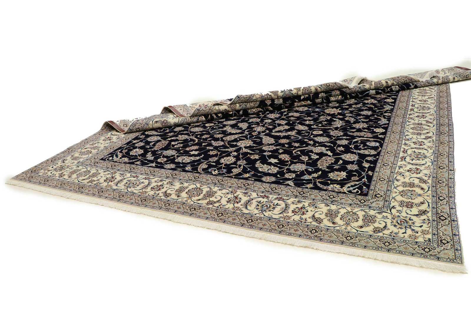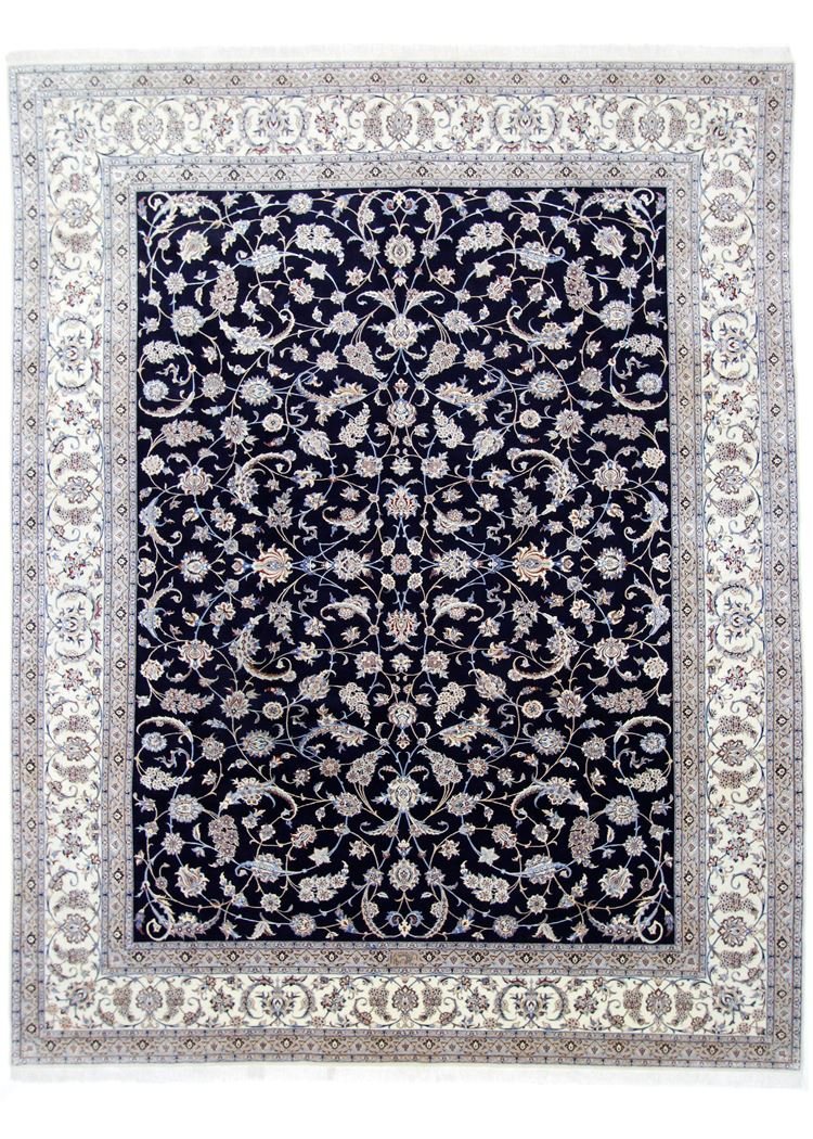 Nain, a picturesque city in southern Persia, is famous for its exquisite carpets. These carpets are characterised by an elegant combination of white and light blue and are often decorated with silk. The town is known for its master weavers, who work with exceptional finesse and craftsmanship. The classic oriental carpets from Nain are hand-knotted unique pieces whose traditional patterns have been passed down from generation to generation. Each piece is a work of art that captivates with its high-quality materials, precise knot density and unique colour harmonies. The fine Persian carpets, named after their city of origin, are particularly prized and lend every room a special atmosphere. The combination of precious silk and soft cork wool ensures timeless beauty and quality.