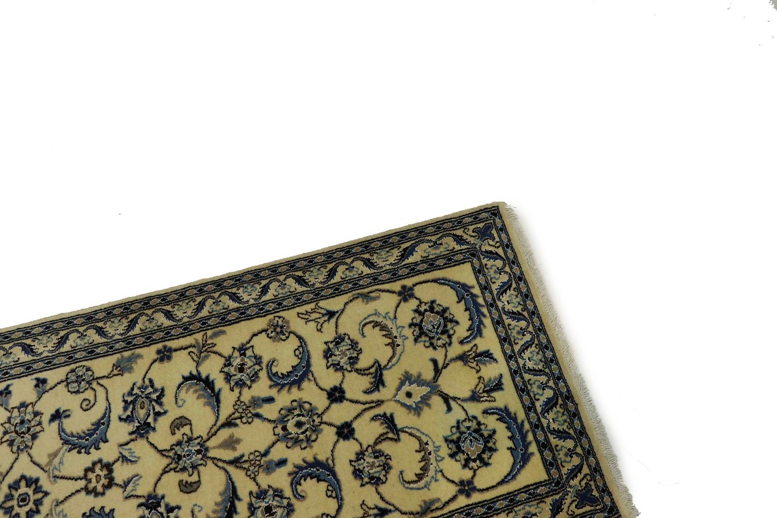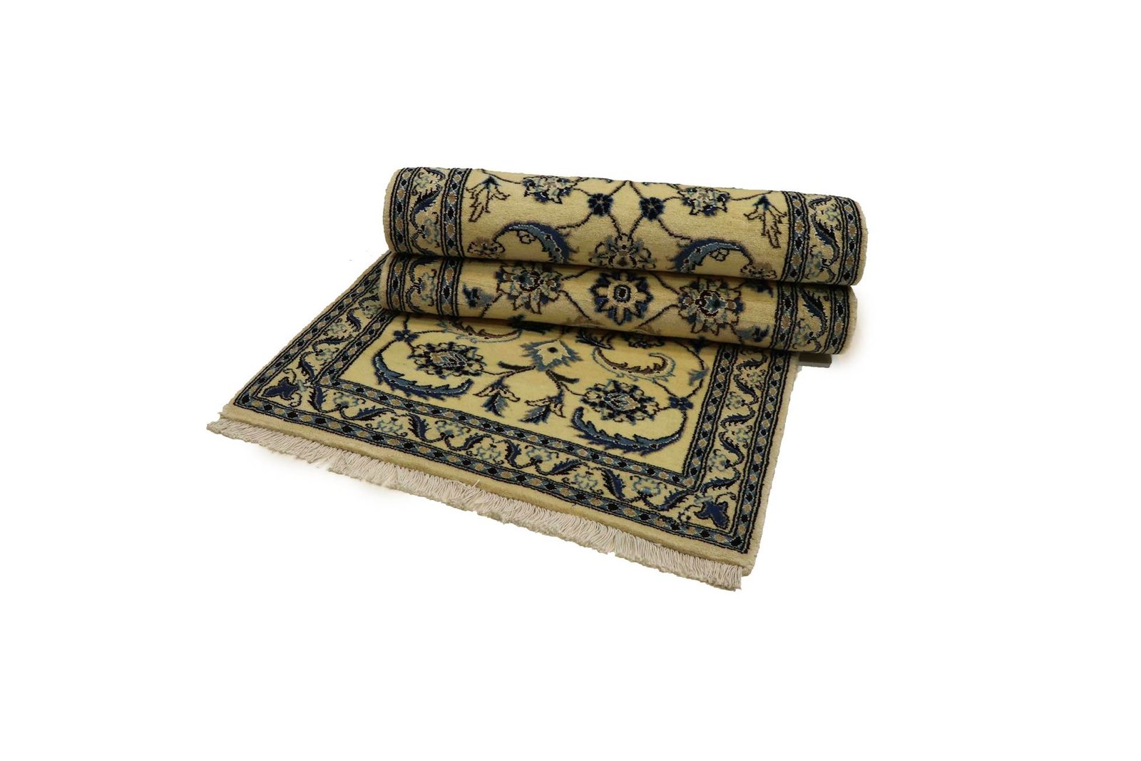 Nain, a picturesque town in southern Persia, is famous for its high-quality carpets. Carpets from Nain are particularly known for their elegant designs in white and light blue and for their use of silk. The town has a long tradition of carpet weaving, with many renowned masters who are valued for the exquisite craftsmanship and fine details of their work. Classic oriental carpets, including those from Nain, are hand-knotted unique pieces that are passed down through generations and are characterised by their origin. These carpets are distinguished by their first-class materials, knot density and harmonious colours. Whether made of fine silk or soft cork wool, an oriental carpet adds a special touch to any room.
