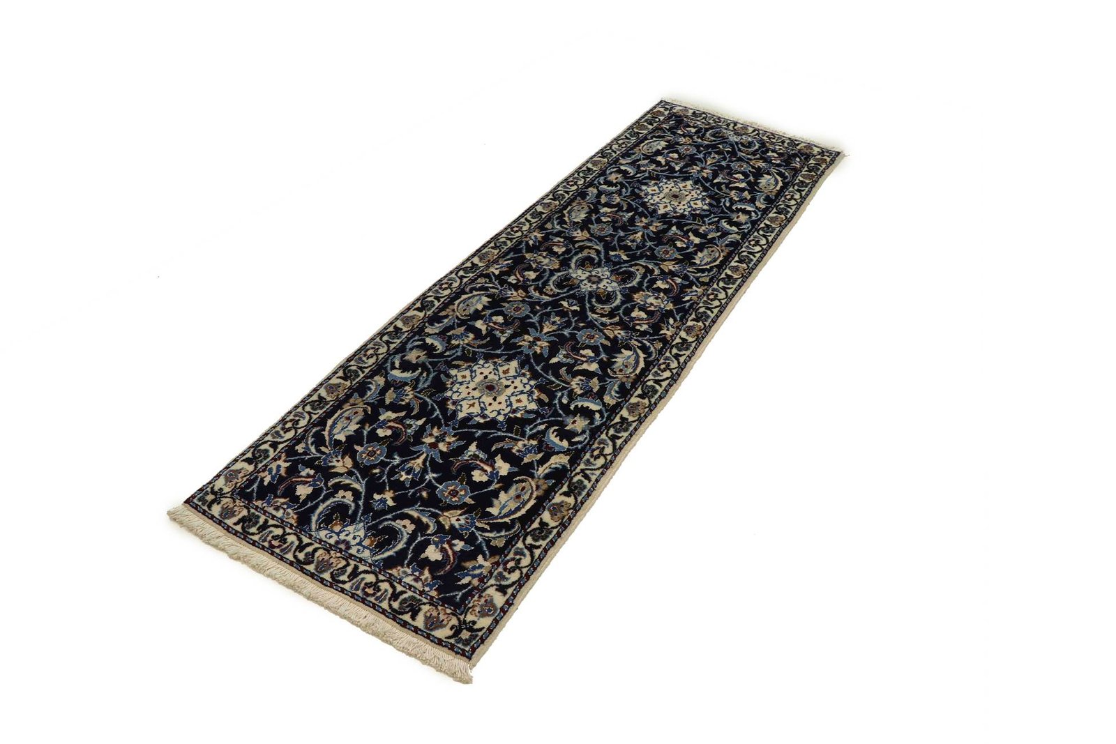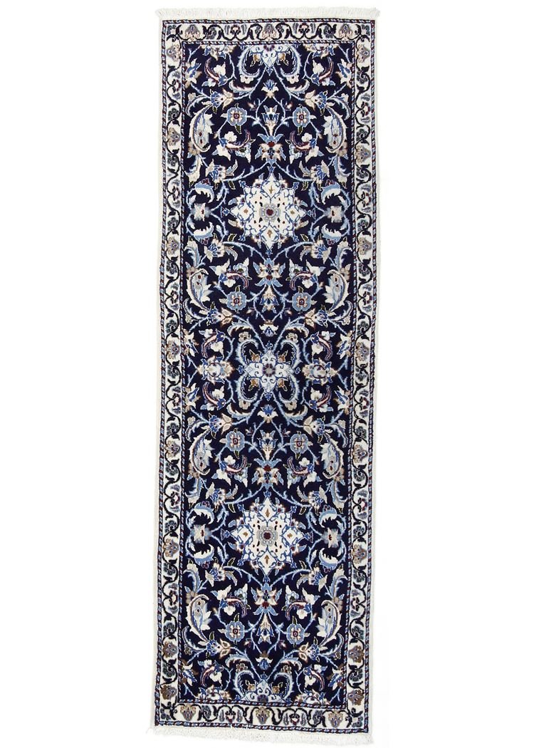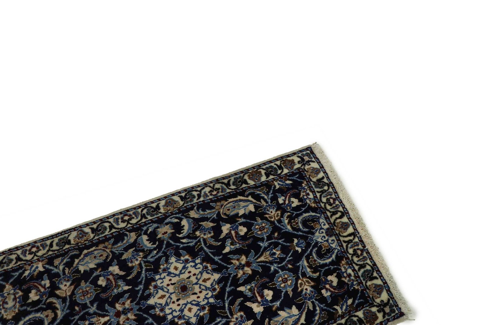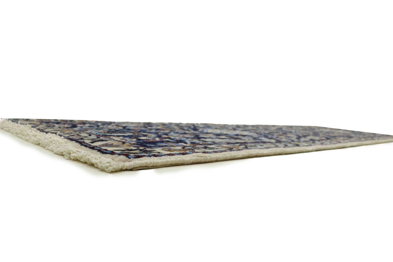 Nain is a picturesque town in southern Persia, famous for its exquisite carpets. These carpets, often in elegant shades of white and light blue, are characterised by their fine silk and exquisite workmanship. The town has produced many renowned master weavers whose works are known for their delicacy and soothing aesthetics. Classic oriental carpets, including those from Nain, are unique, hand-knotted pieces that are passed down from generation to generation using traditional patterns and techniques. The origin influences the manufacturing method, the material and the motifs of the carpets. High-quality Persian carpets, named after their city of origin, captivate with their first-class materials, high knot density, unique colour harmonies and traditional designs. Silk or soft cork wool add a special touch to any room.