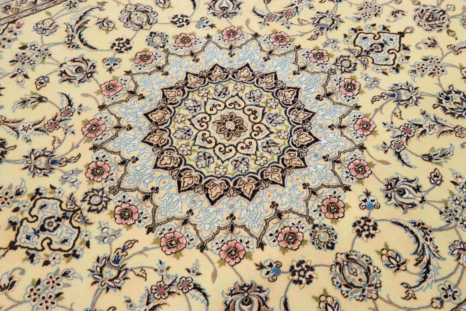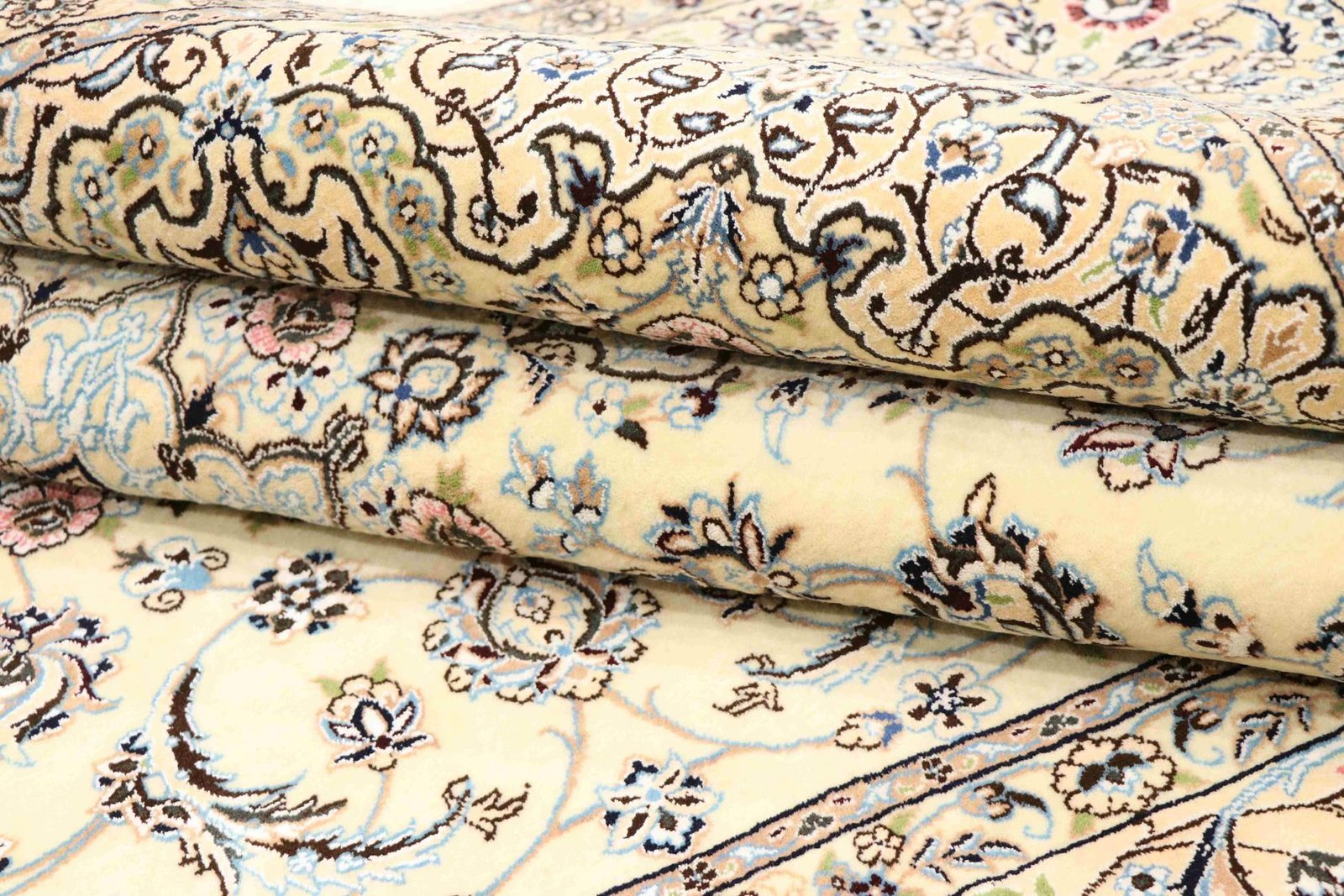 Nain is a charming city in southern Persia, known for its exquisite carpets. Carpets from Nain are characterised by elegant colours such as white and light blue and are often finished with silk. The city is famous for its skilled master weavers and the fine quality of its oriental carpets, which are prized for their soothing and aesthetic designs. Classic oriental carpets from Nain are hand-knotted, unique pieces that feature patterns passed down through generations. The origin influences the manufacturing method, the material and the motifs of the carpets. High-quality Persian carpets, named after their city of origin, impress with their first-class materials, dense knotting and harmonious colours, and lend every room a special touch.