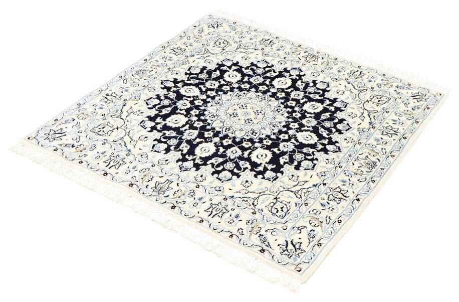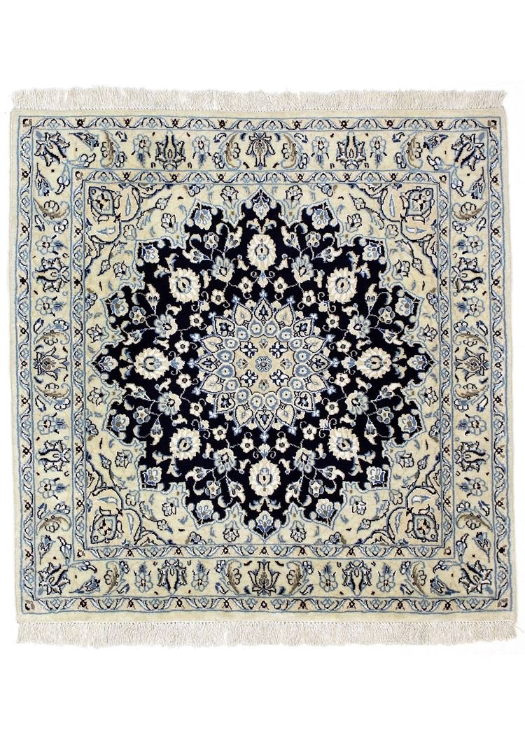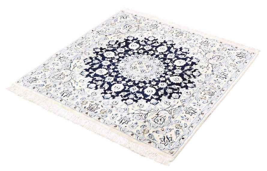 Nain, a picturesque town in southern Persia, is famous for its exquisite carpets. These are characterised by their harmonious colour palette of white and light blue and the use of fine silk. Nain is particularly known for the high quality and attention to detail of its carpets, which are made by experienced master weavers. These unique, hand-knotted pieces are an example of the centuries-old tradition of Oriental carpets, which are characterised by their fine knot density and unique colour harmonies. The origin of the carpets influences both the manufacturing method and the motifs, with each region developing its own distinctive style. Whether made from precious silk or soft wool, Nain carpets lend every room a refined and calming atmosphere.