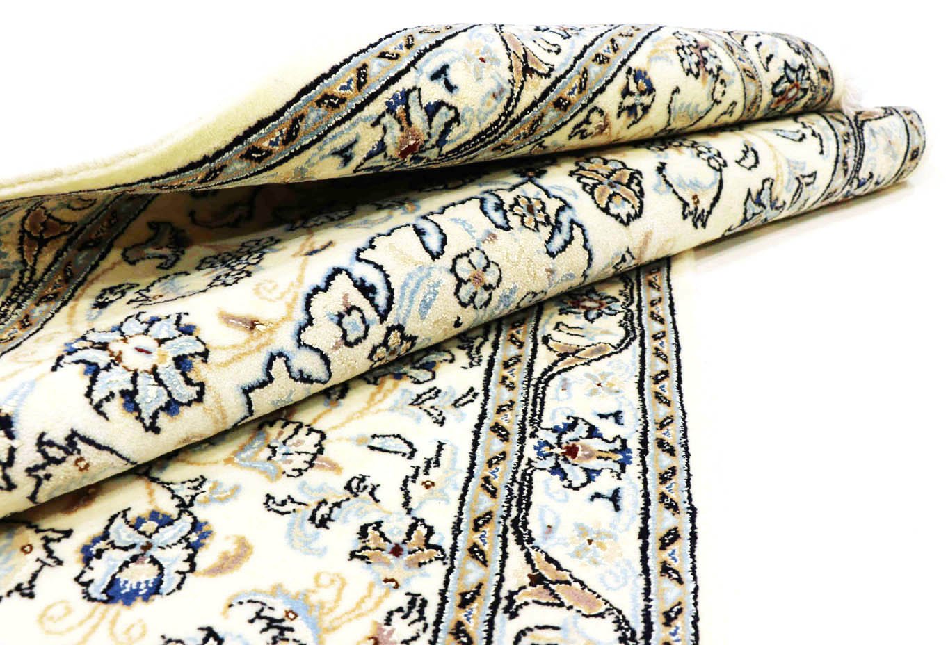 Nain, a picturesque town in southern Persia, is famous for its exquisite carpets. Carpets from Nain are characterised by their elegant designs featuring lots of white and light blue, as well as the finest silk. This town has produced numerous renowned master weavers who are known for the fine details and distinctive beauty of their carpets. Classic Oriental carpets, such as those from Nain, are hand-knotted unique pieces whose patterns are passed down from generation to generation. They reflect traditional manufacturing methods, the materials used and cultural motifs. High-quality Persian carpets, named after their city of origin, captivate with their first-class materials, dense knots, unique colour harmonies and traditional designs. Whether made of precious silk or soft wool, an oriental carpet adds a special touch to any room.