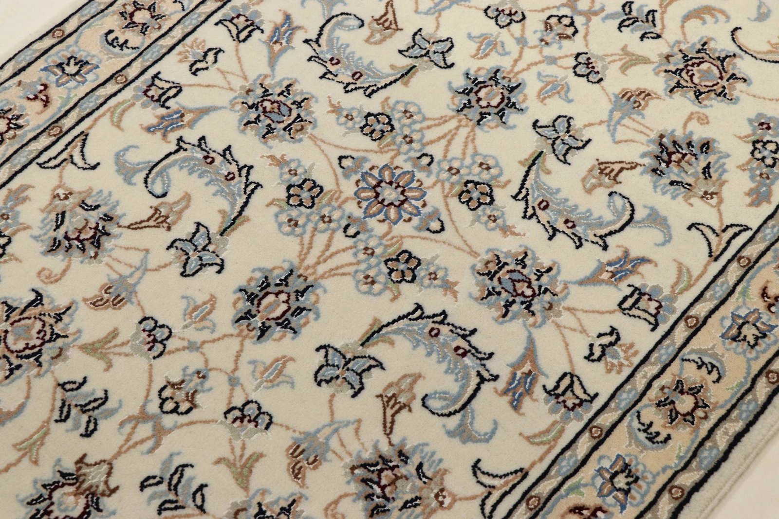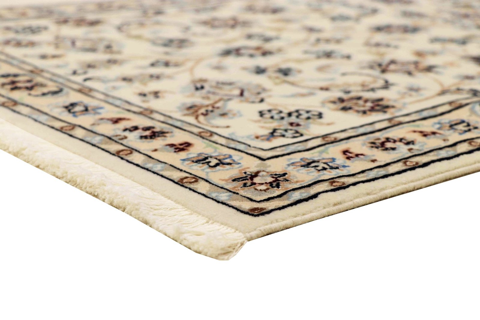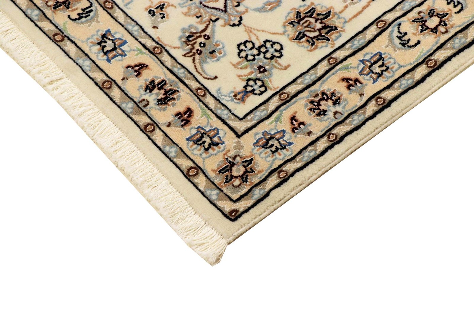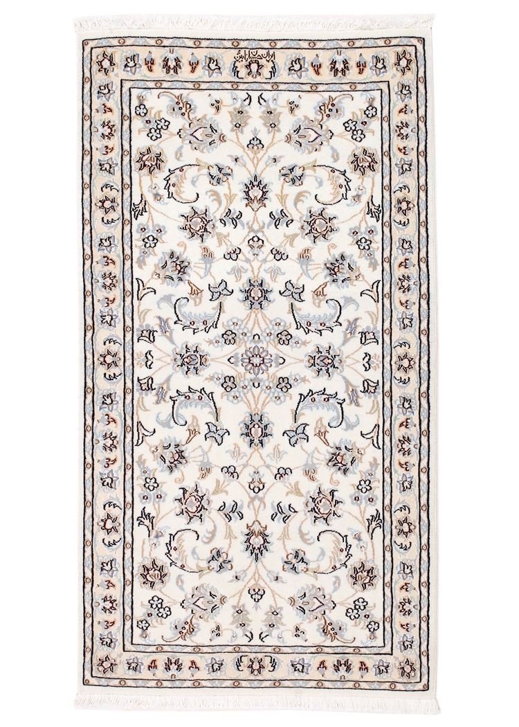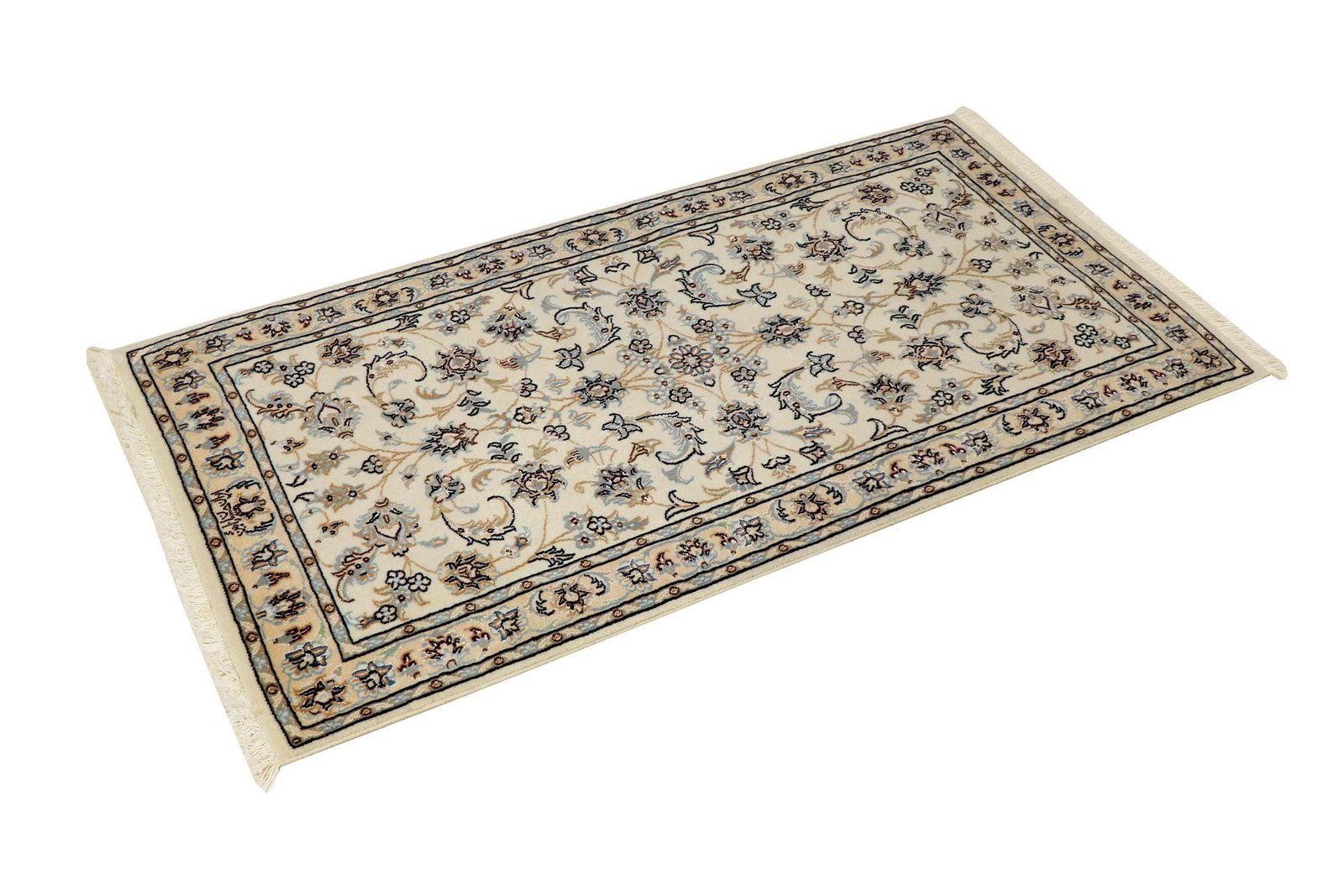 Nain, a picturesque town in southern Persia, is famous for its exquisite carpets. Nain carpets are characterised by their fine quality, with light white and blue tones, often embellished with silk. The town has a long tradition of carpet weaving and is known for its master craftsmen. These oriental carpets are classic pieces of craftsmanship, whose detailed patterns and unique colours have been passed down through generations. The origin influences the manufacturing method, materials and motifs, especially in the case of valuable Persian carpets, which are named after their city of origin. The carpets are characterised by excellent materials, knot density and traditional designs. Whether made of fine silk or soft cork wool, Nain carpets add a special touch to any room.
