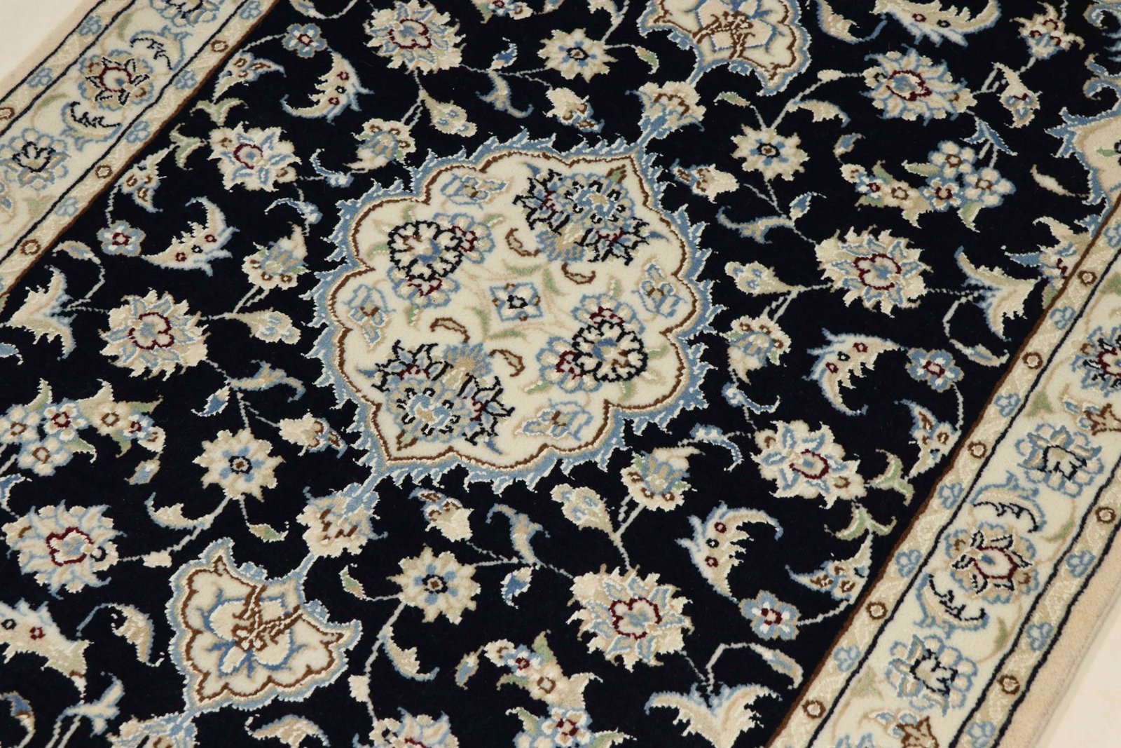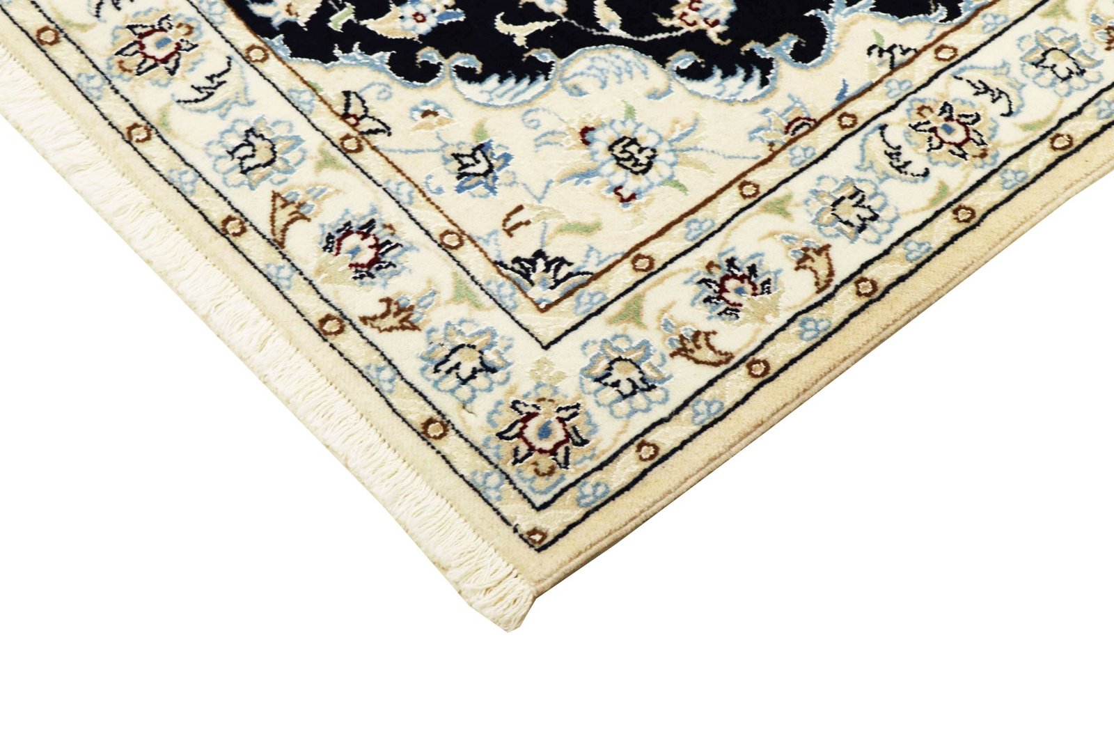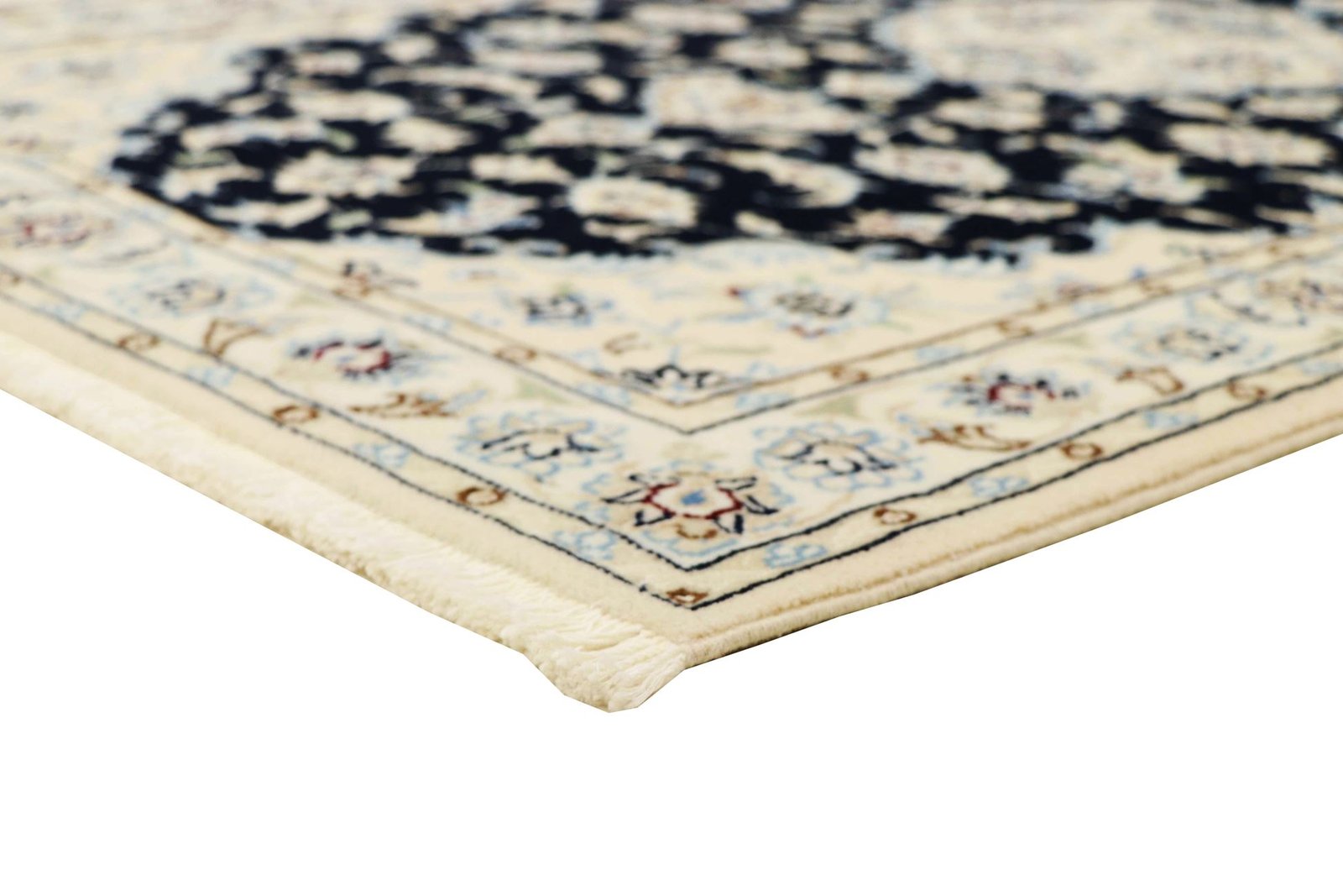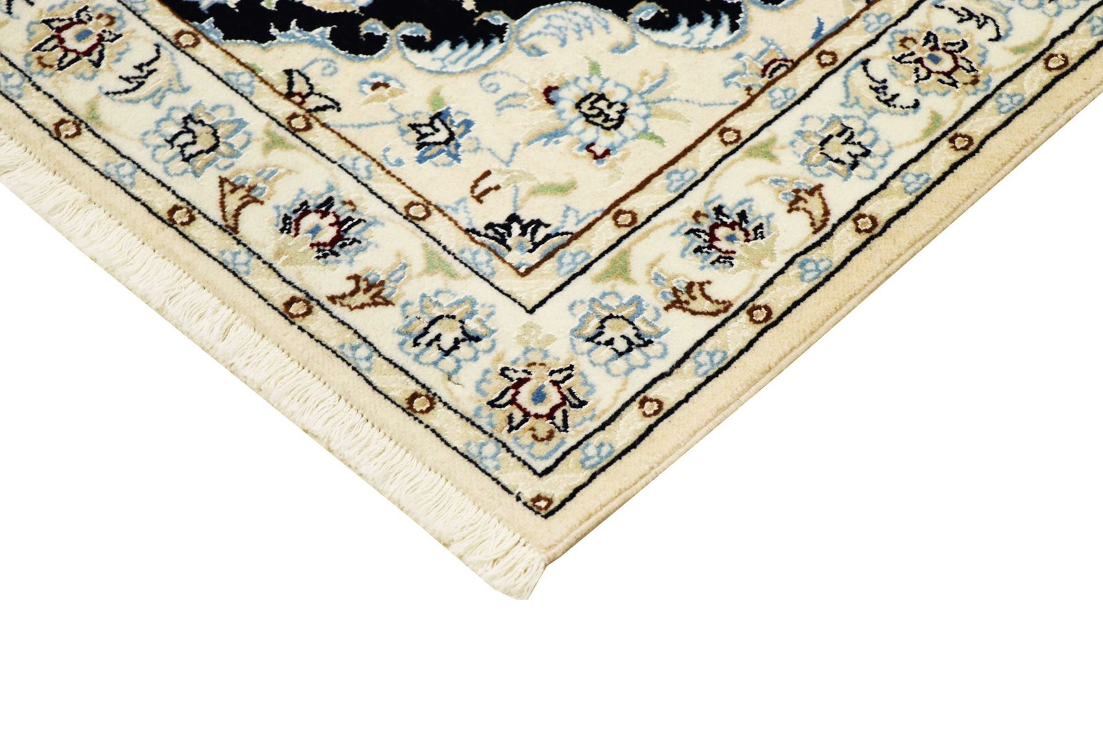 Nain, a charming city in southern Persia, is famous for its exquisite carpets, which are renowned for their high quality. Carpets from Nain are characterised by elegant colour combinations in white and light blue and are often decorated with fine silk. The city has a long tradition of carpet weaving and is known for its masters, who work with great precision and craftsmanship. These hand-knotted oriental carpets are unique works of art that captivate with their knot density, first-class materials and harmonious colours. The traditional patterns, passed down from generation to generation, lend every room a special atmosphere. Whether made of precious silk or soft cork wool, Nain carpets are true masterpieces of oriental craftsmanship.