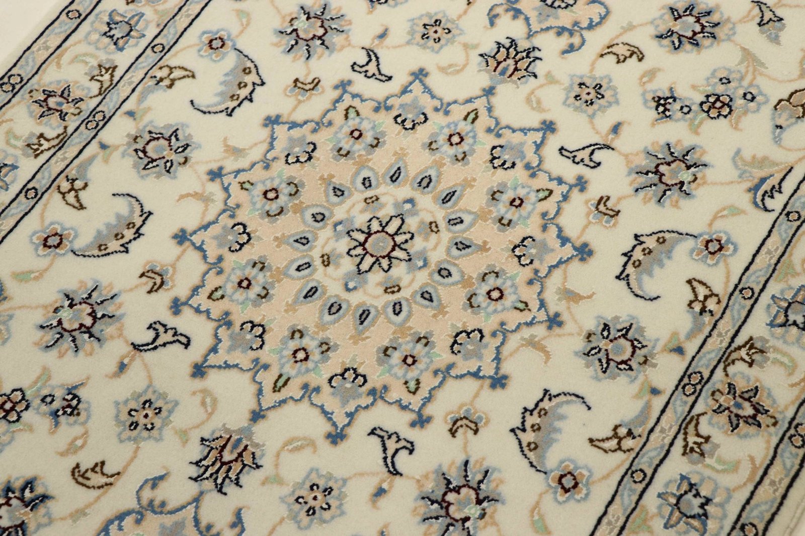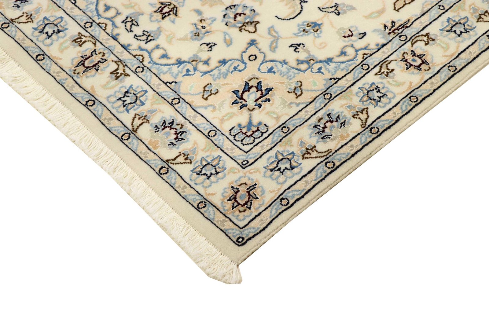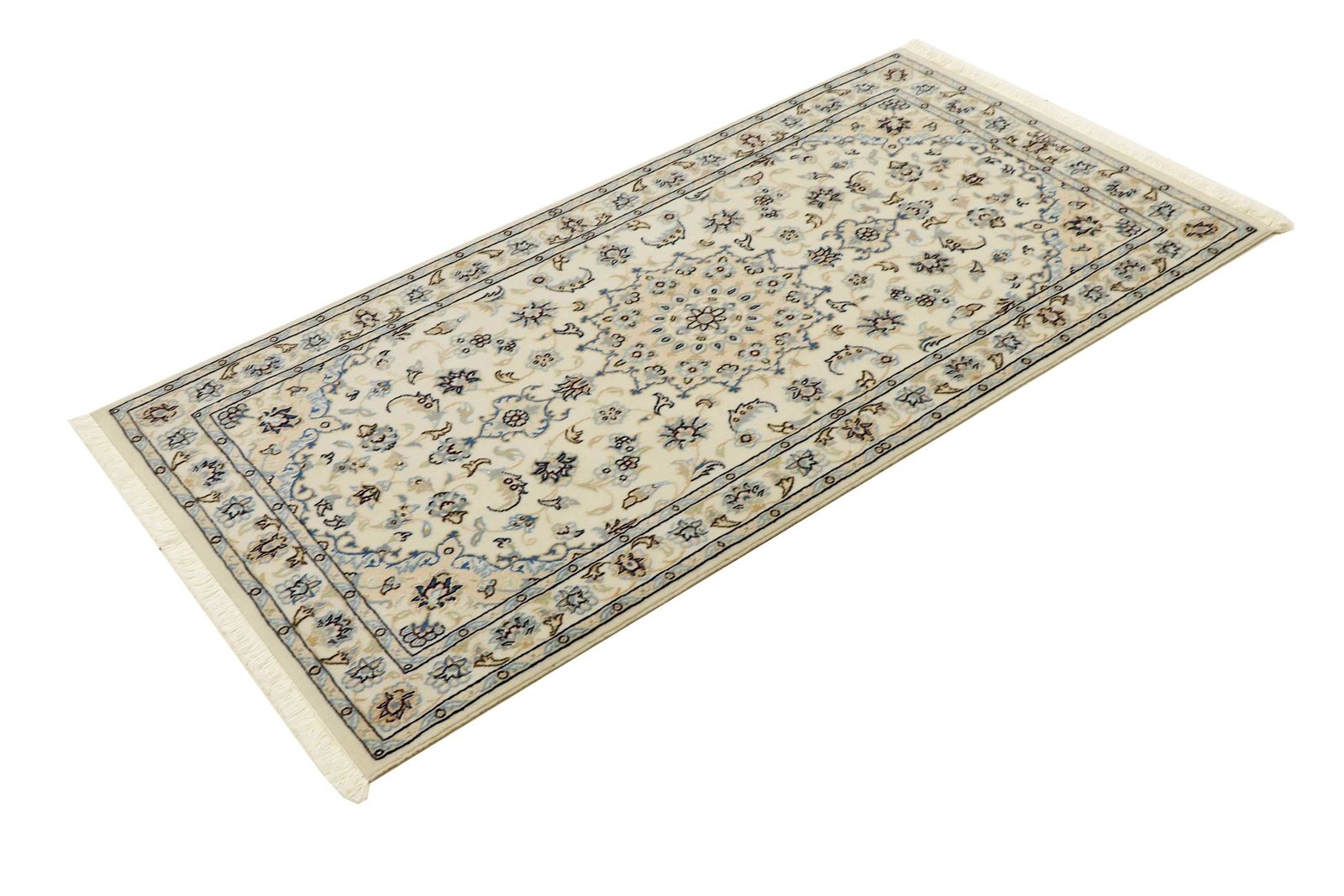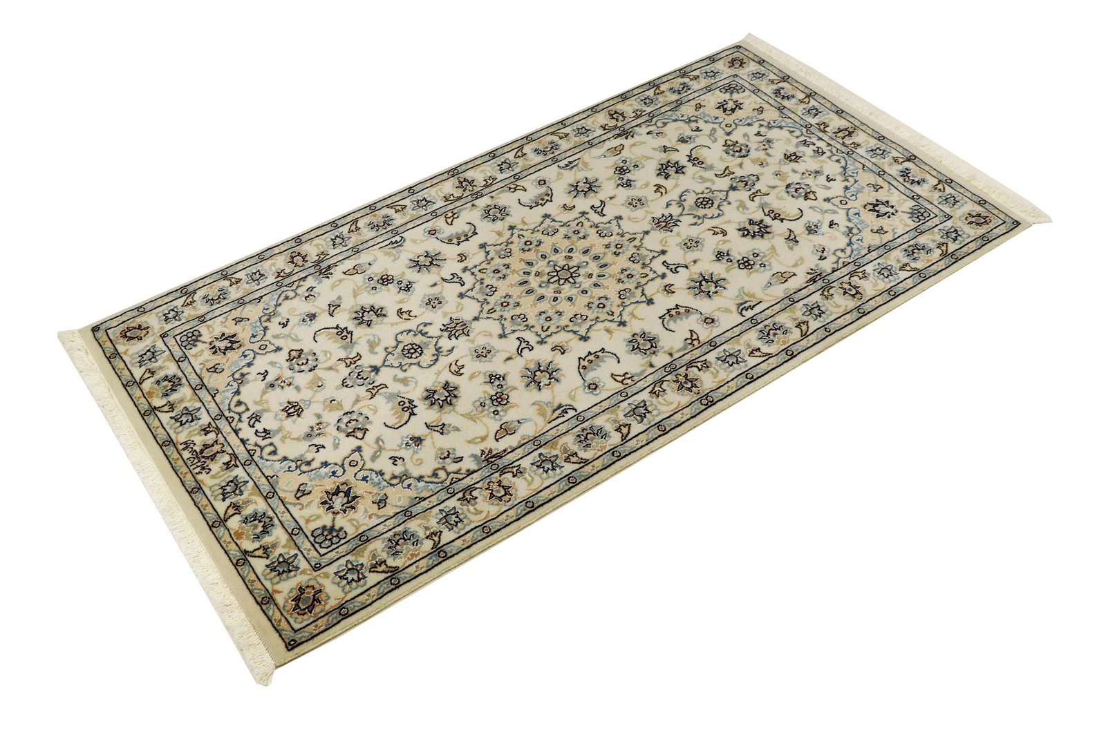 Nain, a charming city in southern Persia, is known for its exceptionally fine carpets. Nain carpets are particularly famous for their elegant colour scheme in white and light blue and the luxurious use of silk. The city has a long tradition of carpet weaving and was home to many highly esteemed masters known for their artistic and soothing oriental carpets. These classic oriental carpets are hand-knotted unique pieces that have retained their characteristic patterns over generations. The origin influences the manufacturing method, the material and the motifs of the carpets. Nain carpets are characterised by first-class materials, high knot density, harmonious colours and traditional designs. Whether made of precious silk or soft cork wool, a Nain carpet adds a special, luxurious touch to any room.