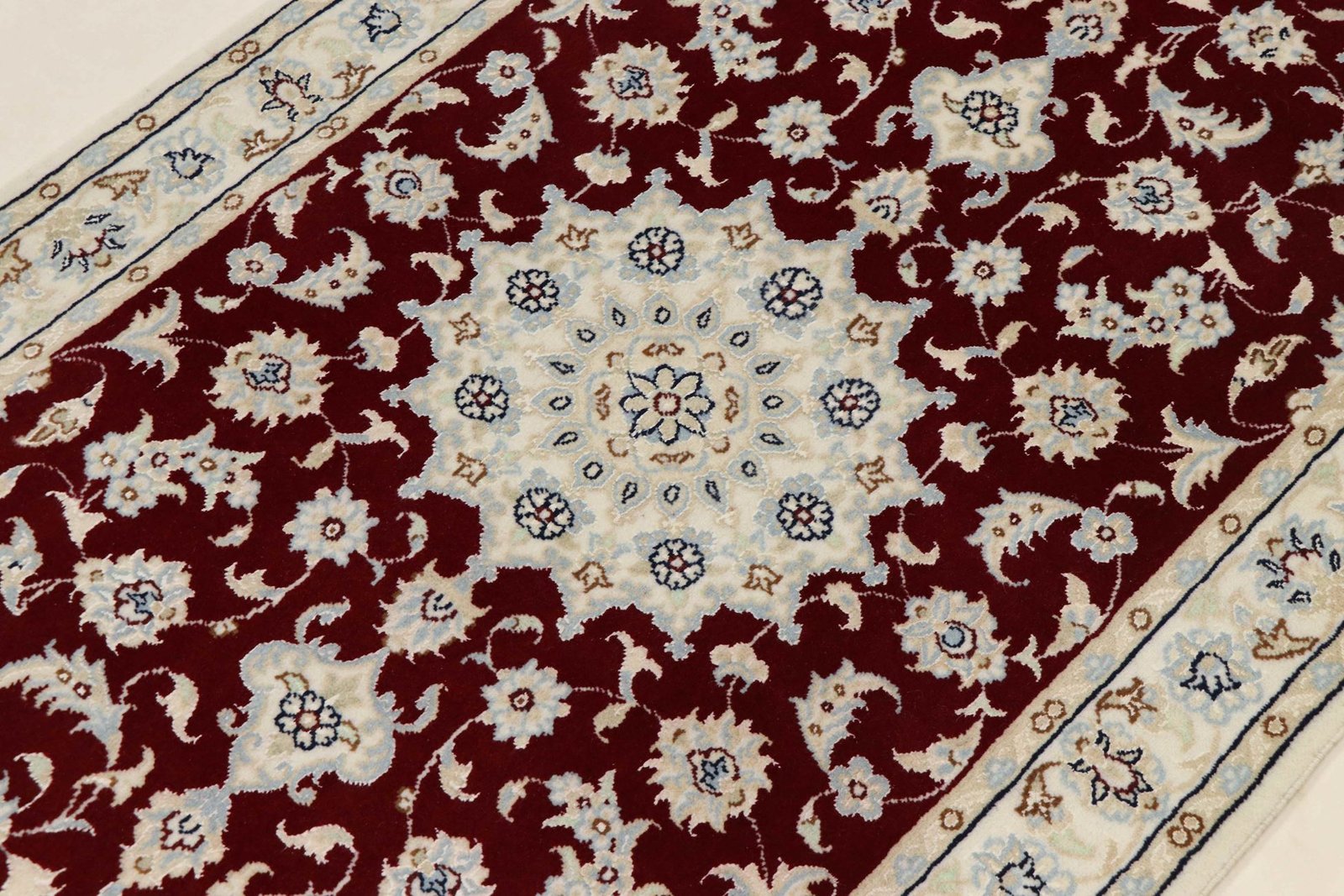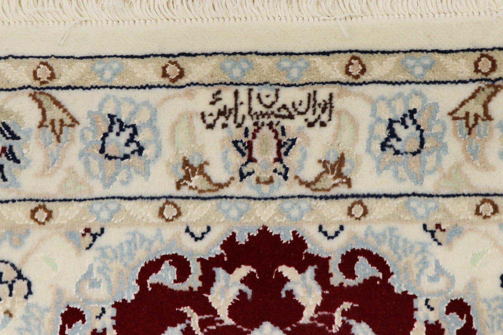 Nain, a charming city in southern Persia, is famous for its exquisite carpets, which offer both simple and very fine qualities. Carpets from Nain are particularly well known for their elegant colour combinations of white and light blue and the luxurious use of silk. The city has a rich tradition of carpet weaving and has been home to many renowned masters who are valued for their fine and artistic oriental carpets. Classic oriental carpets from Nain are hand-knotted, unique pieces whose patterns have been passed down through generations. These carpets are characterised by their first-class choice of materials, high knot density and unique colour harmonies. Whether made of precious silk or soft cork wool, a Nain carpet adds a special, luxurious touch to any room and reflects traditional design.