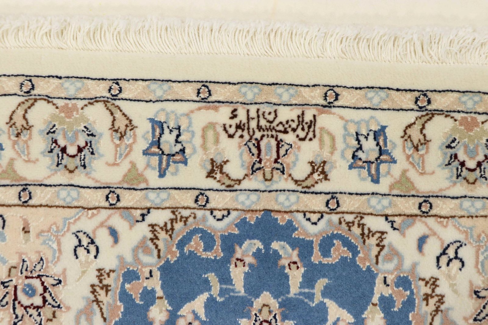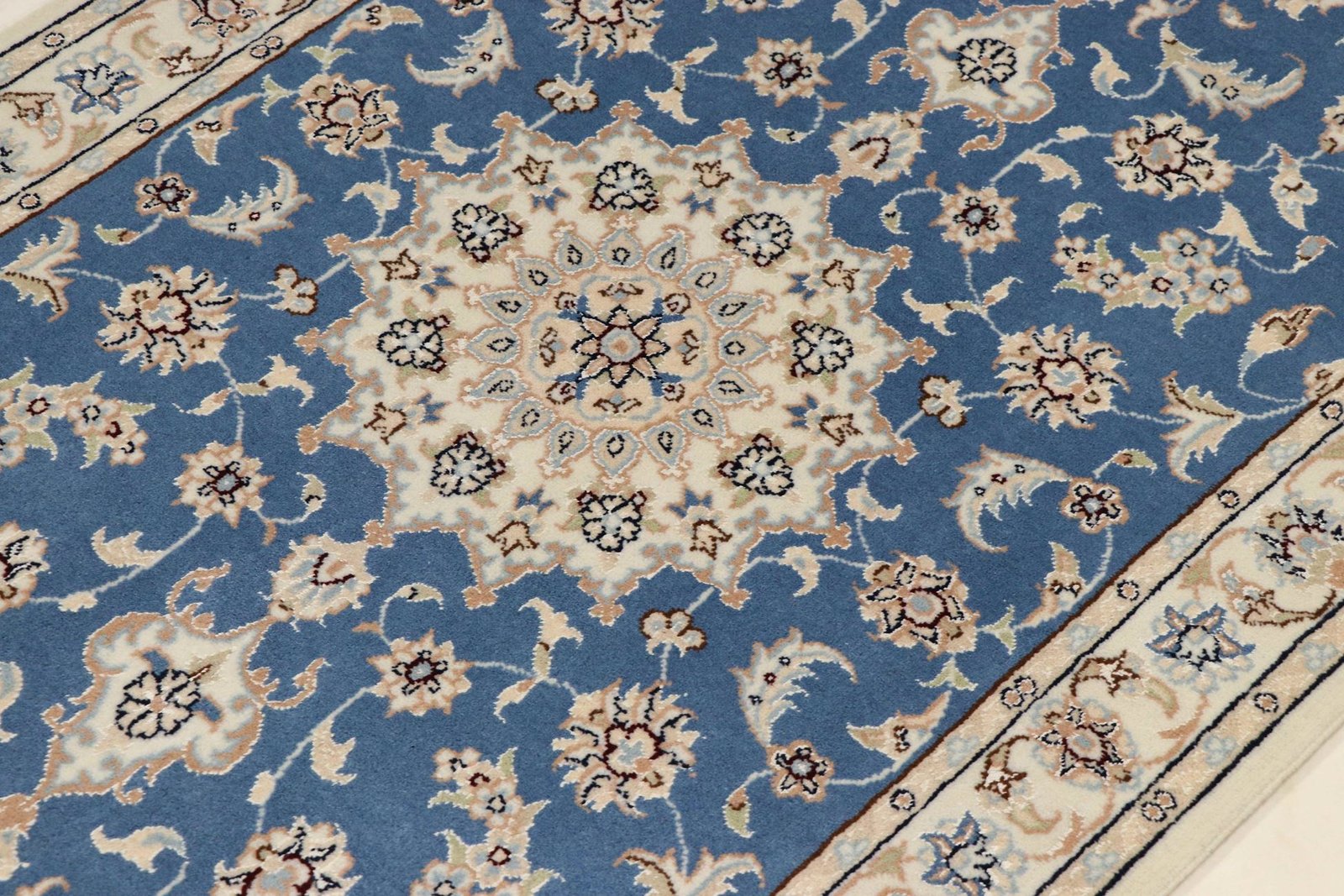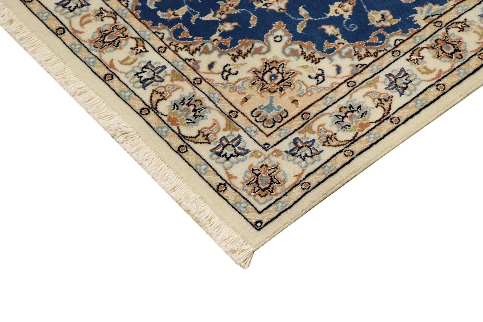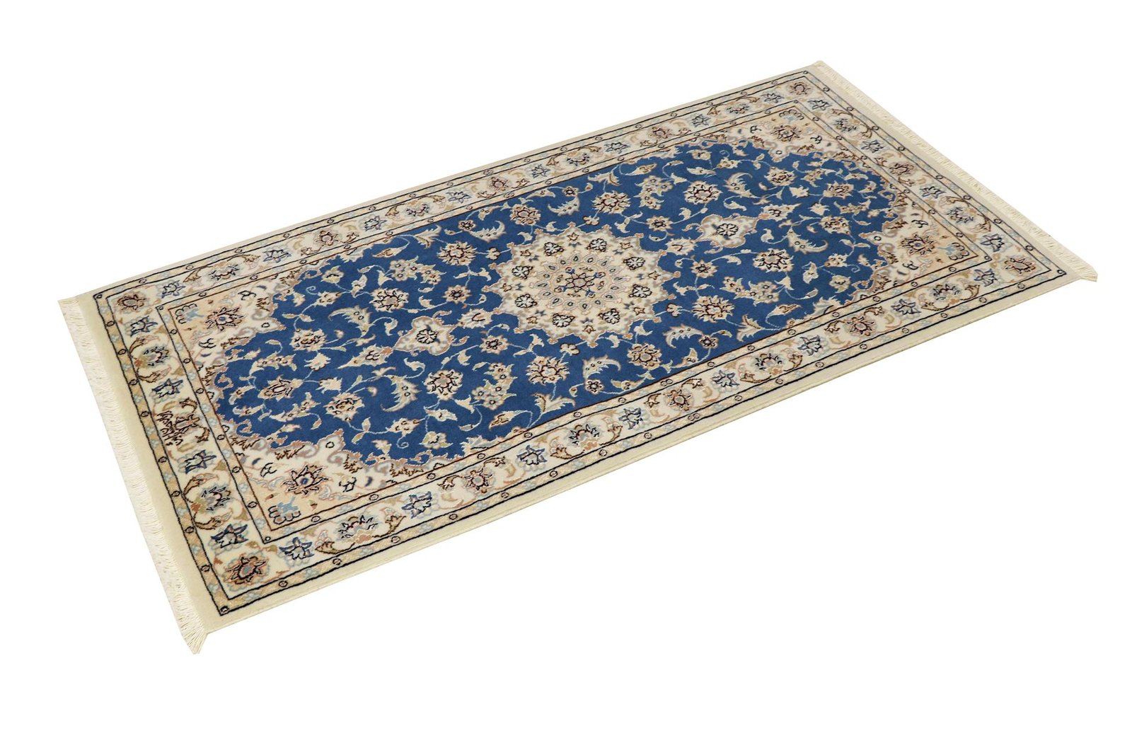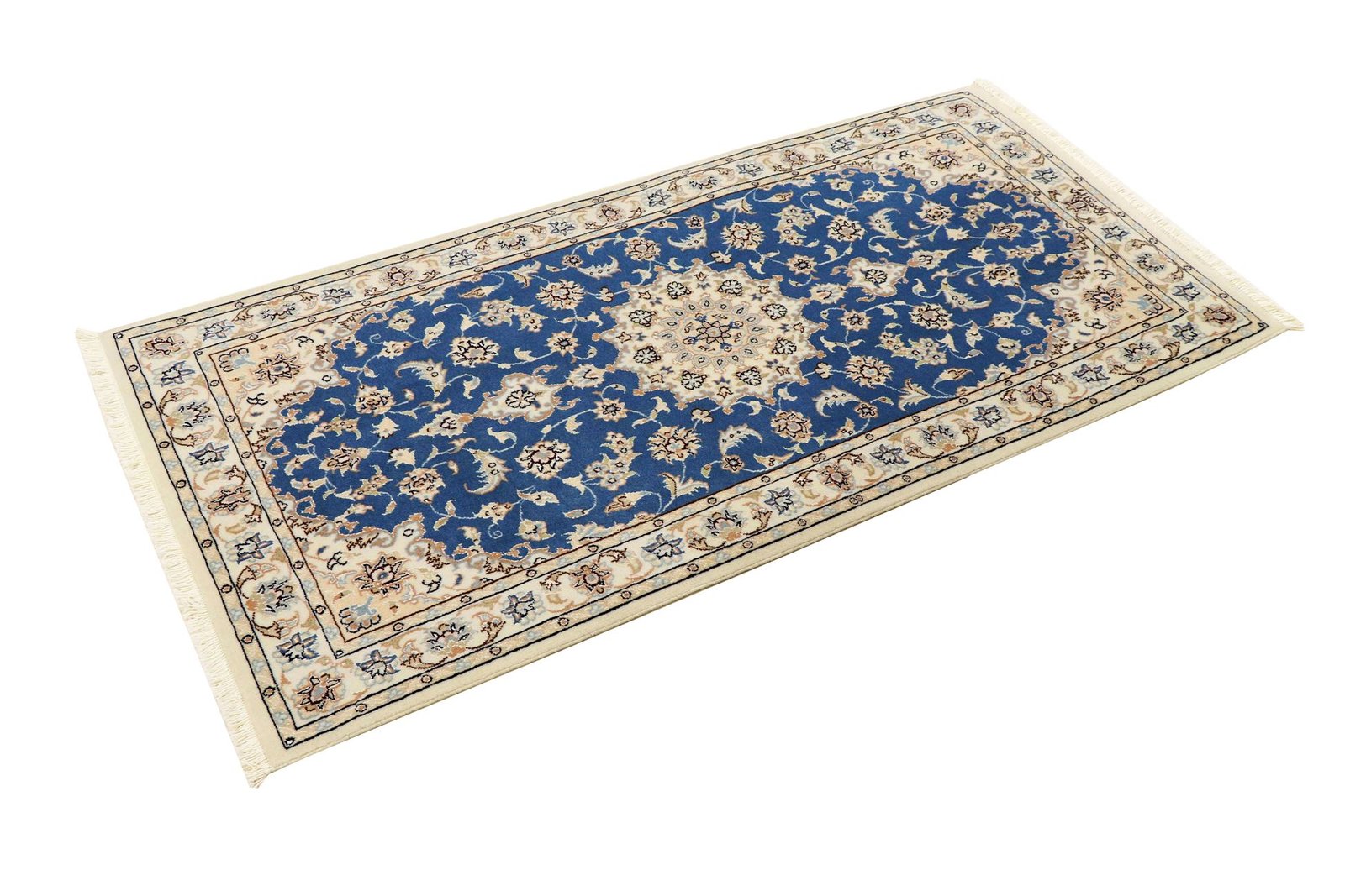 Nain, a charming city in southern Persia, is famous for its exquisite carpets. Carpets from Nain are characterised by an elegant colour palette of white and light blue and the use of fine silk. The city has a long tradition of carpet weaving and was home to numerous renowned masters known for their artistic and soothing oriental carpets. Classic oriental carpets are hand-knotted unique pieces whose typical patterns have been passed down through generations. These carpets reflect the heritage of their region of origin, which influences the manufacturing method, the material and the motifs. Particularly high-quality Persian carpets, named after their city of origin, impress with their first-class materials, high knot density, unique colour harmonies and traditional design. Whether made of precious silk or soft cork wool, a Nain carpet adds a special, luxurious touch to any room.