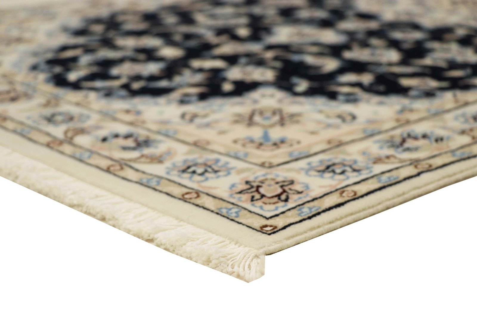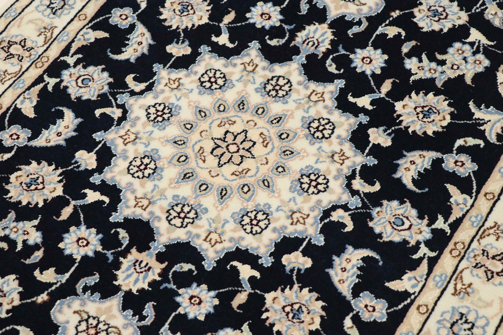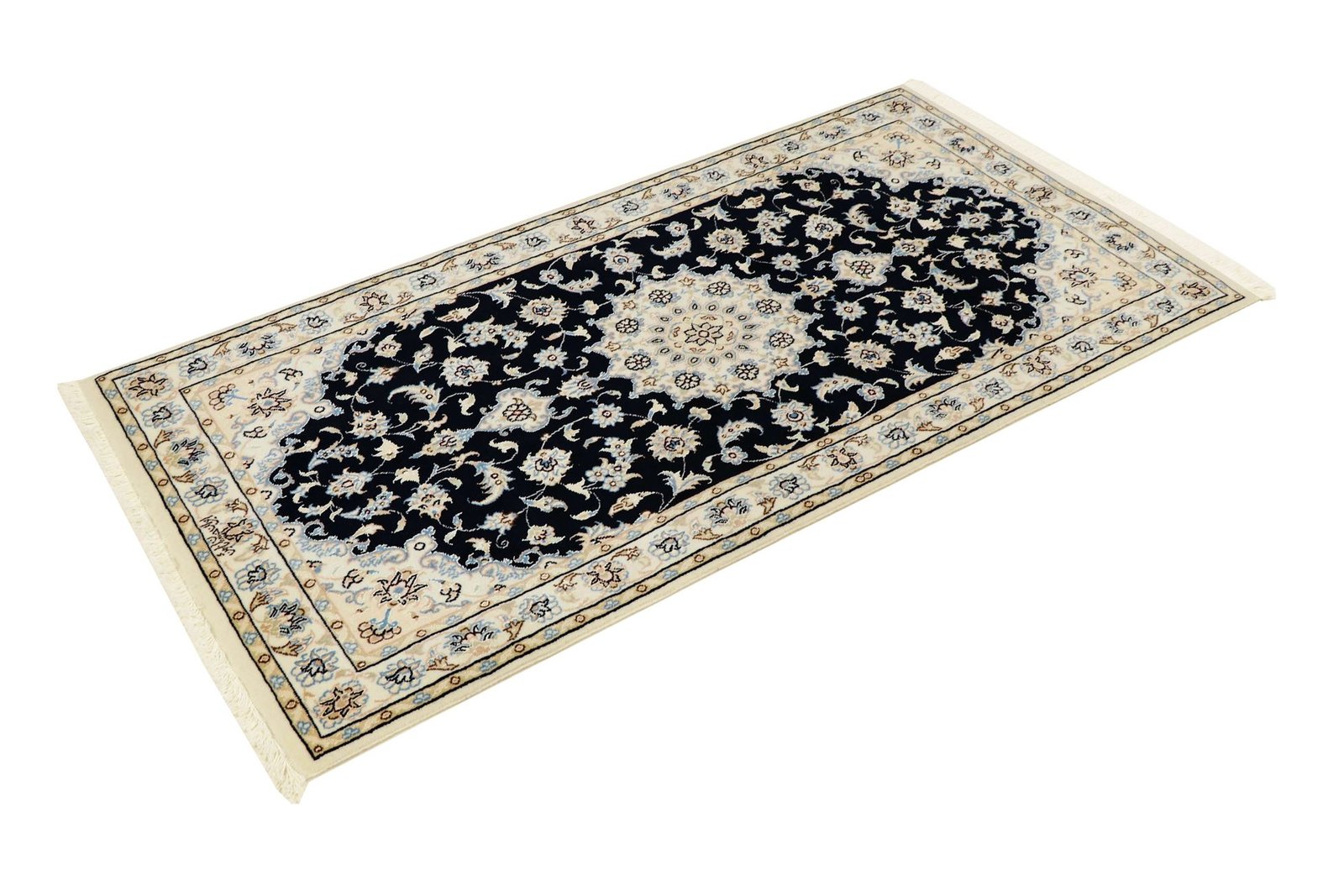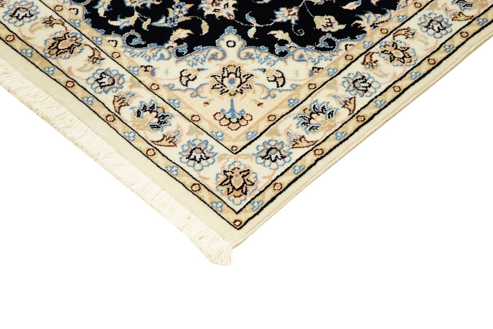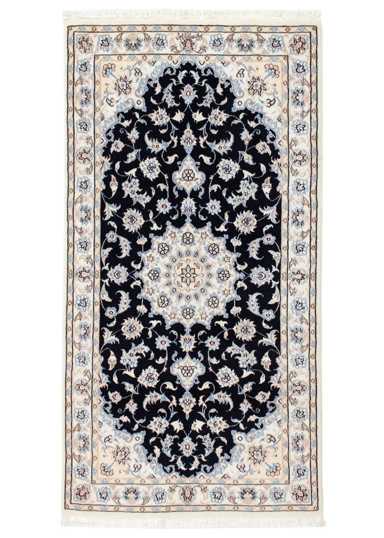 Nain, a picturesque town in southern Persia, is famous for its high-quality carpets, which range from simple to extremely fine quality. Carpets from Nain are characterised by elegant shades of white and light blue and the luxurious use of silk. This town has a long tradition of carpet weaving and was home to numerous renowned masters known for their exquisite craftsmanship. Classic oriental carpets from Nain are unique, hand-knotted pieces whose typical patterns have been passed down through generations. The origin influences the manufacturing method, the material and the motifs. Particularly high-quality Persian carpets, named after their city of origin, impress with their first-class materials, high knot density, unique colour harmonies and traditional designs. Whether made of precious silk or soft cork wool, a Nain carpet adds a special, luxurious touch to any room.