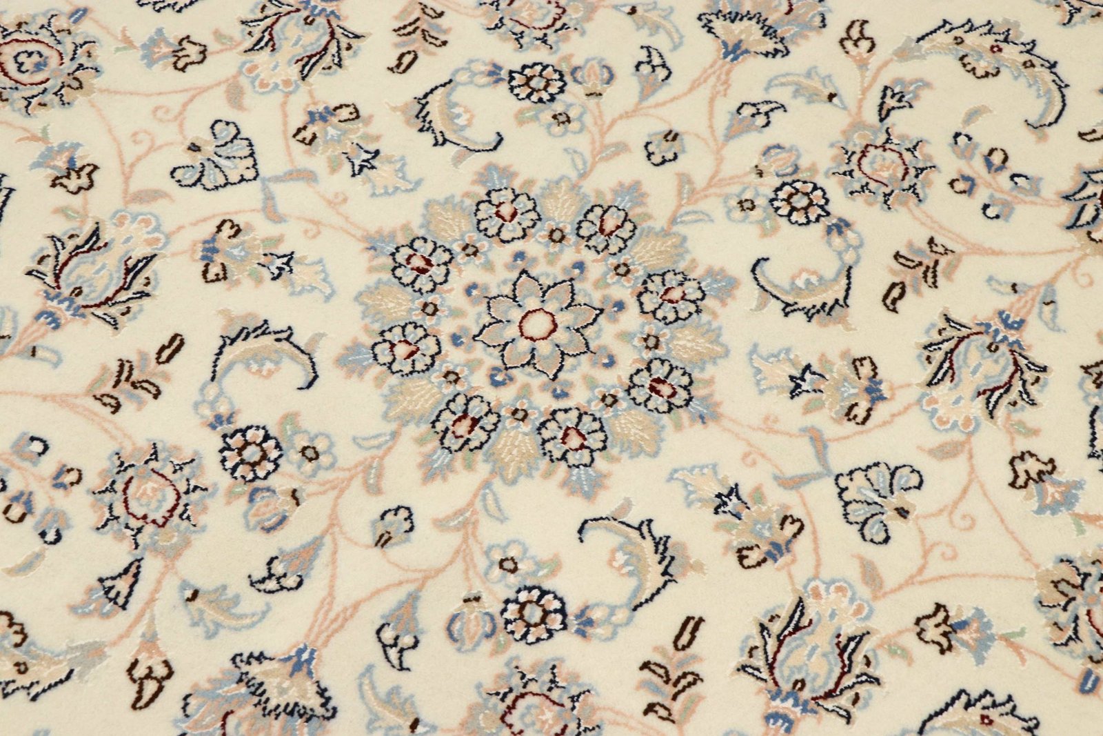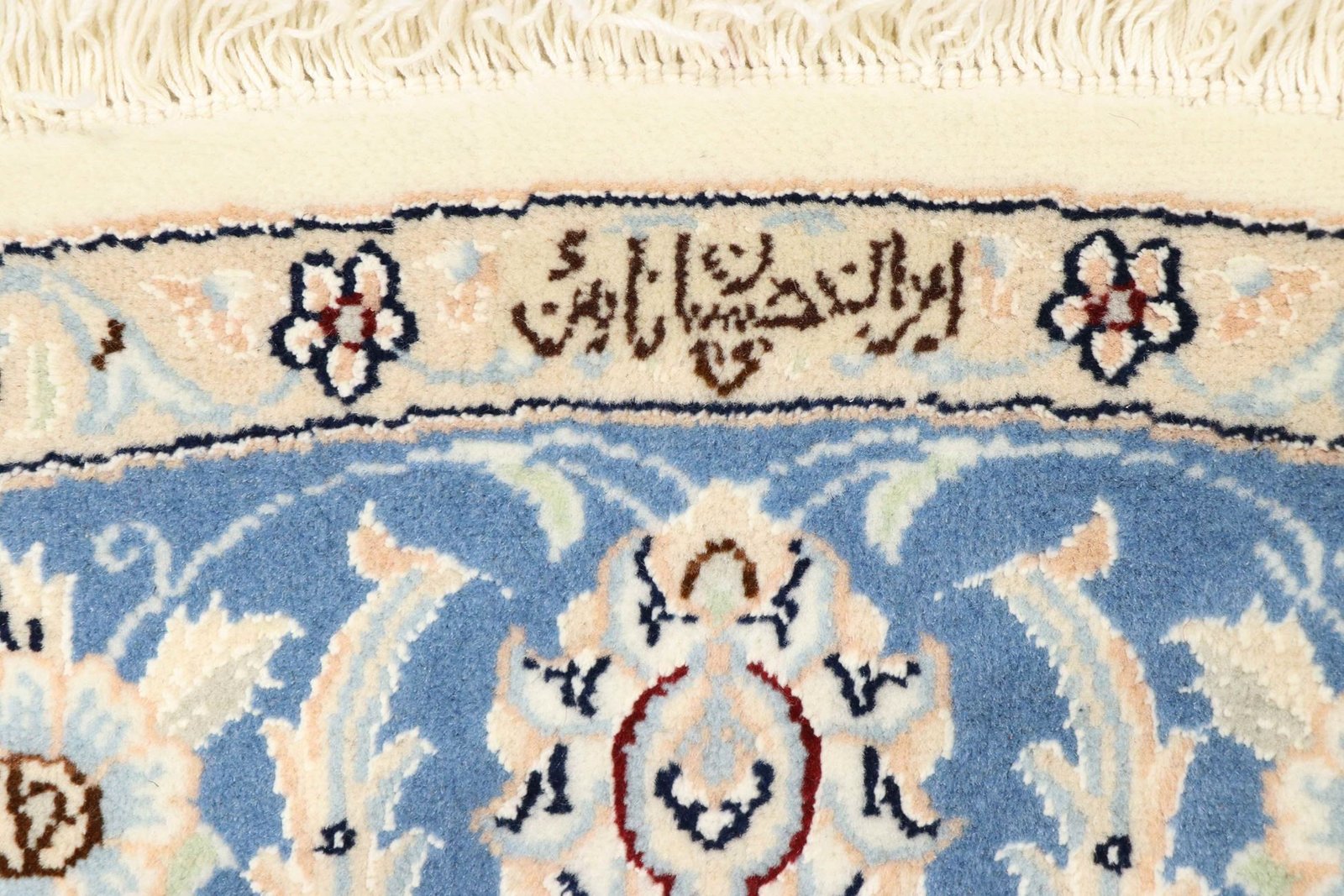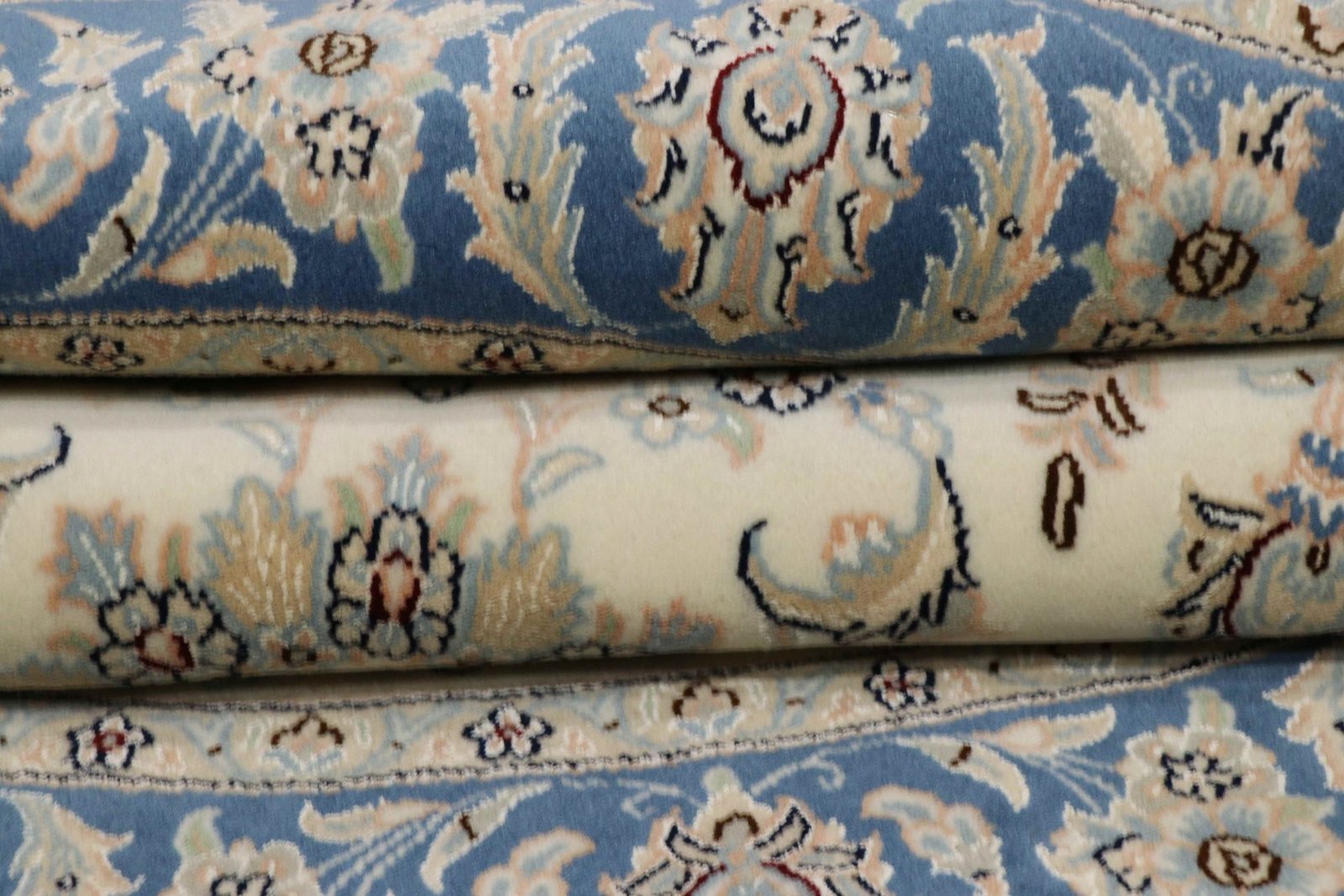 Nain is a picturesque city in southern Persia, known for its exquisite carpets. Nain carpets are particularly famous for their elegance in white and light blue and the luxurious use of silk. This town has a long tradition of carpet weaving and was home to many esteemed masters known for their fine and artistic oriental carpets. Classic oriental carpets from Nain are hand-knotted unique pieces whose typical patterns have been passed down through generations. The origin influences the manufacturing method, the material and the motifs of these carpets. High-quality Persian carpets, named after their city, are characterised by first-class materials, high knot density, unique colour harmonies and traditional design. Whether fine silk or soft cork wool – a Nain carpet adds a special touch to any room.