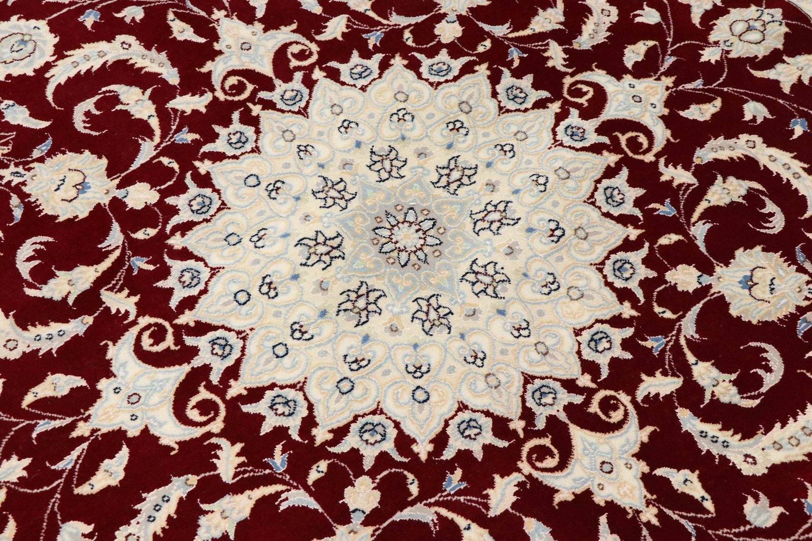 Nain, a picturesque town in southern Persia, is known for its exquisite carpets, which range from simple to fine quality. Particularly noteworthy are the Nain carpets, which captivate with their elegant white and light blue tones and the luxurious use of silk. The town has a long tradition of carpet weaving and is home to many renowned masters who are known for their detailed and soothing oriental carpets. Classic oriental carpets are hand-knotted unique pieces whose characteristic patterns have been passed down through generations. The origin influences the manufacture, material and motifs of the carpets, especially in the case of high-quality Persian carpets, which are named after their city of origin. These works of art are characterised by first-class materials, high knot density, unique colour harmonies and traditional designs. Whether made of precious silk or soft cork wool, an oriental carpet adds a special touch to any room.