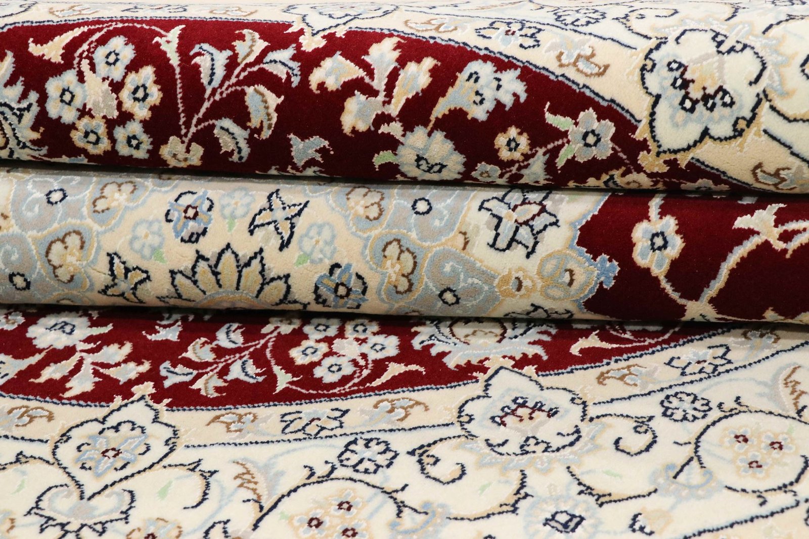 Nain, a charming city in southern Persia, is known for its exquisite carpets, which captivate with their unique combination of simplicity and sophistication. Carpets from Nain are characterised by elegant colours such as white and light blue and often use luxurious silk. The city has a long tradition of carpet weaving and is home to many renowned masters who are valued for their fine and soothing oriental carpets. Classic oriental carpets from Nain are hand-knotted unique pieces whose patterns have been passed down through generations. The origin influences the manufacturing method, the material and the motifs of the carpets, which is particularly the case with high-quality Persian carpets. These works of art are characterised by first-class materials, high knot density, harmonious colours and traditional designs. A Nain carpet adds a luxurious and special touch to any room.