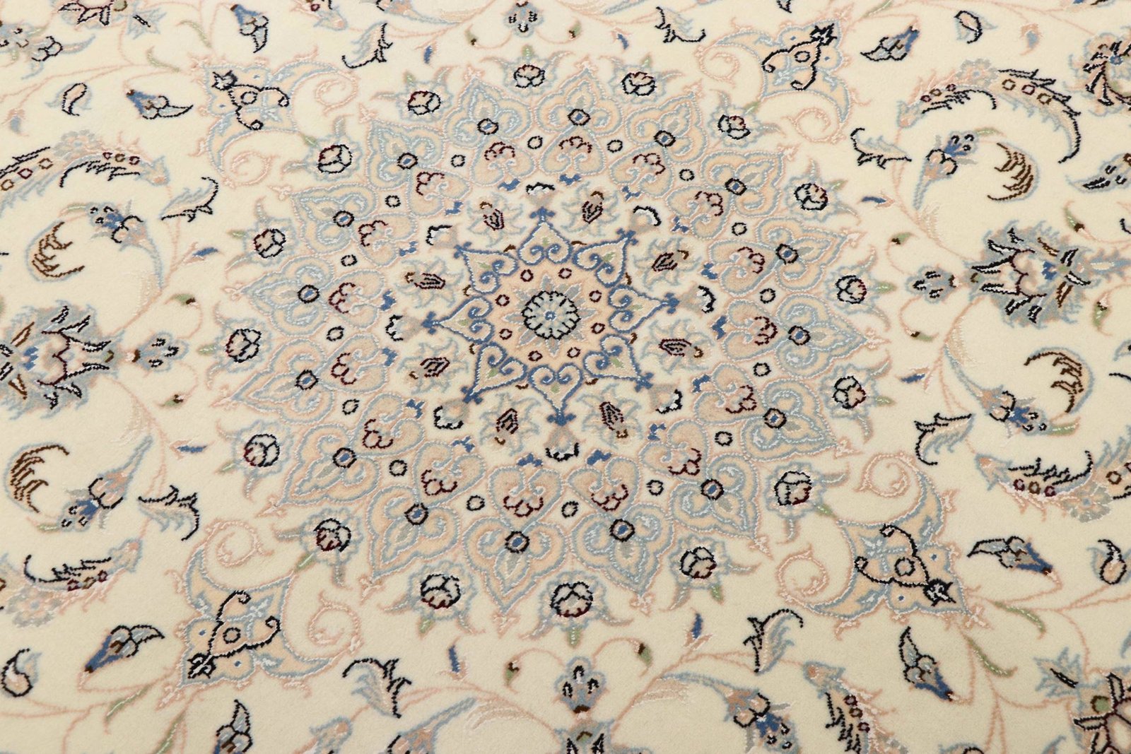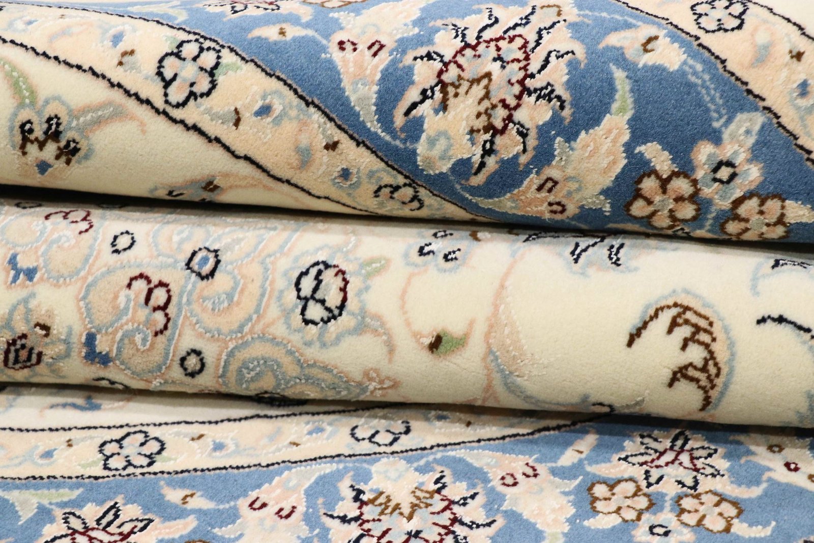 Nain, a picturesque city in southern Persia, is famous for its exquisite carpets, which stand out for their fine quality and elegant designs. Carpets from Nain are known for their noble colours in white and light blue and the luxurious use of silk. The town has a long tradition of carpet weaving and was home to many renowned masters who are valued for their hand-knotted works of art. Classic oriental carpets from Nain are unique pieces whose patterns are passed down from generation to generation. The region of origin influences the manufacturing method, material and motifs of these carpets, especially in the case of high-quality Persian carpets. These carpets are characterised by first-class materials, high knot density, harmonious colours and traditional designs. A Nain carpet adds a special and luxurious touch to any room.