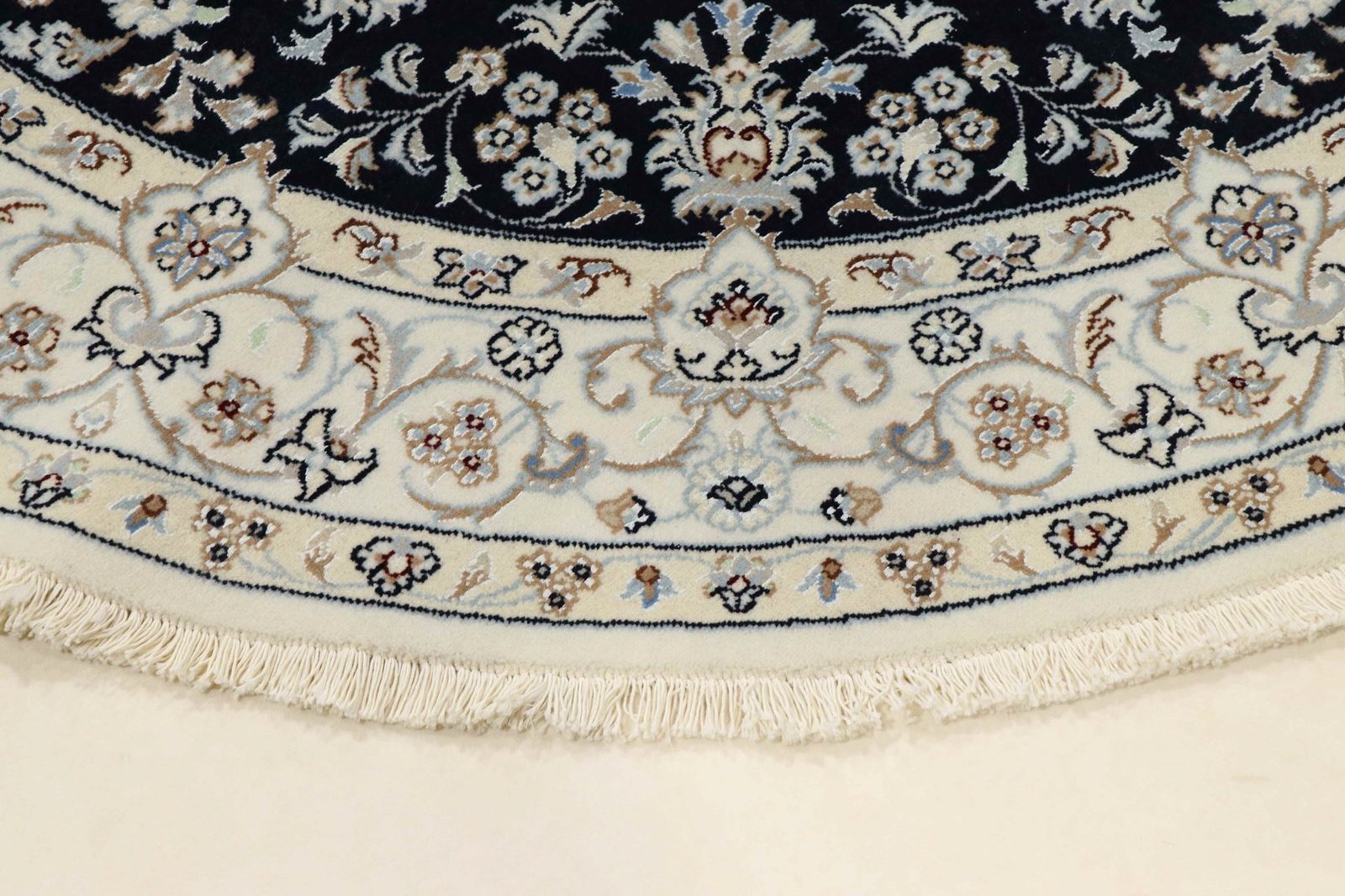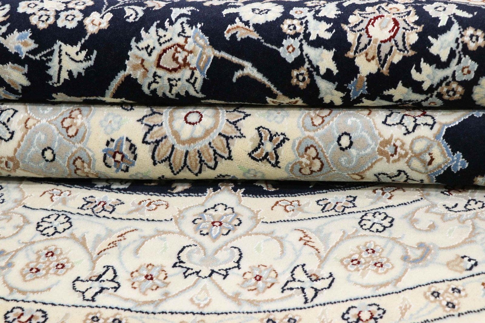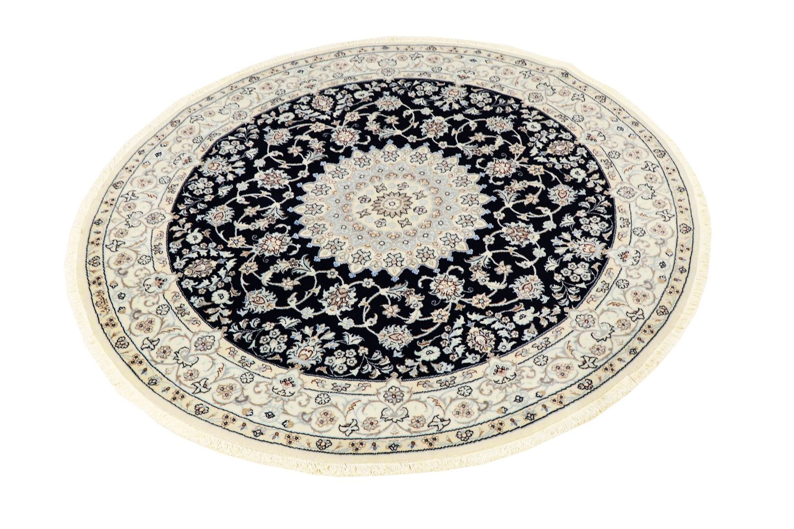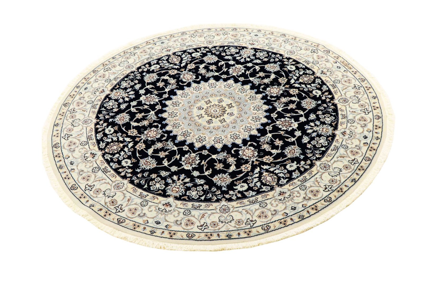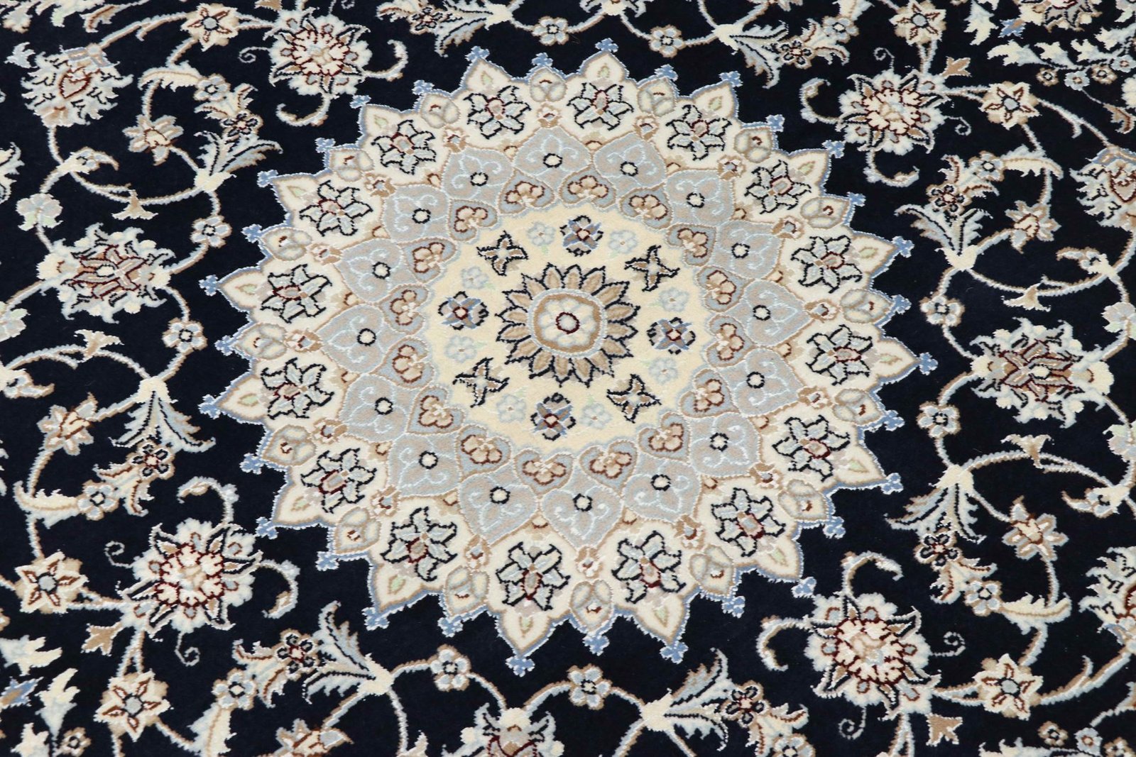 Nain, a picturesque town in southern Persia, is known for its fine and exquisite carpets. Carpets from Nain are characterised by their elegant colours in white and light blue and the luxurious use of silk. This town has a long tradition of carpet weaving and was home to many famous masters known for their exquisite craftsmanship and soothing, beautiful oriental carpets. Classic oriental carpets from Nain are hand-knotted unique pieces whose typical patterns have been passed down through generations. The manufacturing method, material and motifs of a carpet are strongly influenced by its region of origin. Particularly high-quality Persian carpets, named after their city of origin, impress with their first-class materials, high knot density, unique colour harmonies and traditional designs. A Nain carpet adds a special, luxurious touch to any room.
