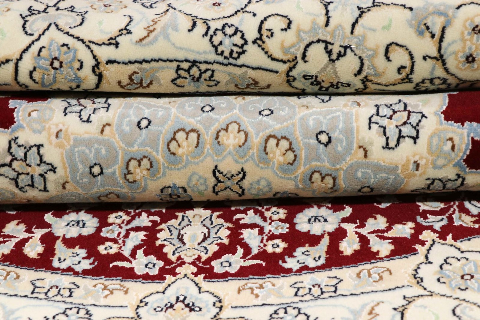 Nain, a charming city in southern Persia, is famous for its exquisite carpets. Nain carpets are known for their elegant combination of white and light blue and the sophisticated use of silk. The city has a long tradition of carpet weaving and was home to numerous famous masters who are renowned for their fine and artistic oriental carpets. Classic oriental carpets from Nain are hand-knotted unique pieces whose characteristic patterns have been passed down through generations. The manufacturing method, material and motifs reflect the origin of the carpet. Particularly noteworthy are the high-quality Persian carpets, which impress with their first-class materials, high knot density, unique colour harmonies and traditional designs. Whether made of precious silk or soft cork wool, a Nain carpet adds a special, luxurious touch to any room.
