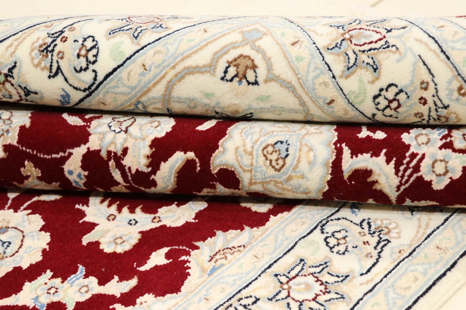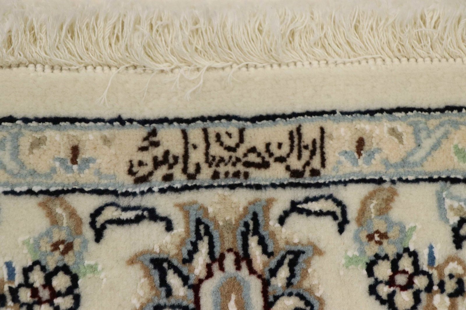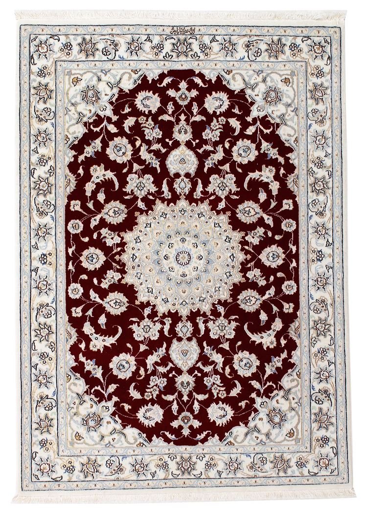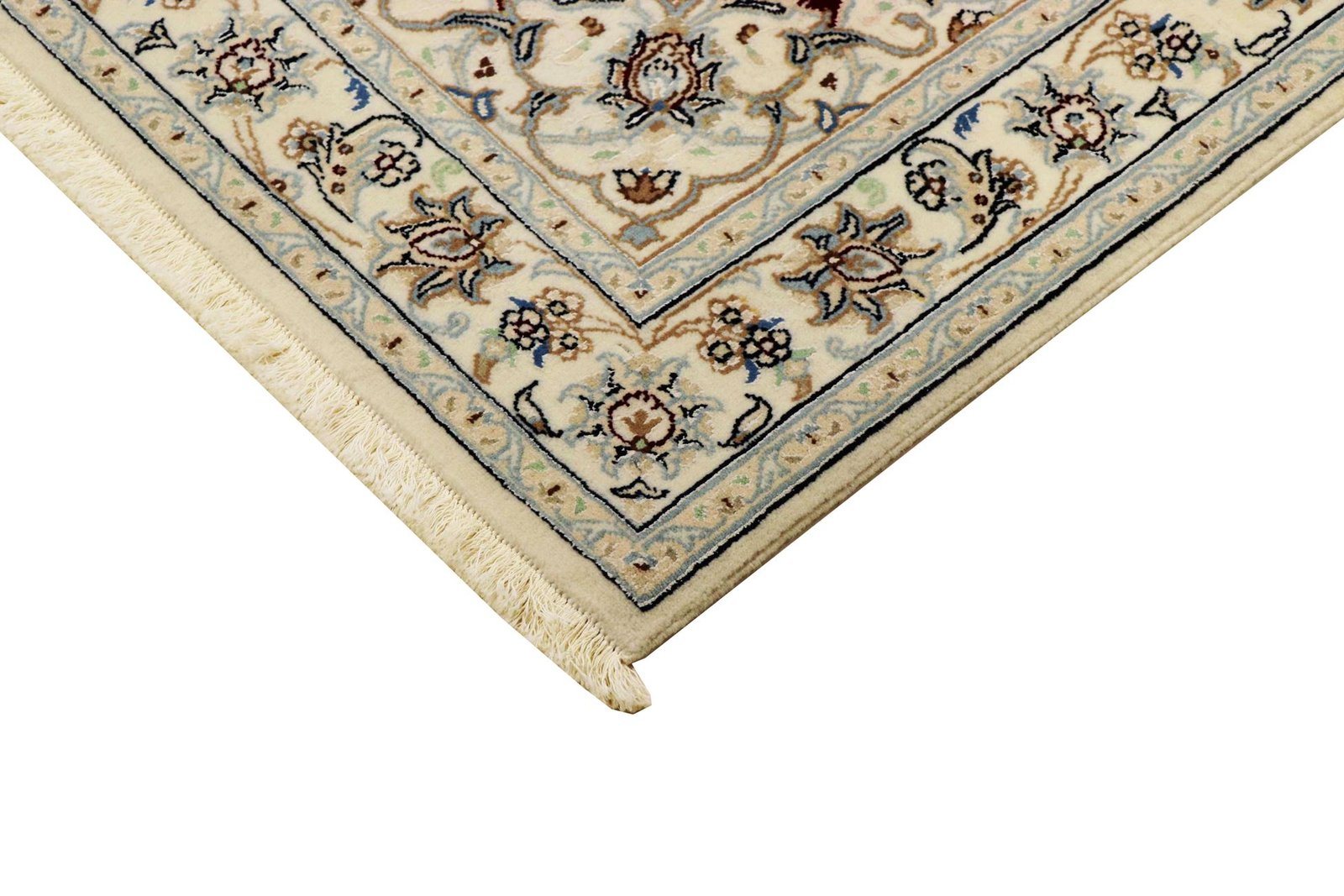 Nain, a picturesque town in southern Persia, is famous for its exquisite carpets. Carpets from Nain are particularly prized for their elegant combination of white and light blue and the use of fine silk. The town has a long tradition of carpet weaving and has been home to many renowned masters known for their artistic and detailed oriental carpets. Classic oriental carpets from Nain are hand-knotted, unique pieces whose patterns have been passed down through generations. These high-quality Persian carpets are characterised by first-class materials, high knot density, unique colour harmonies and traditional designs. Whether made of precious silk or soft cork wool, a Nain carpet adds a special, luxurious touch to any room.