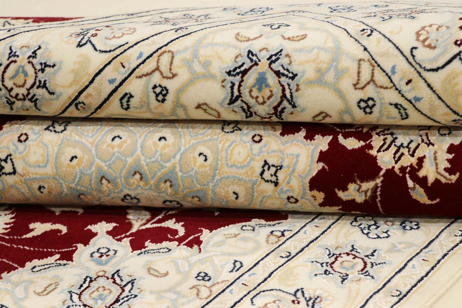 Nain, a charming city in southern Persia, is famous for its fine carpets, which captivate with their high quality and elegant designs. Carpets from Nain are particularly well known for their noble shades of white and light blue and the luxurious use of silk. The city has a long tradition of carpet weaving and is home to many renowned masters who are valued for their artistic and soothing oriental carpets. Classic oriental carpets from Nain are hand-knotted unique pieces whose characteristic patterns are passed down from generation to generation. They are characterised by first-class materials, high knot density and harmonious colour combinations. Whether made of precious silk or soft cork wool, a Nain carpet adds a special, luxurious touch to any room.