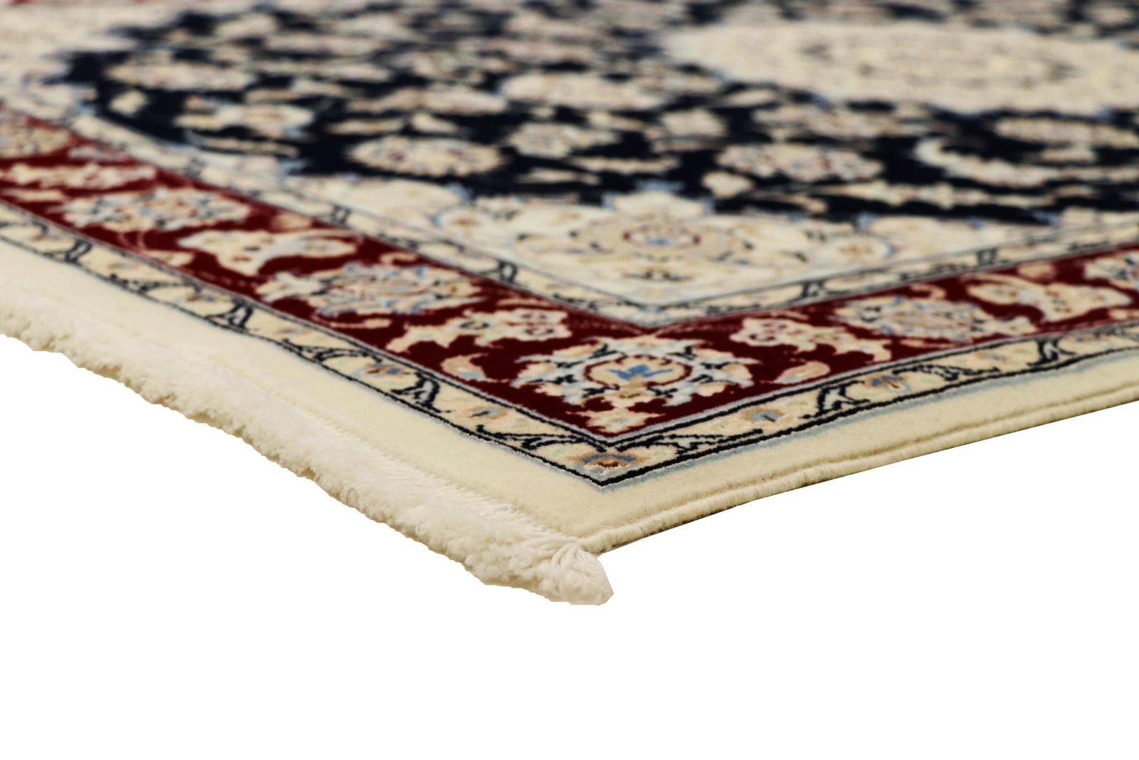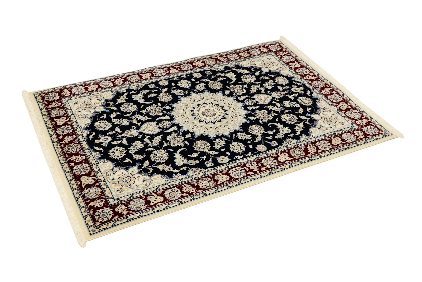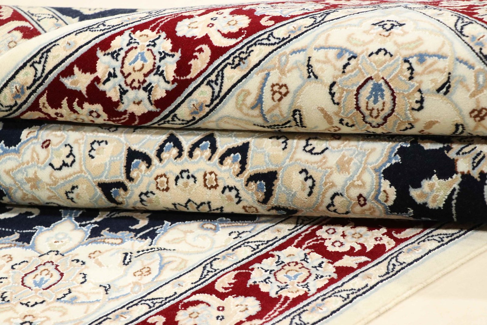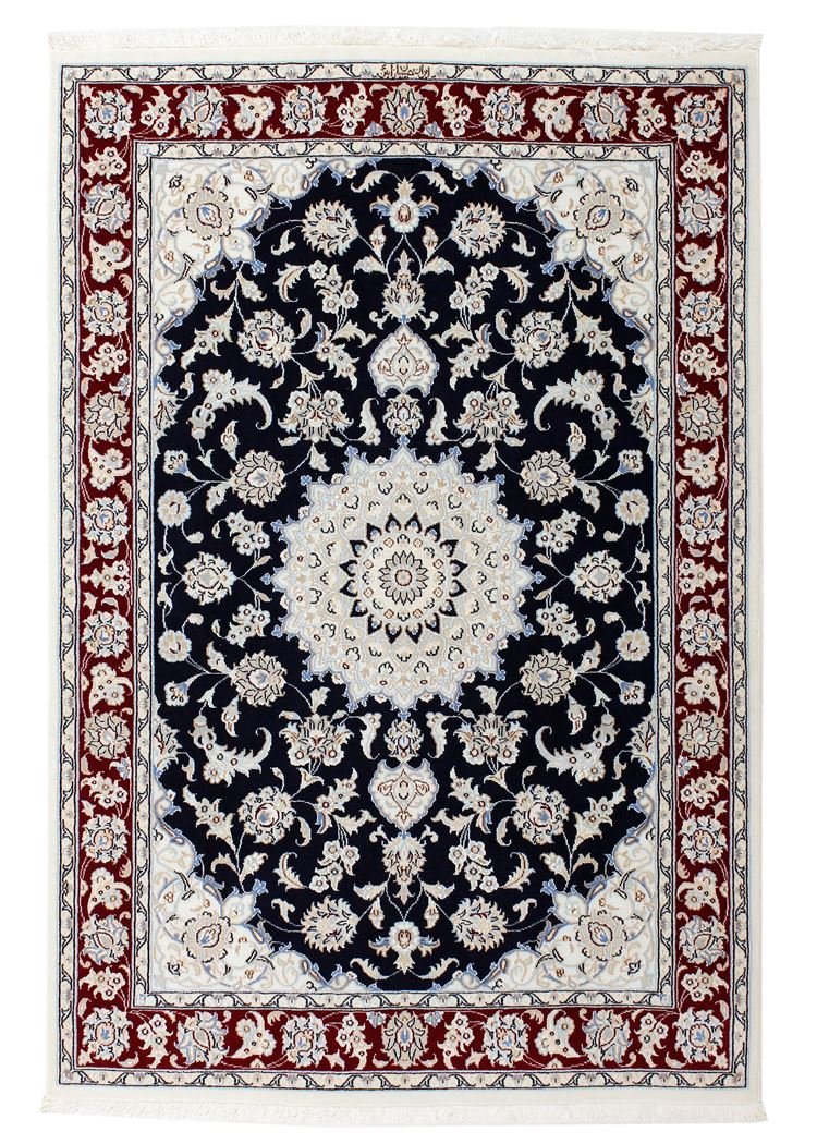 Nain, a picturesque town in southern Persia, is famous for its exquisite carpets, which are renowned for their high quality. Carpets from Nain are characterised by elegant colours such as white and light blue, as well as the luxurious use of silk. The town has a rich tradition of carpet weaving and has been home to many renowned masters known for their artistic and fine oriental carpets. Classic oriental carpets from Nain are hand-knotted, unique pieces whose patterns have been passed down through generations. They are characterised by first-class materials, high knot density and unique colour harmonies. Whether made of precious silk or soft cork wool, a Nain carpet adds a special, luxurious touch to any room.