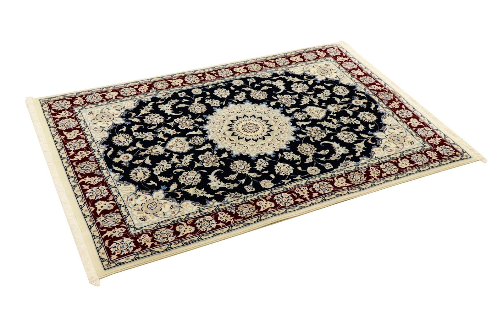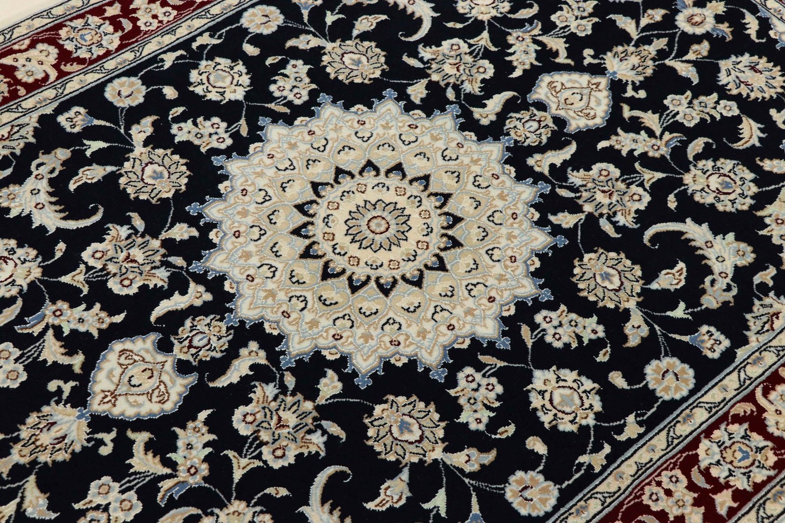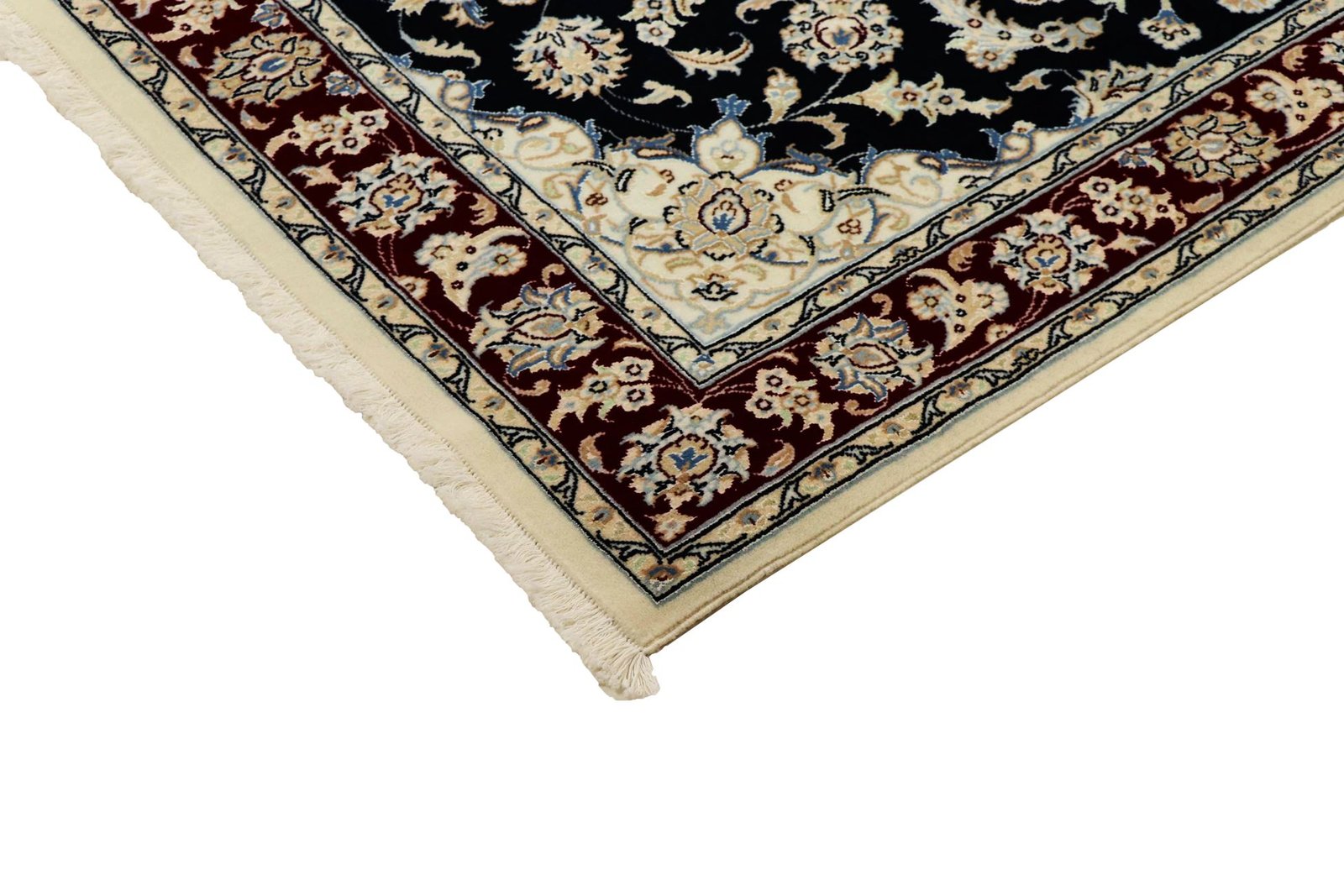 Nain, a picturesque town in southern Persia, is famous for its exquisite carpets, which are renowned for their high quality. Carpets from Nain are characterised by elegant colours such as white and light blue, as well as the luxurious use of silk. The town has a rich tradition of carpet weaving and has been home to many renowned masters known for their artistic and fine oriental carpets. Classic oriental carpets from Nain are hand-knotted, unique pieces whose patterns have been passed down through generations. They are characterised by first-class materials, high knot density and unique colour harmonies. Whether made of precious silk or soft cork wool, a Nain carpet adds a special, luxurious touch to any room.