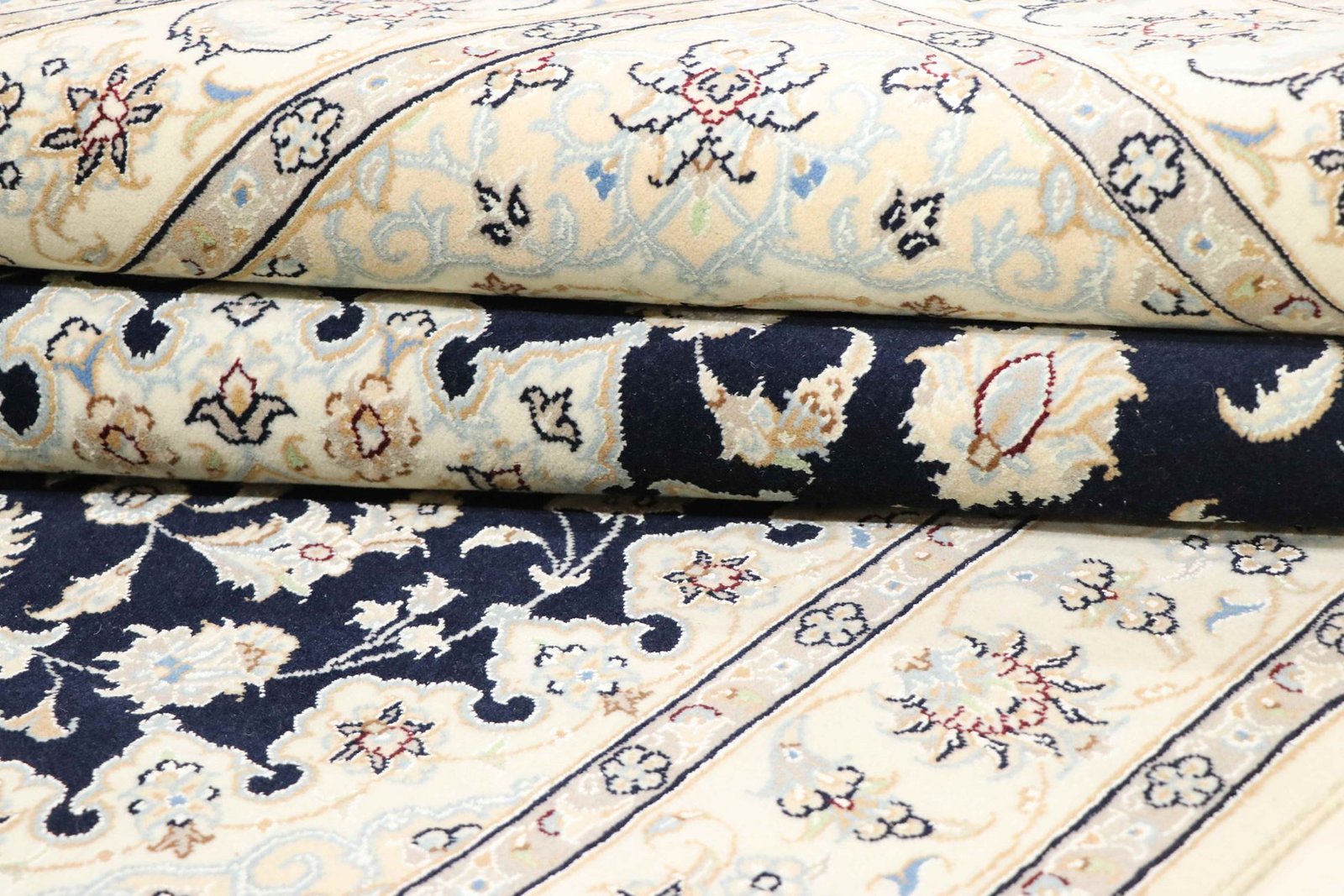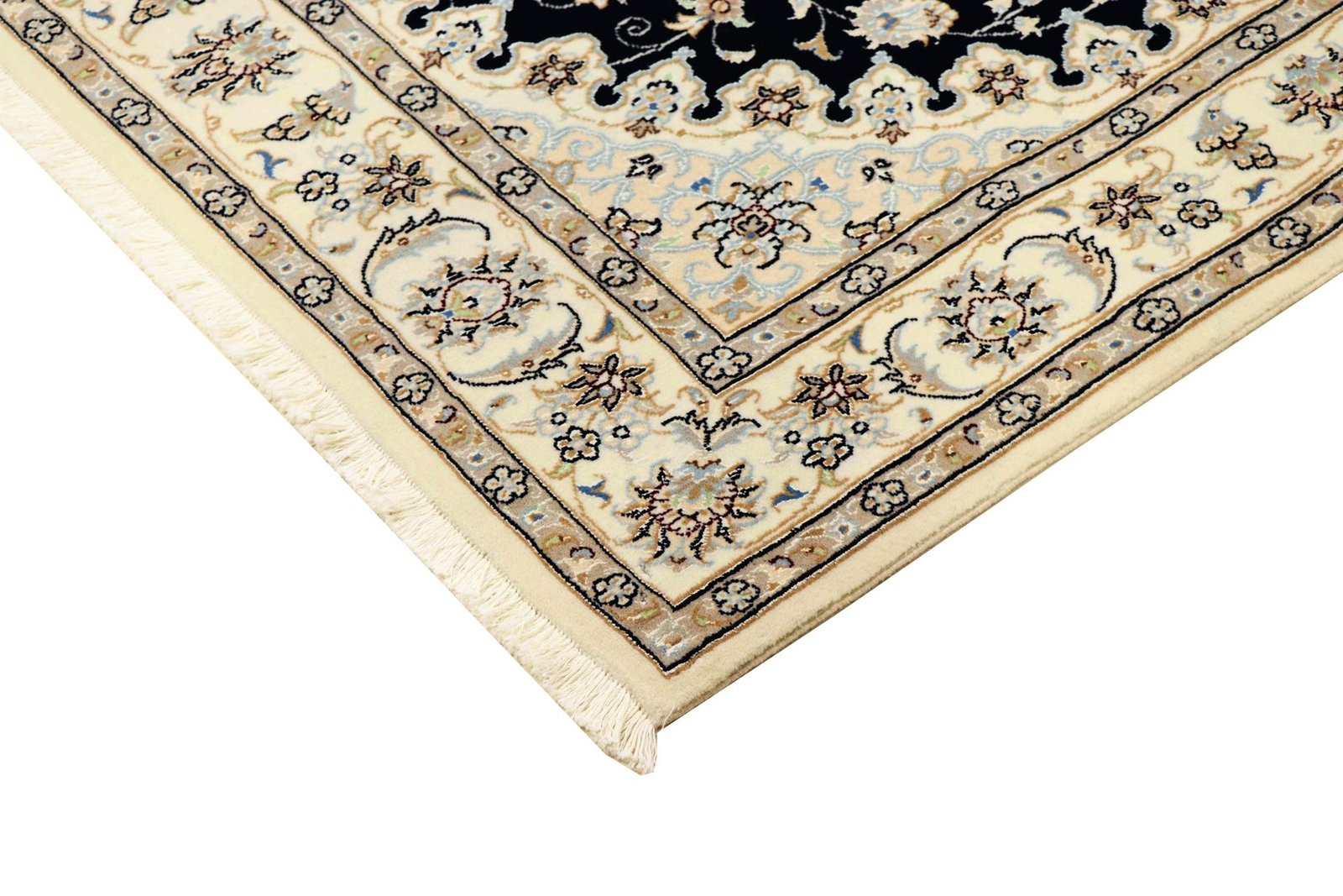 Nain is a charming city in southern Persia, known for its exquisite carpets. These carpets are characterised by their fine materials, such as silk, and the dominant colours of white and light blue. The town has produced numerous renowned master weavers whose works are famous for their fineness and beauty. Classic oriental carpets from Nain are hand-knotted unique pieces whose typical patterns are passed down from generation to generation. The origin influences the manufacturing method, the material and the motifs of the carpets. Particularly high-quality Persian carpets, named after their city of origin, impress with their first-class materials, high knot density and unique colour harmonies. Whether made of silk or soft cork wool, a Nain carpet adds a special touch to any room.