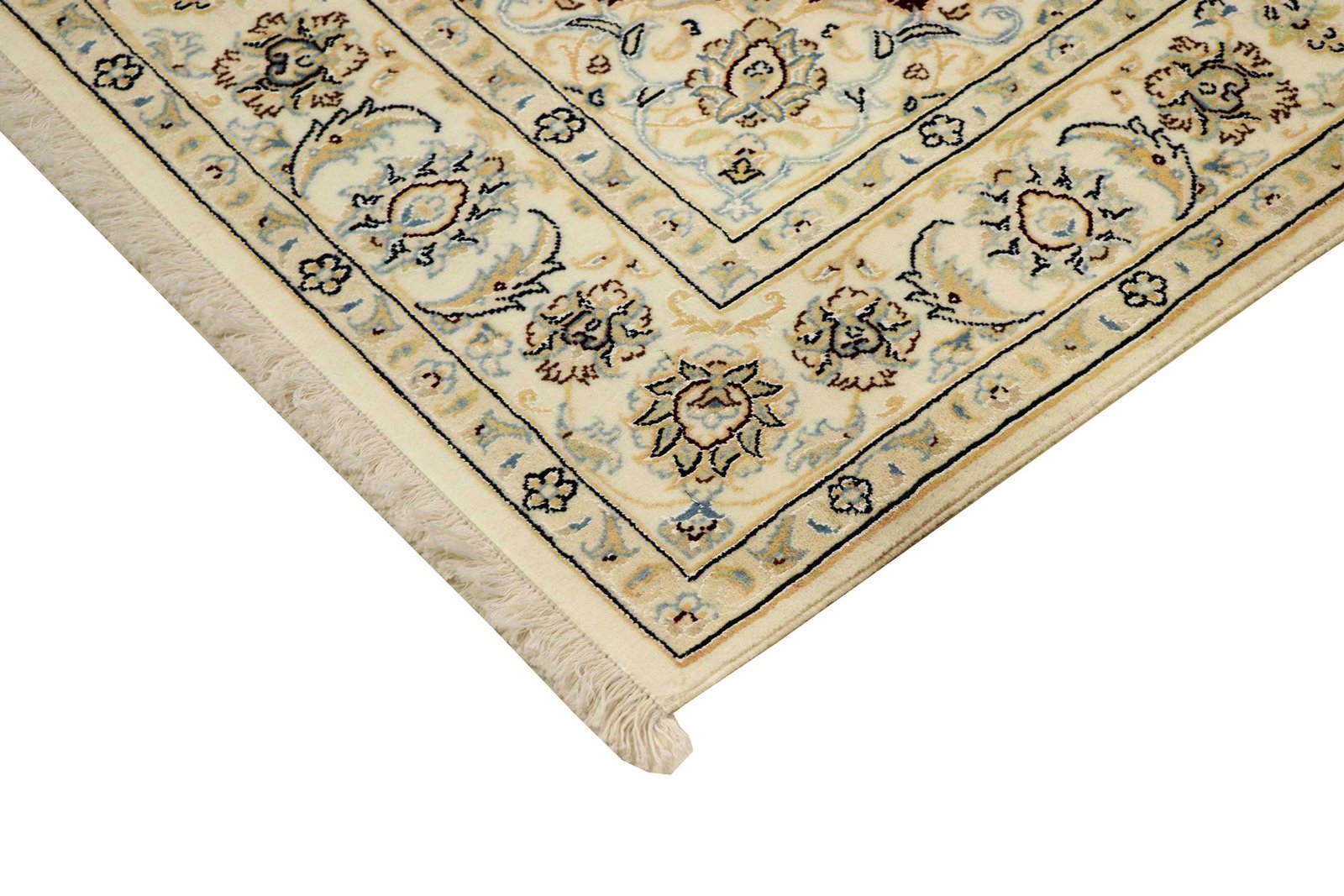 Nain, a charming city in southern Persia, is famous for its exquisite carpets. The carpets from Nain, often in elegant shades of white and light blue with silk accents, are masterpieces of carpet art. This city has produced many renowned master weavers who are known for their fine and soothing oriental carpets. Classic oriental carpets from Nain are hand-knotted unique pieces whose patterns are passed down from generation to generation. The manufacturing method, material and motifs are determined by the origin, which is especially true for high-quality Persian carpets. These carpets are characterised by first-class materials, precise knot density, harmonious colours and traditional designs. Whether made of fine silk or soft cork wool, a Nain carpet adds a special touch to any room.