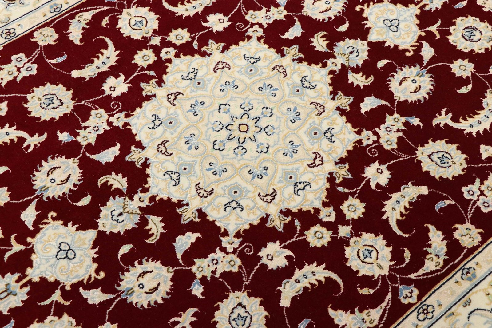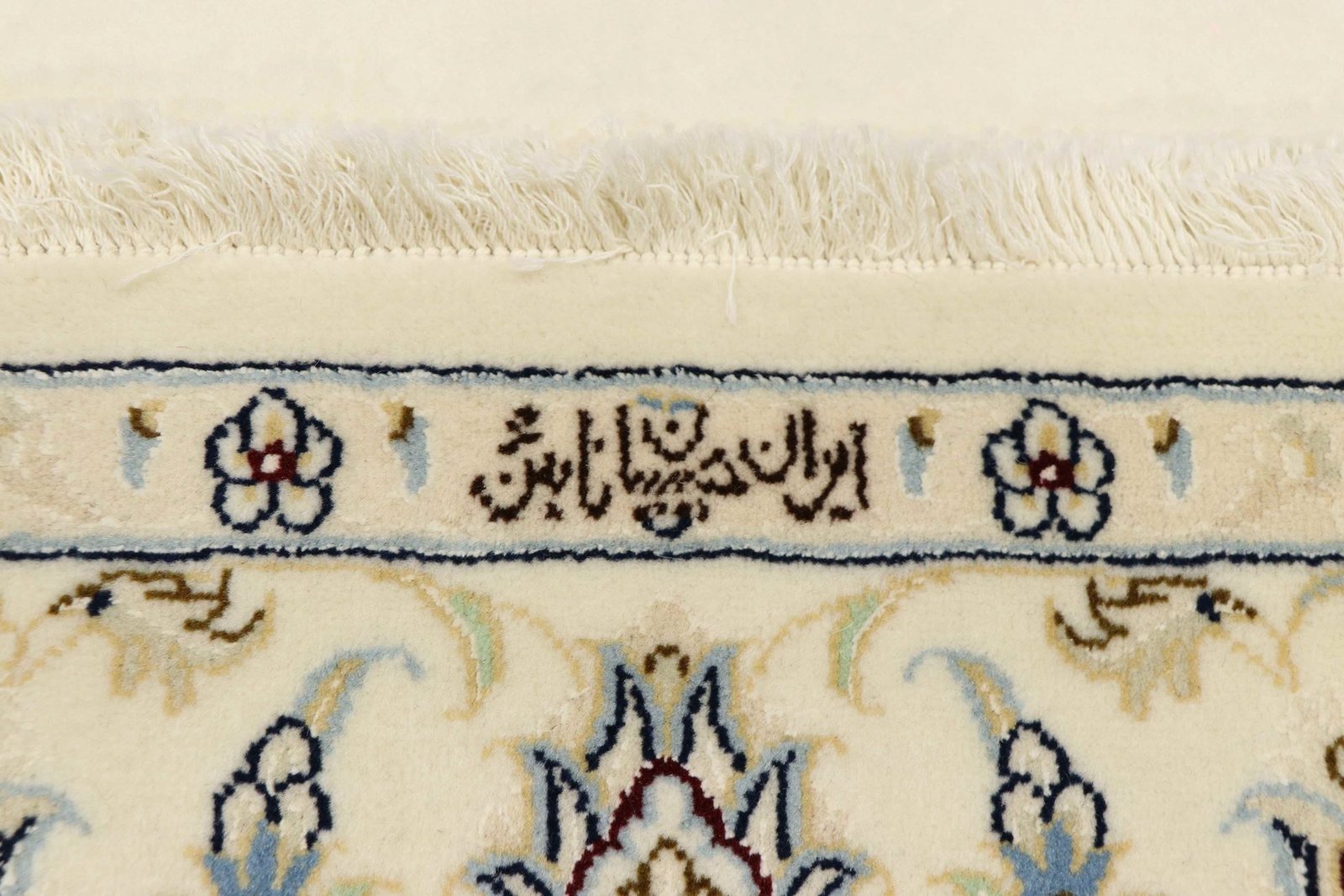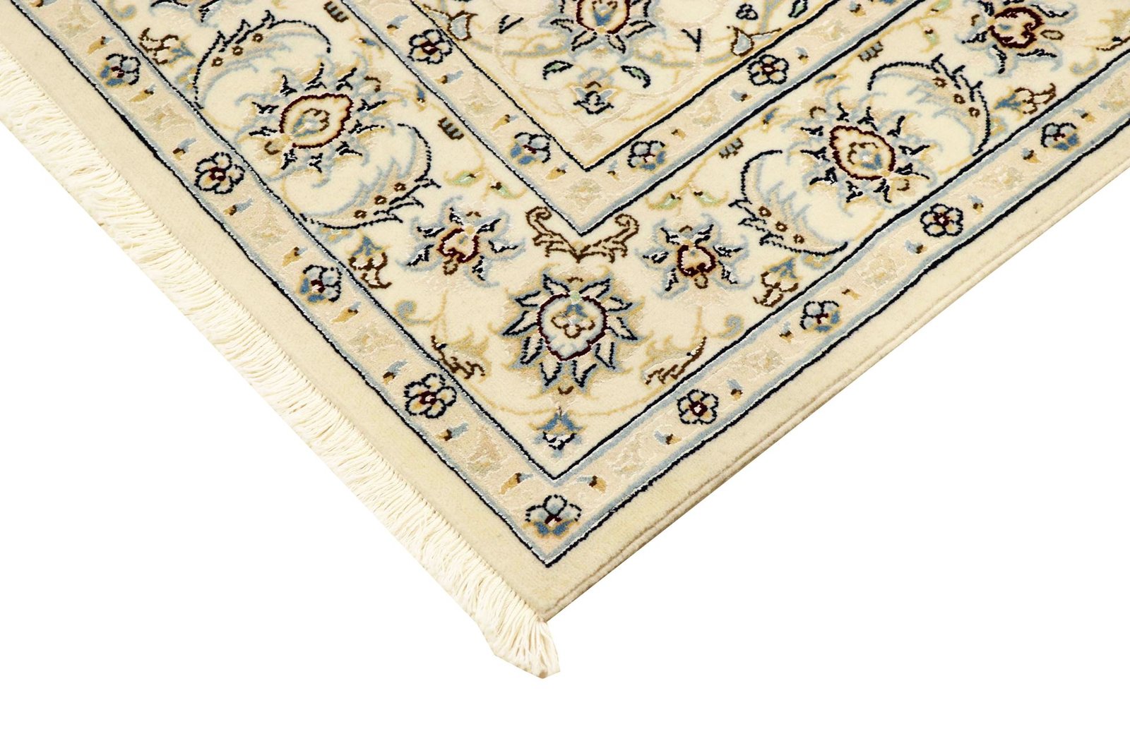 Nain, a charming city in southern Persia, is known for its exquisite carpets, which captivate with their high quality and fineness. Carpets from Nain are particularly known for their dominant white and light blue tones and the use of silk. The city has produced many renowned master weavers and is famous for its fine and soothing oriental carpets. Classic oriental carpets are hand-knotted, unique pieces whose patterns are passed down from generation to generation. The origin influences the manufacturing method, material and motifs of the carpets, especially in the case of high-quality Persian carpets. These works of art are characterised by first-class materials, knot density, harmonious colours and traditional designs. Whether made of fine silk or soft wool, oriental carpets add a special touch to any room.
