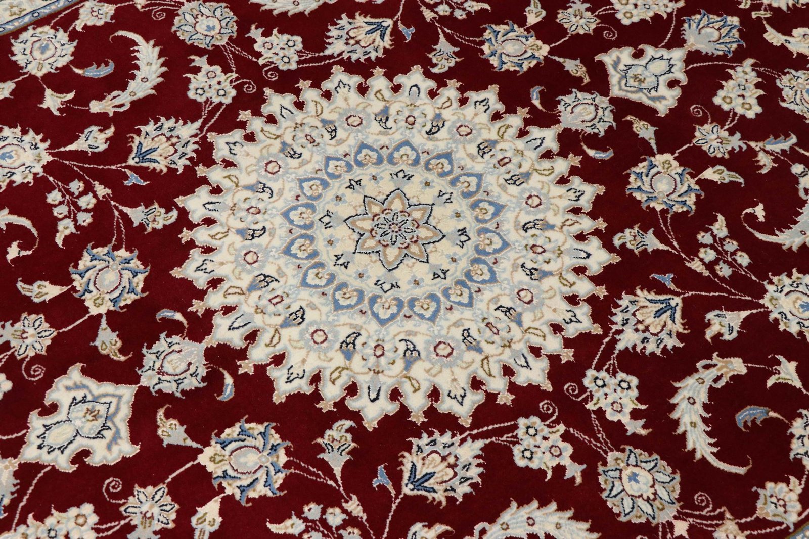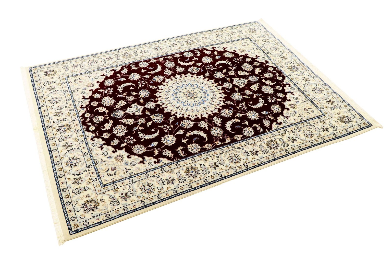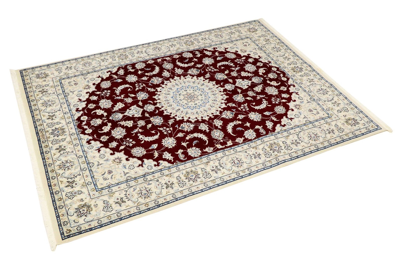 Nain, a charming city in southern Persia, is famous for its exquisite carpets. Nain carpets are particularly well known for their fine workmanship and elegant designs. These carpets are often white and light blue in colour and contain silk, which gives them a luxurious feel. Nain has produced numerous renowned master weavers who are known for their fine and soothing oriental carpets. Classic oriental carpets, especially Persian ones, are hand-knotted unique pieces that are passed down through generations. Their special features are reflected in the knot density, the high-quality material and the unique colour harmonies. Whether made of precious silk or soft cork wool, every oriental carpet lends a special elegance to any room.
