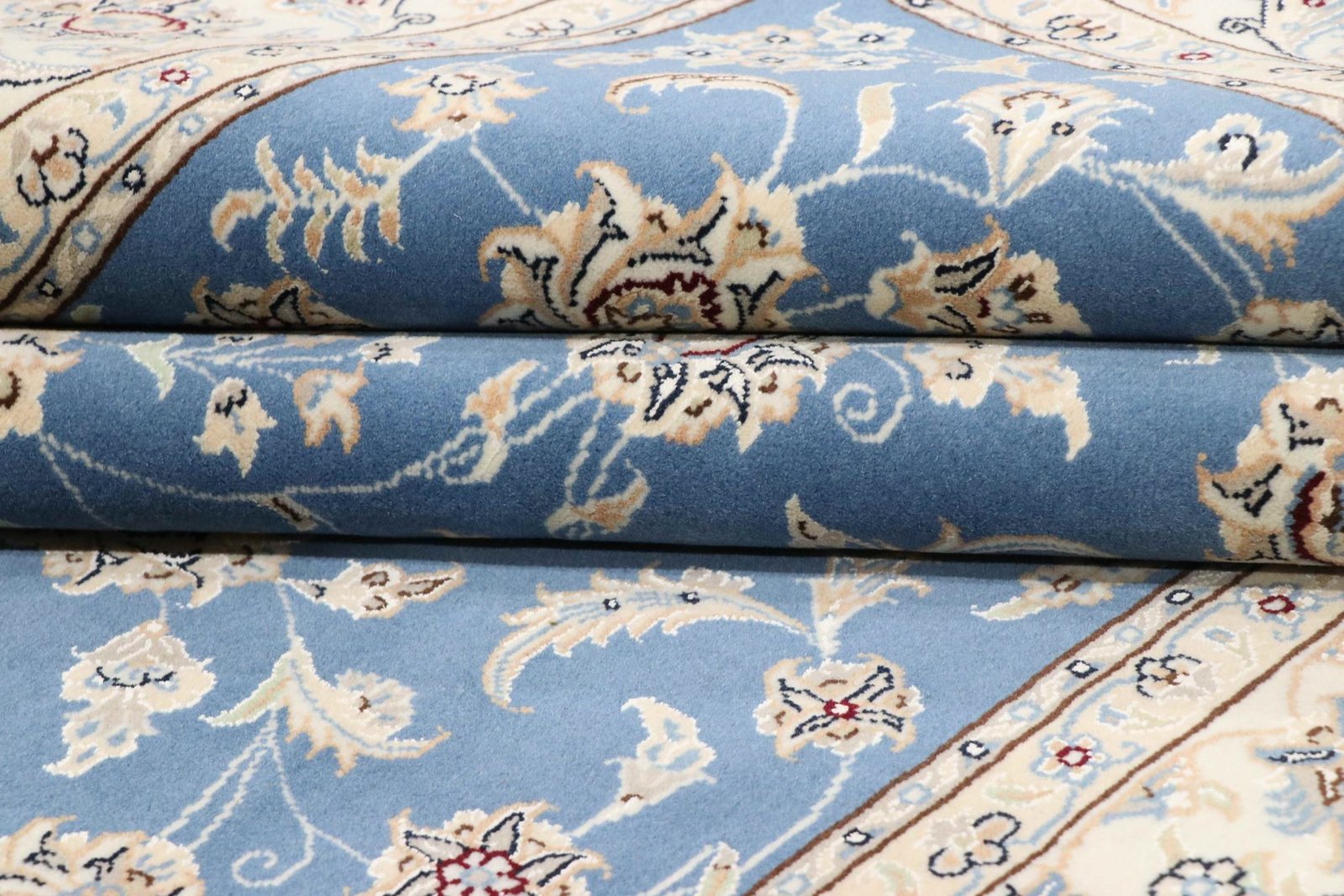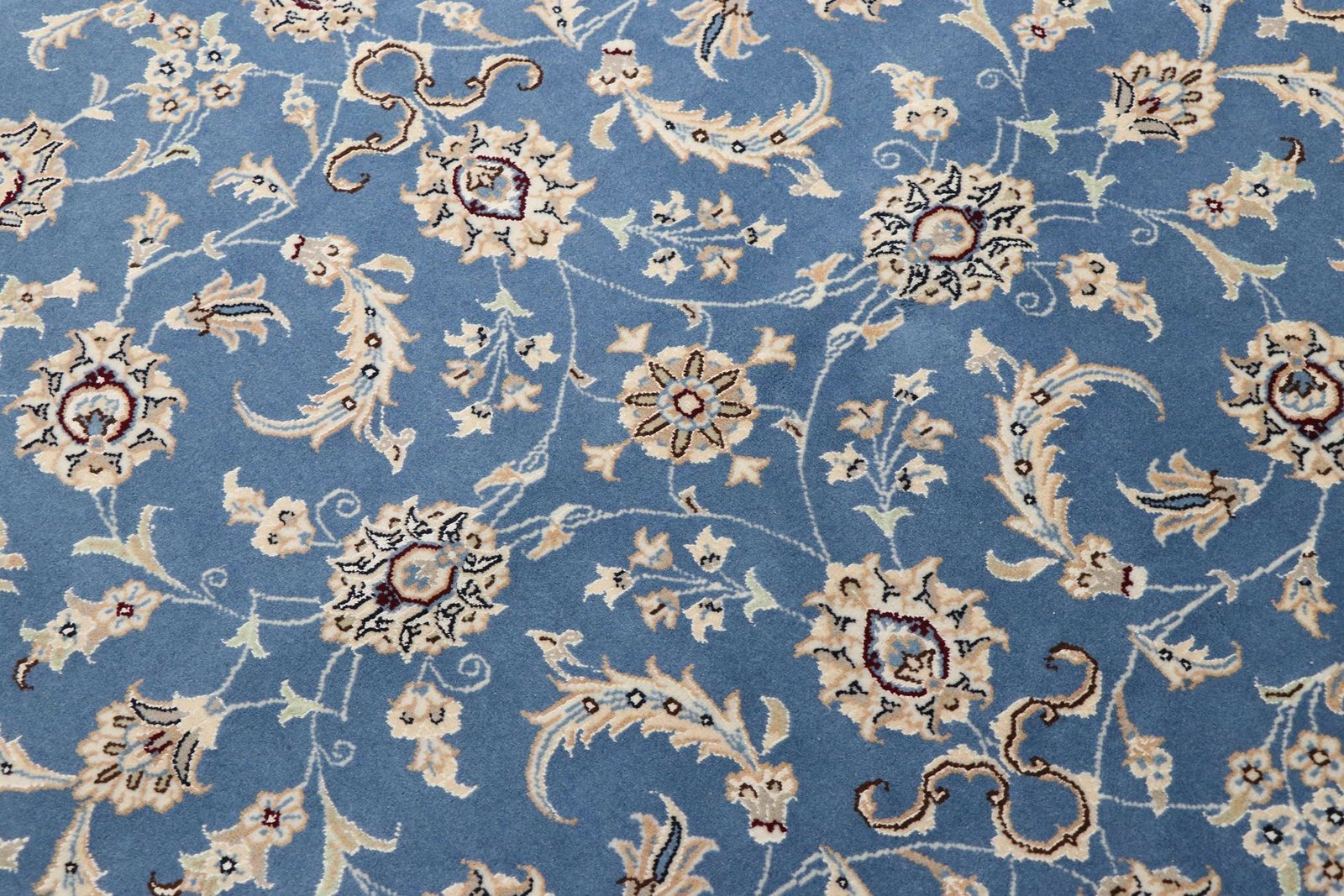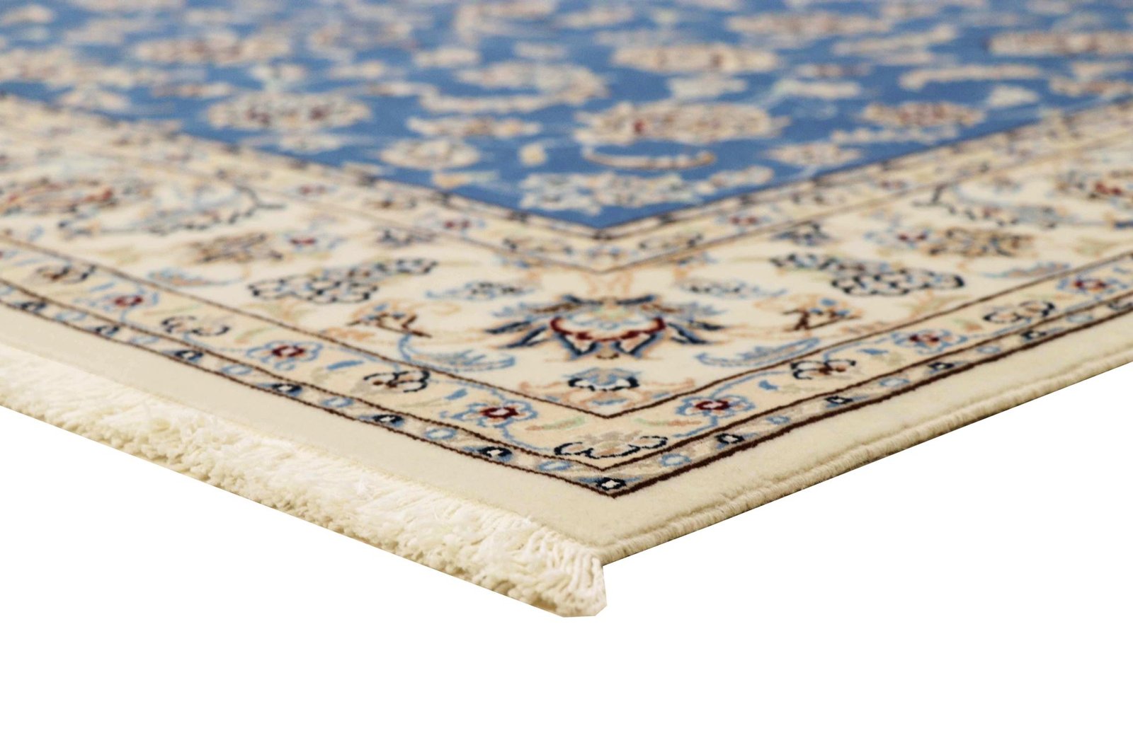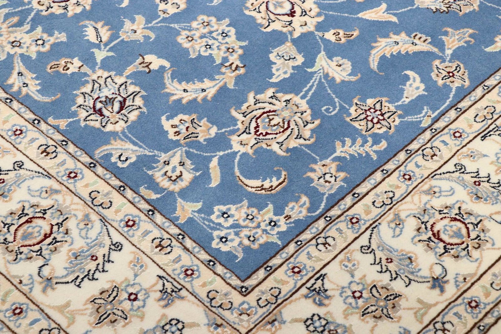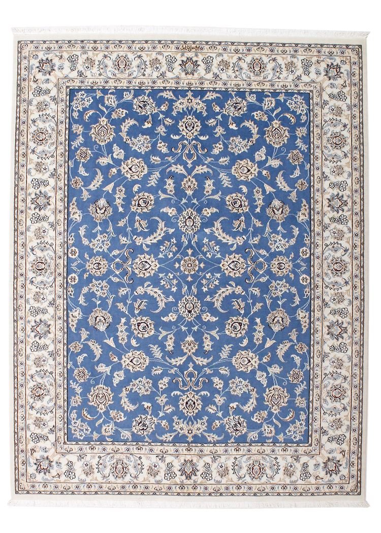 Nain, a picturesque town in southern Persia, is famous for its exquisite carpets, which captivate with their simple elegance. Nain carpets are particularly well known for their dominant colours of white and light blue and their fine silk. The town has a long tradition of carpet weaving and is famous for the delicacy and beauty of its oriental carpets. Classic oriental carpets are unique, hand-knotted pieces whose patterns are passed down from generation to generation. The origin of these carpets influences their manufacturing method, materials and motifs. Particularly high-quality Persian carpets, such as those from Nain, are characterised by first-class materials, knot density and unique colour harmonies.