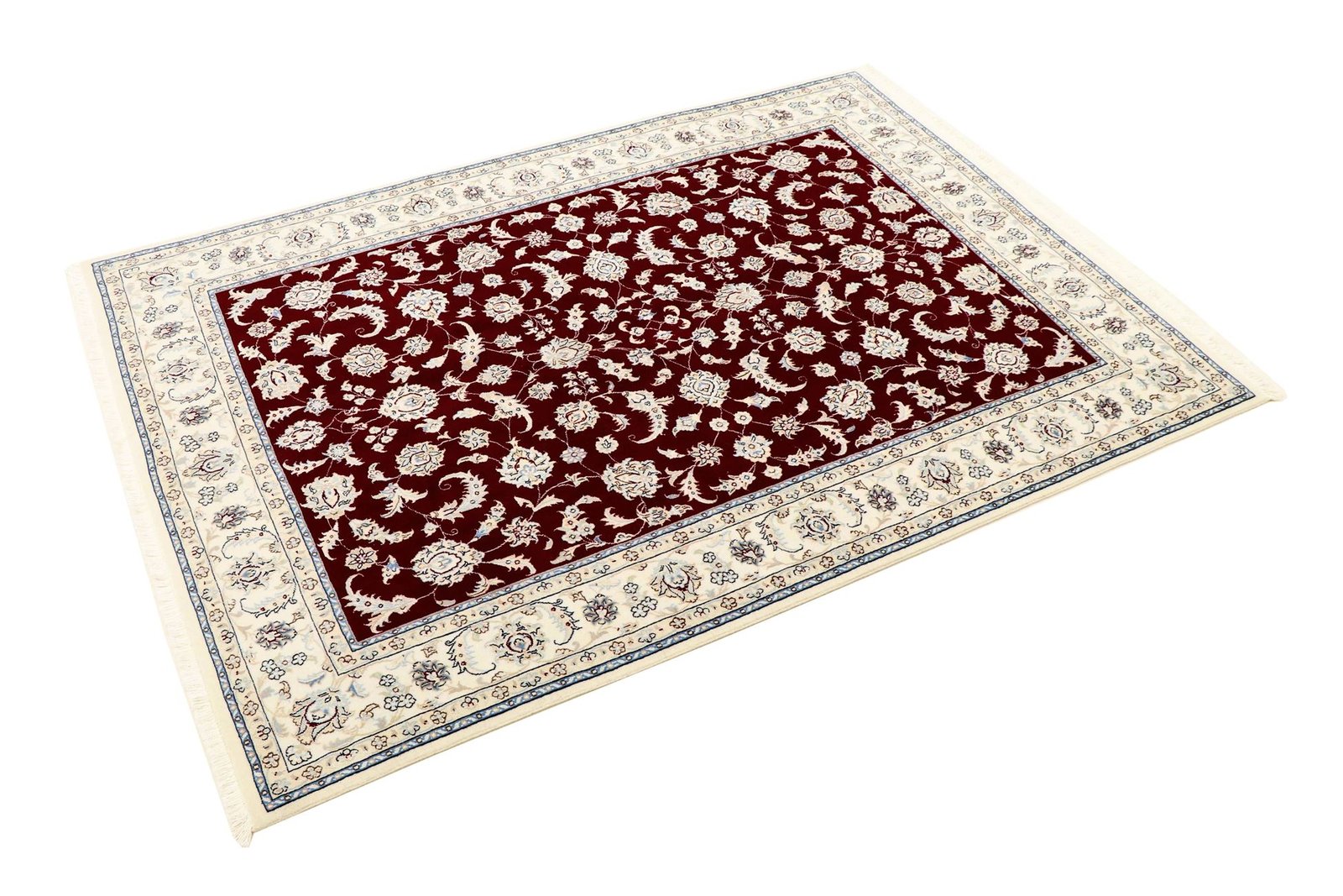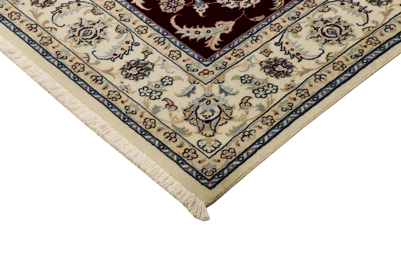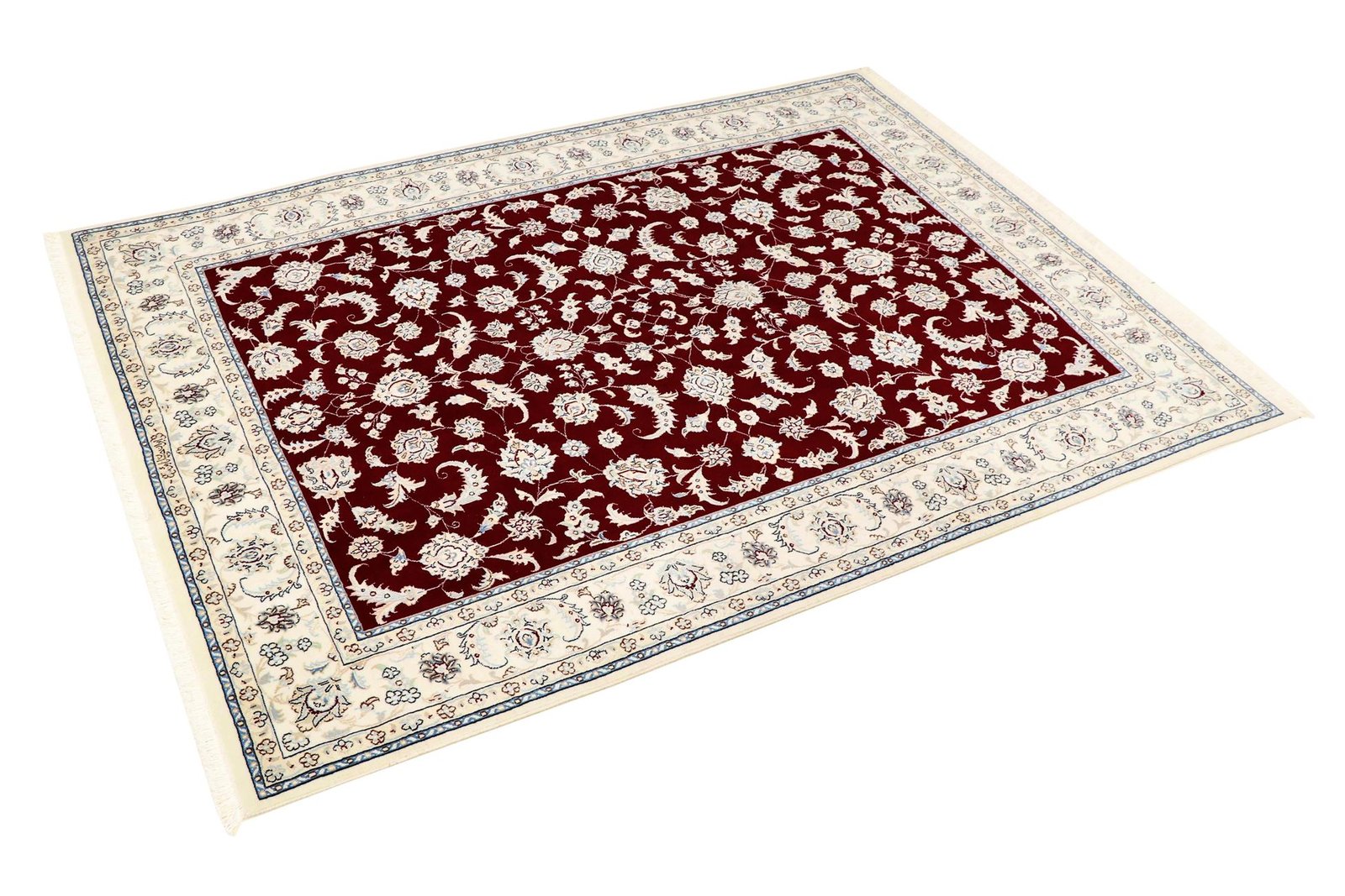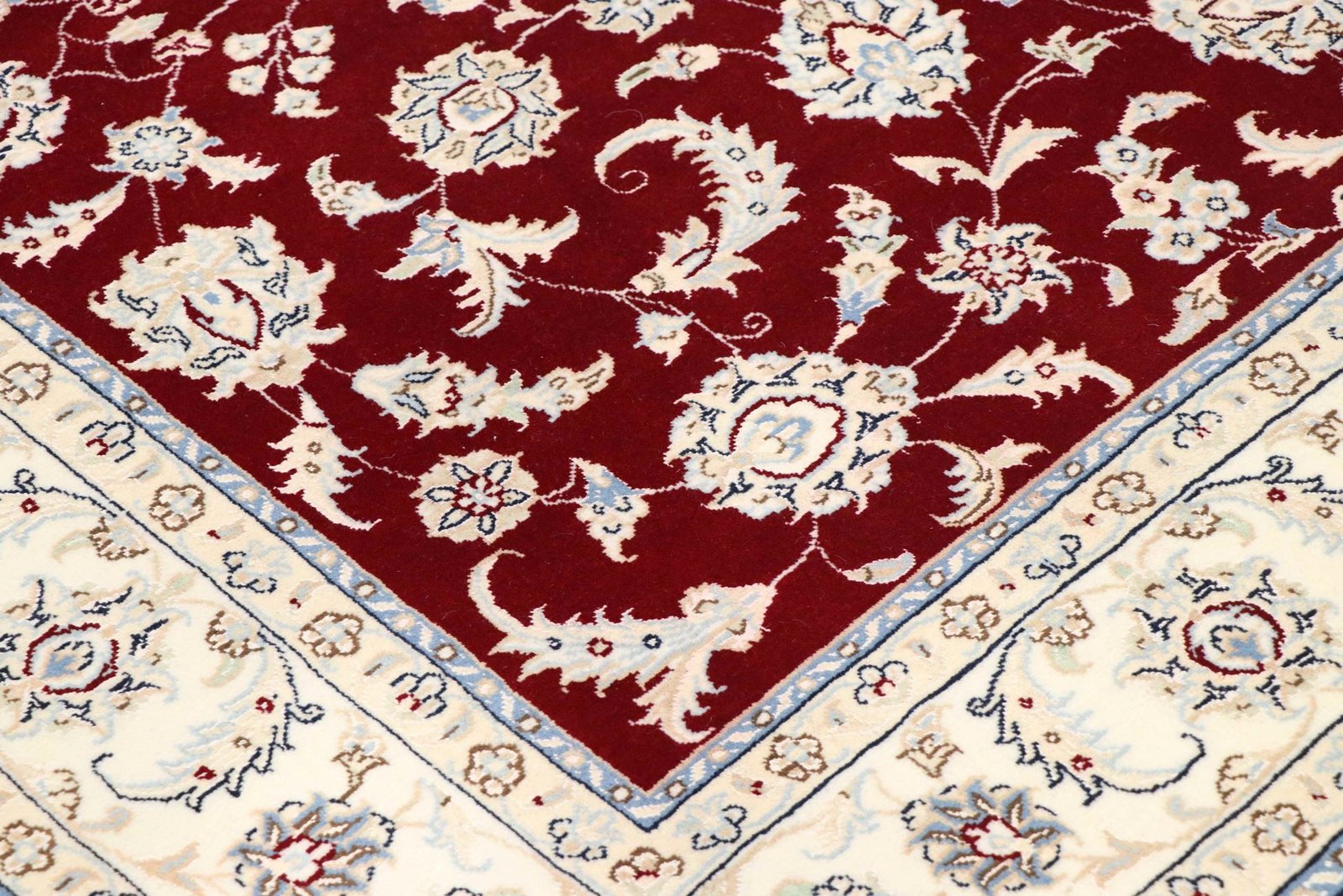 Nain is a picturesque city in southern Persia, known for its fine carpets of outstanding quality. Carpets from Nain captivate with elegant colours such as white and light blue and often contain silk threads, which give them a special delicacy. The town is famous for its skilled master weavers, who produce exceptional oriental carpets with great craftsmanship. Classic oriental carpets are unique, hand-knotted pieces whose characteristic patterns are passed down from generation to generation. The region of origin has a significant influence on the manufacture, material and motifs of the carpets. High-quality Persian carpets, named after their city of origin, are characterised by first-class materials, knot density and unique designs. Whether made of fine silk or soft cork wool, an oriental carpet adds a special touch to any room.