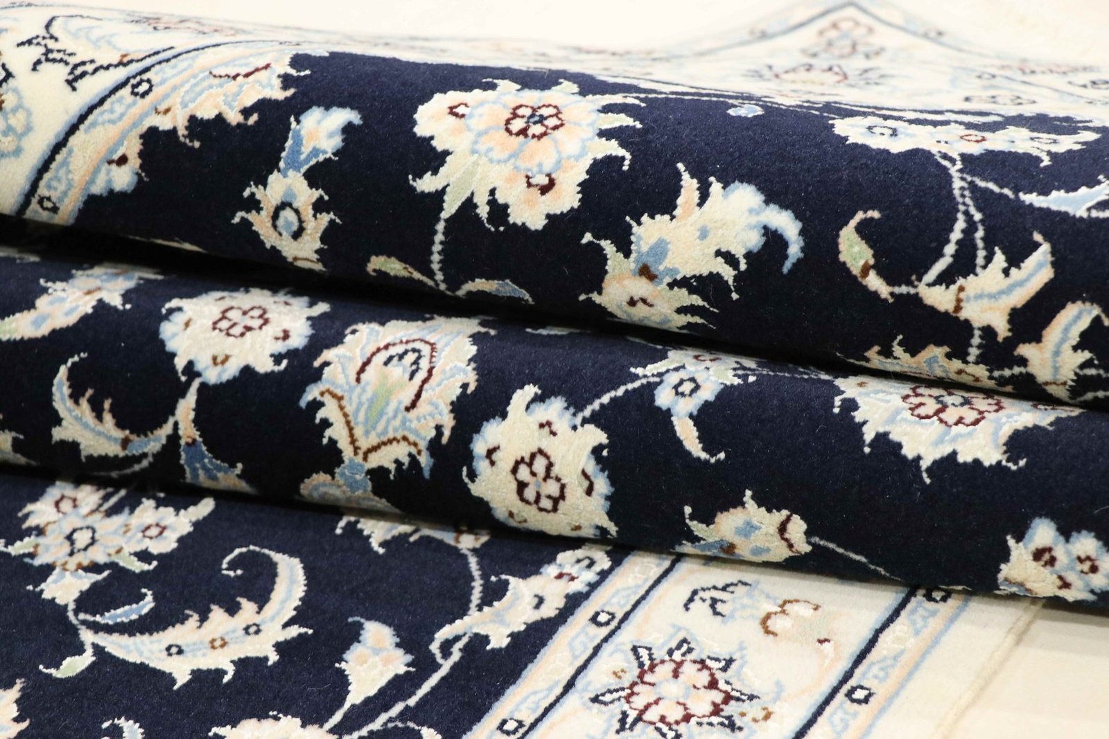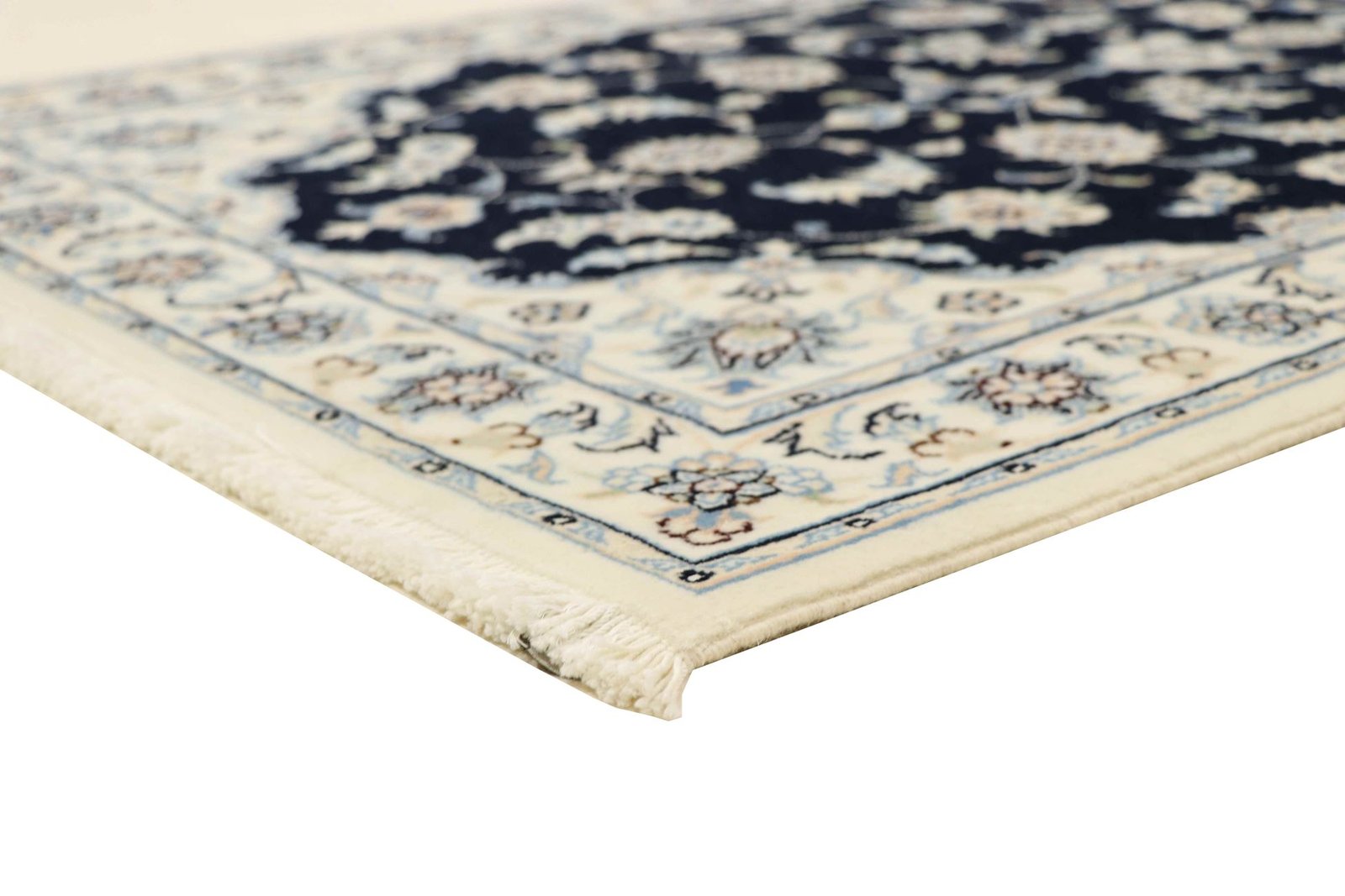 Nain, a picturesque city in southern Persia, is famous for its exquisite carpets, which captivate with their fine quality and elegance. Carpets from Nain are characterised by light colours such as white and light blue and are often finished with silk. This city has a long tradition of carpet weaving and is known for its masters who create incomparable oriental carpets. Classic oriental carpets are hand-knotted unique pieces whose patterns are passed down from generation to generation. The origin influences the manufacturing method, the material and the motifs of the carpets. High-quality Persian carpets, named after their city, captivate with their first-class materials, knot density, colour harmonies and traditional design. They lend every room a special touch, whether through fine silk or soft cork wool.