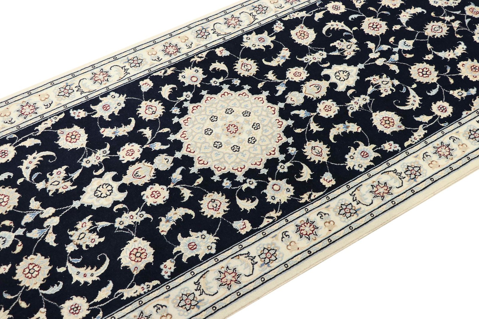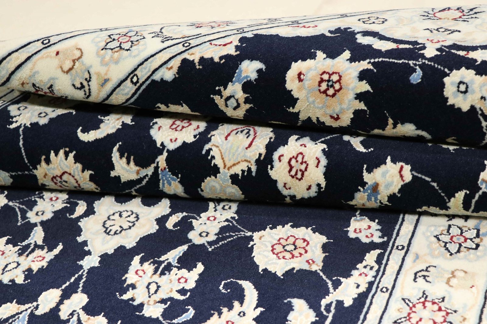 Nain, a charming city in southern Persia, is famous for its exquisite carpets, which captivate with their fine quality. Carpets from Nain are characterised by their elegant combination of white and light blue and the luxurious use of silk. This city has a long tradition of carpet weaving and is known for its masters who preserve the fineness and beauty of classic Oriental carpets. Hand-knotted Oriental carpets are unique works of art whose patterns are shaped by traditional techniques passed down through generations. The manufacturing method, material and motifs vary depending on the region of origin, which is particularly noticeable in high-quality Persian carpets. These carpets are characterised by their first-class materials, knot density, harmonious colours and traditional design, and lend every room a special touch.