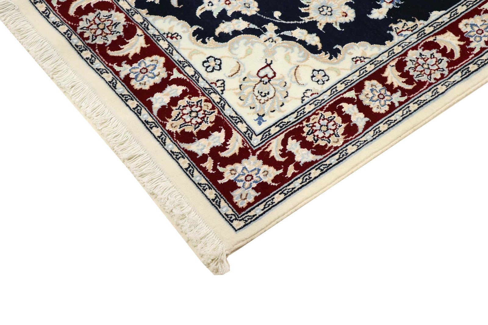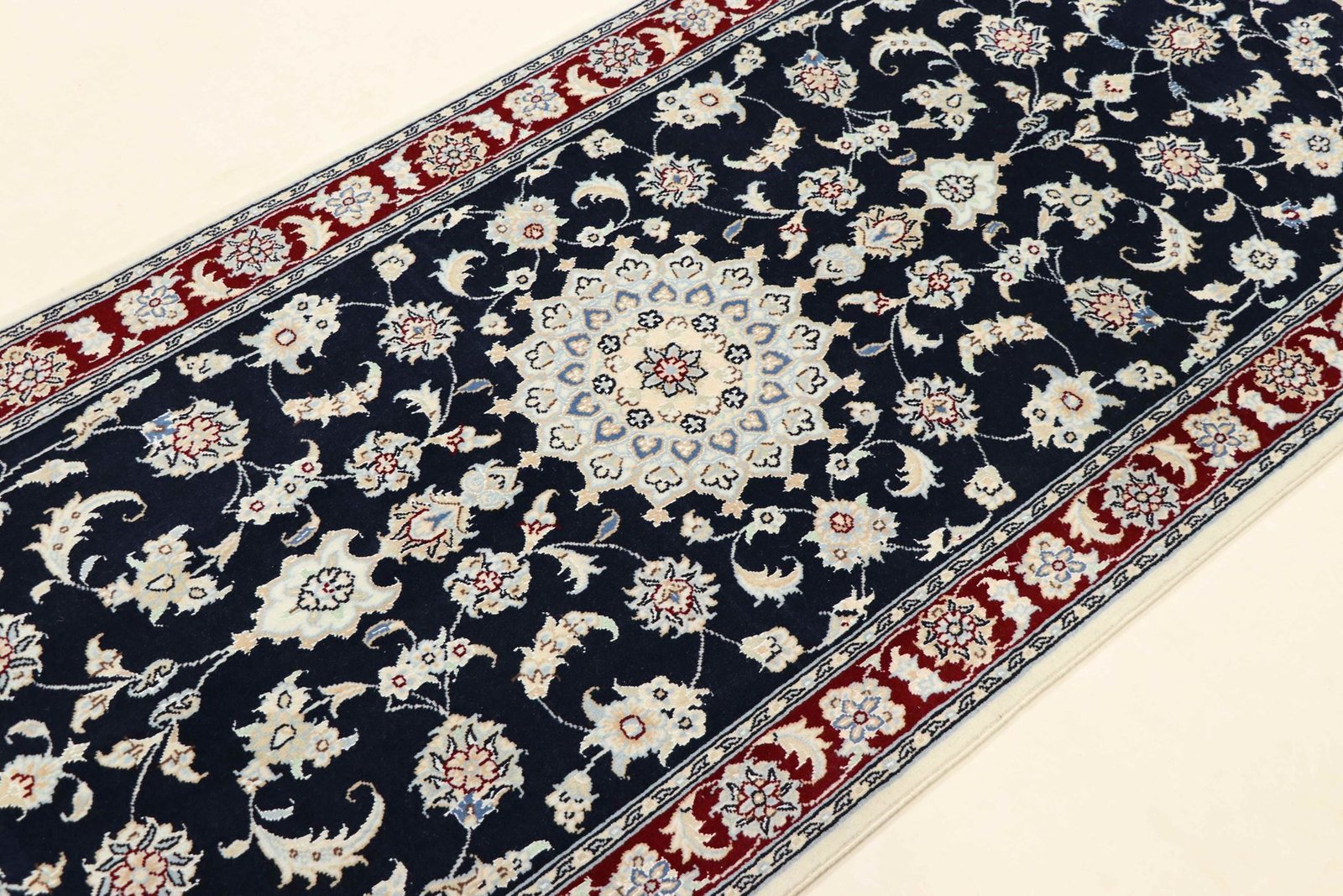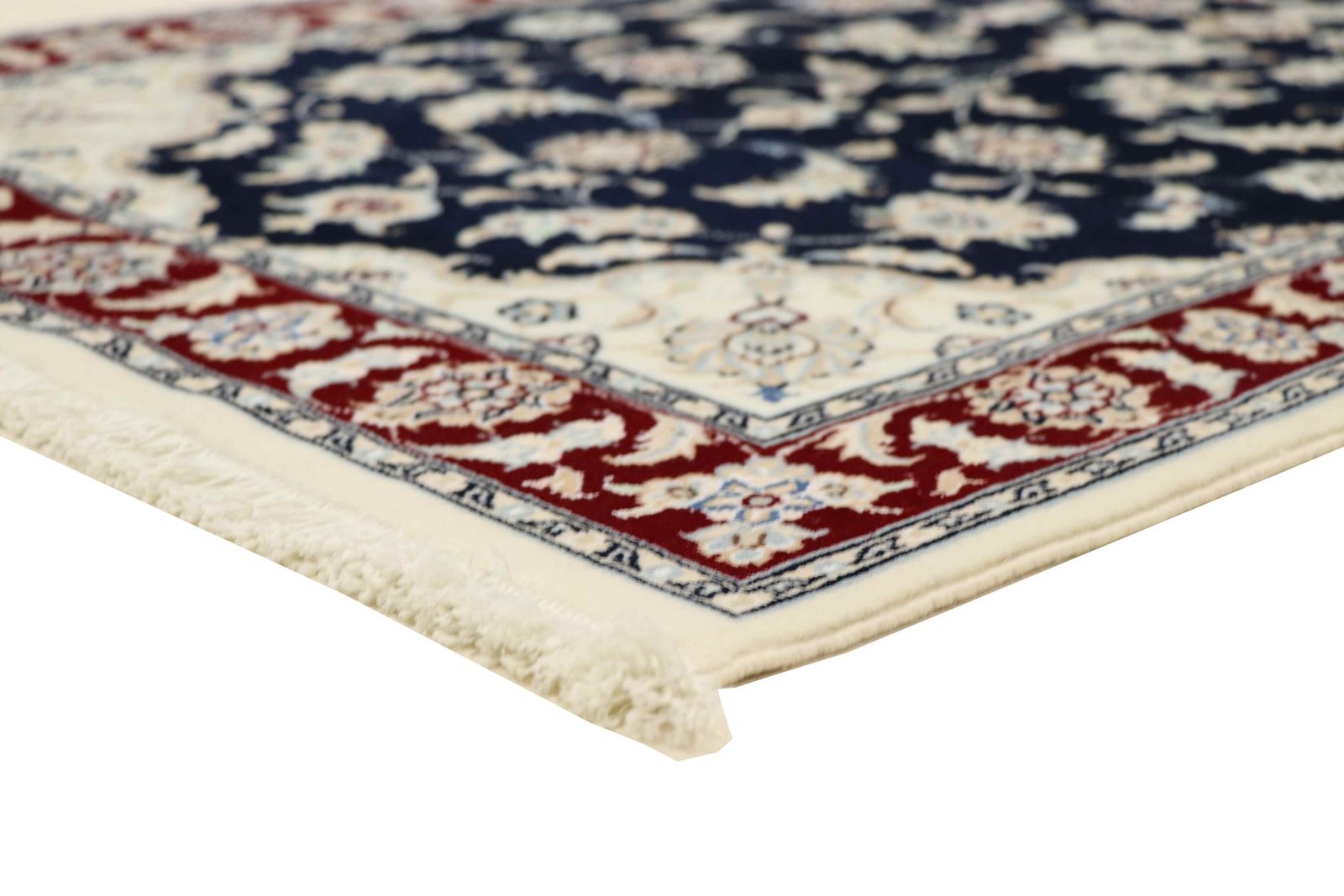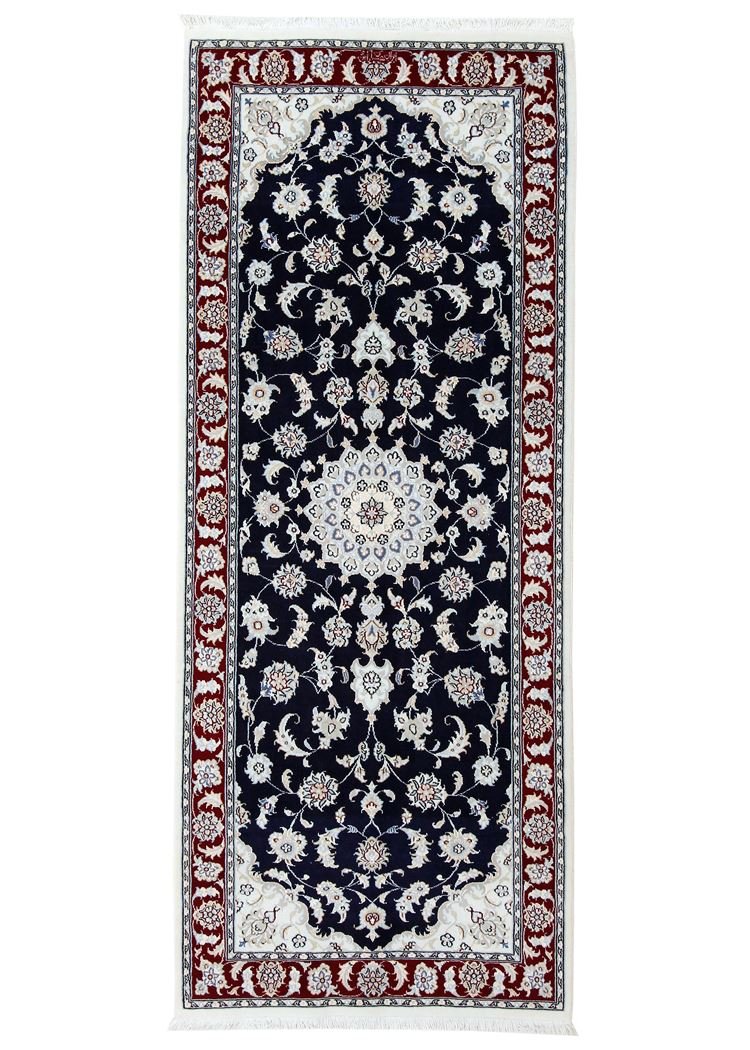 Nain is a picturesque town in southern Persia, famous for its exquisite carpets. These carpets are characterised by a harmonious combination of white and light blue and often contain fine silk fibres. Nain was once home to numerous masters of carpet weaving, who were known for their finesse and the creation of soothing oriental carpets. Classic oriental carpets are hand-knotted, unique pieces whose patterns are passed down from generation to generation. Their manufacturing methods, materials and motifs are strongly influenced by their origin. Particularly high-quality Persian carpets, named after their city, captivate with their first-class materials, high knot density, unique colour harmonies and traditional design. Whether made of fine silk or soft wool, an Oriental carpet lends every room a special, timeless elegance.