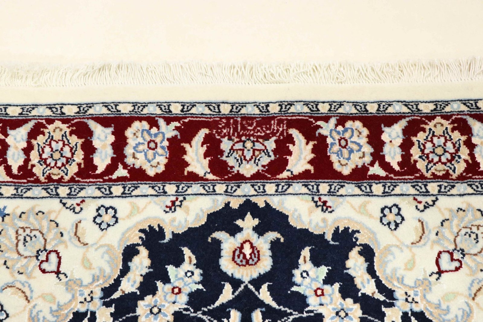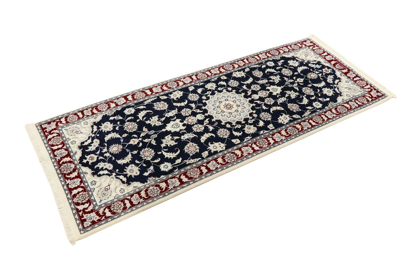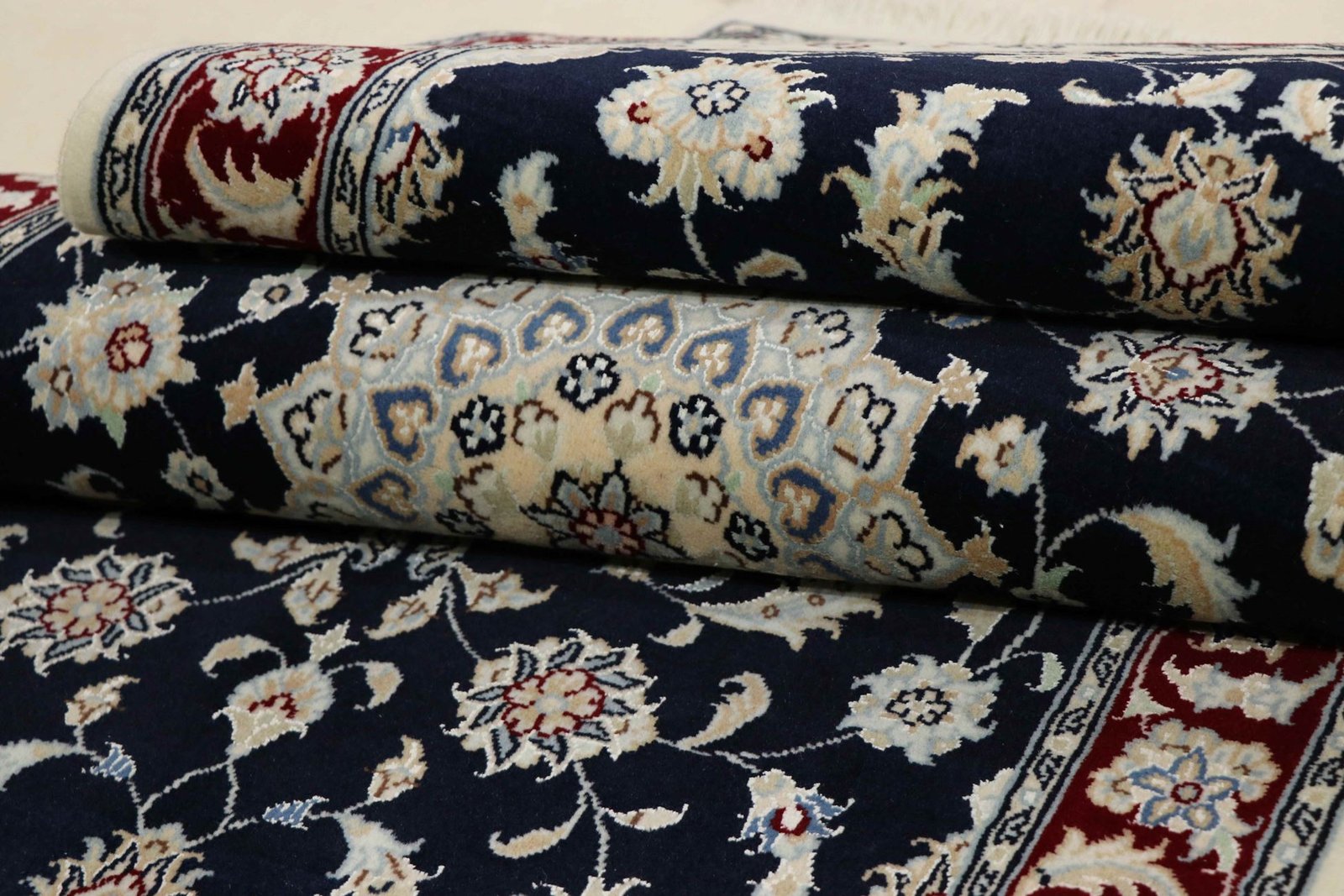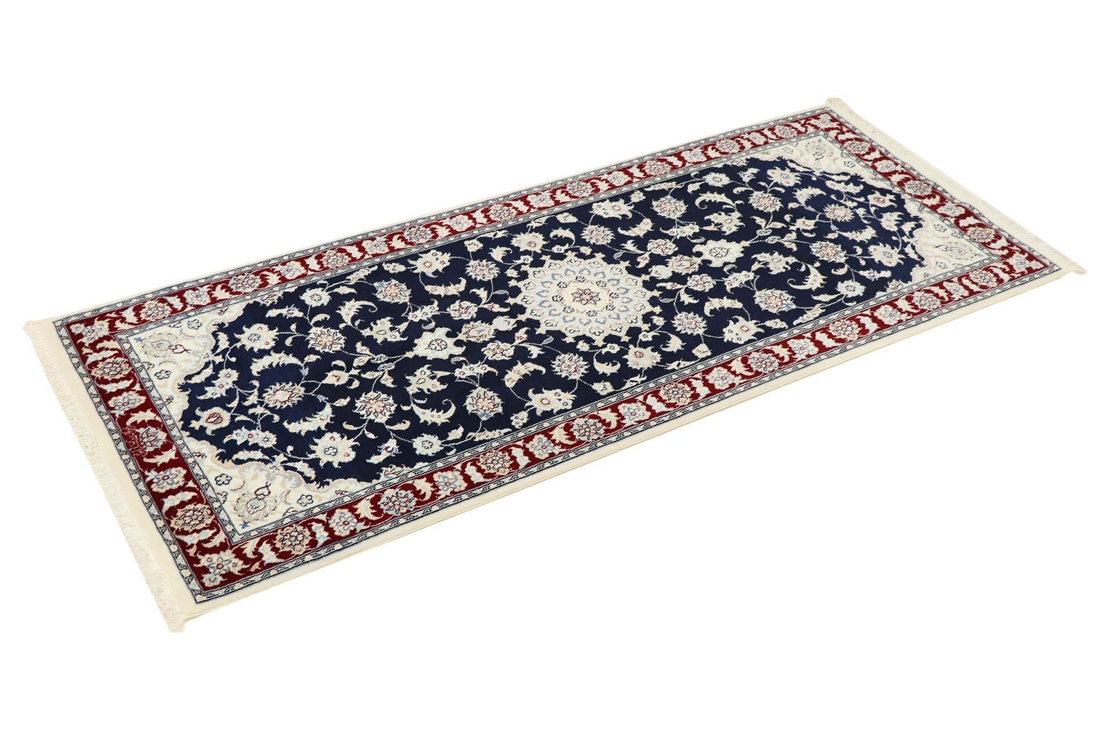 Nain is a picturesque town in southern Persia, famous for its exquisite carpets. These carpets are characterised by a harmonious combination of white and light blue and often contain fine silk fibres. Nain was once home to numerous masters of carpet weaving, who were known for their finesse and the creation of soothing oriental carpets. Classic oriental carpets are hand-knotted, unique pieces whose patterns are passed down from generation to generation. Their manufacturing methods, materials and motifs are strongly influenced by their origin. Particularly high-quality Persian carpets, named after their city, captivate with their first-class materials, high knot density, unique colour harmonies and traditional design. Whether made of fine silk or soft wool, an Oriental carpet lends every room a special, timeless elegance.