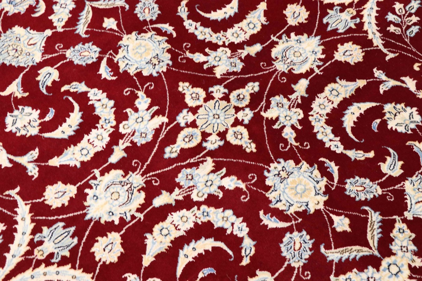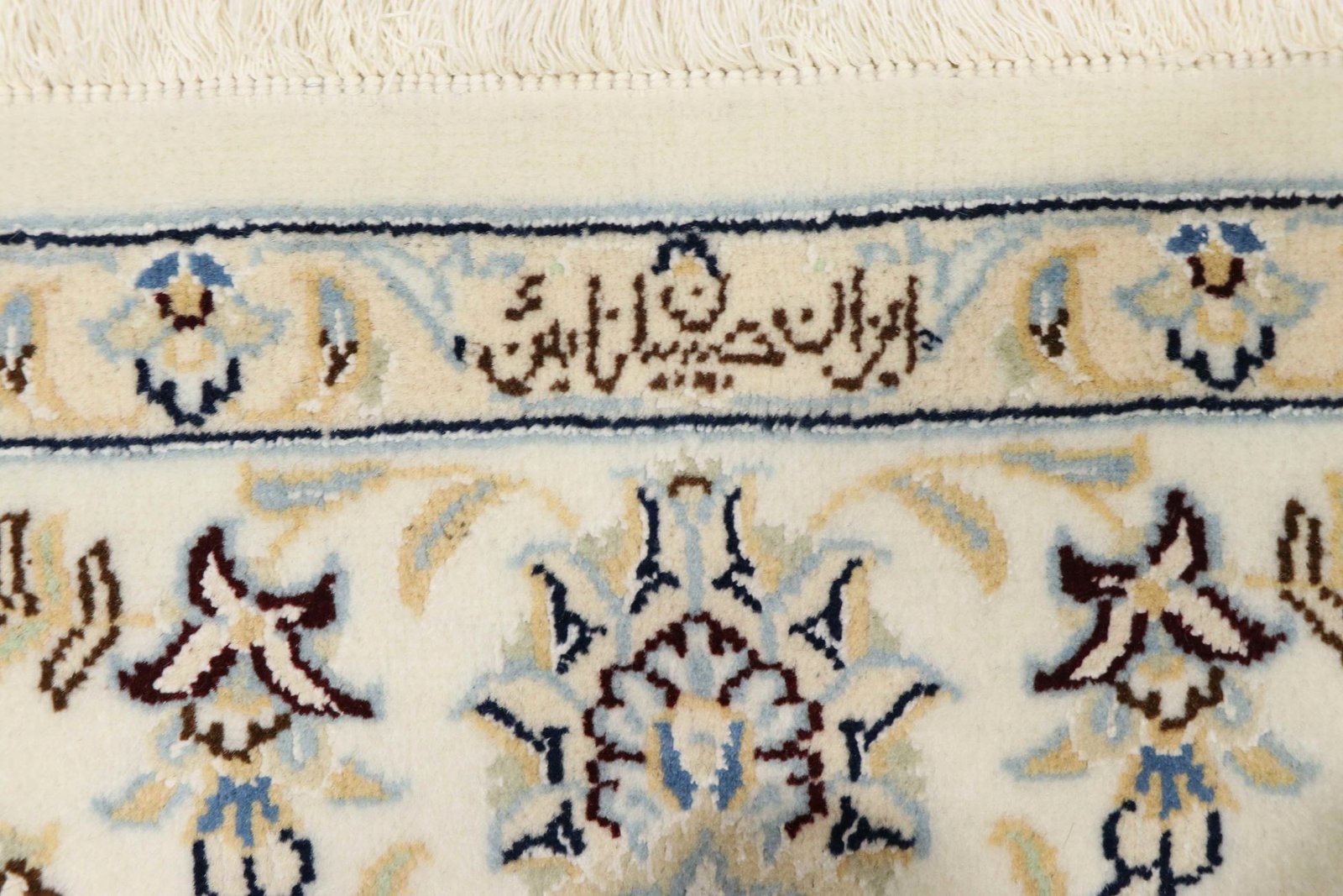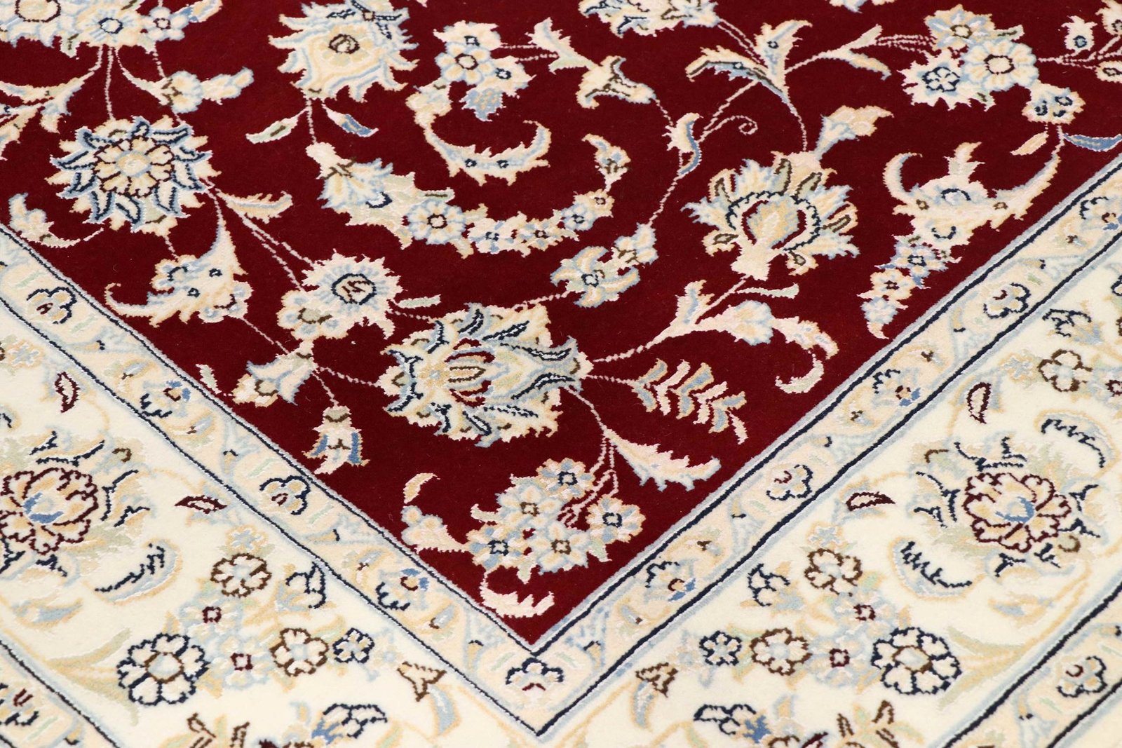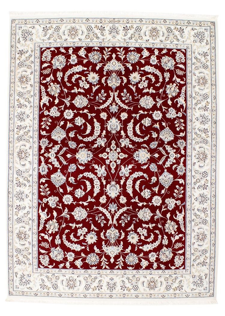 Nain, a picturesque city in southern Persia, is famous for its exquisite carpets, which are characterised by their fine quality and elegant design. Carpets from Nain are often white and light blue and contain silk, which gives them a special sheen. The town has a long tradition of carpet weaving, with many renowned masters known for their precise craftsmanship. Classic oriental carpets from Nain are hand-knotted unique pieces that have retained their unique patterns and designs through generations of tradition. They are characterised by high-quality materials, knot density and harmonious colour combinations, whether precious silk or soft cork wool. These carpets add a special touch to any room and are a symbol of timeless elegance and craftsmanship.